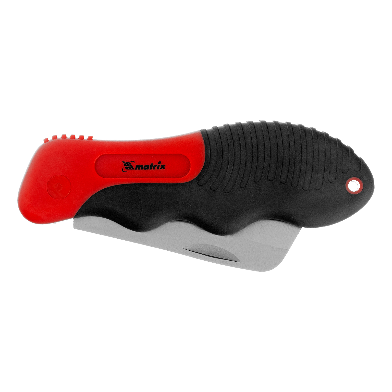 - Комфортная и безопасная работа — двухкомпонентная пластиковая рукоятка с резиновыми вставками и подпальцевыми выемками не выскальзывает из ладони.