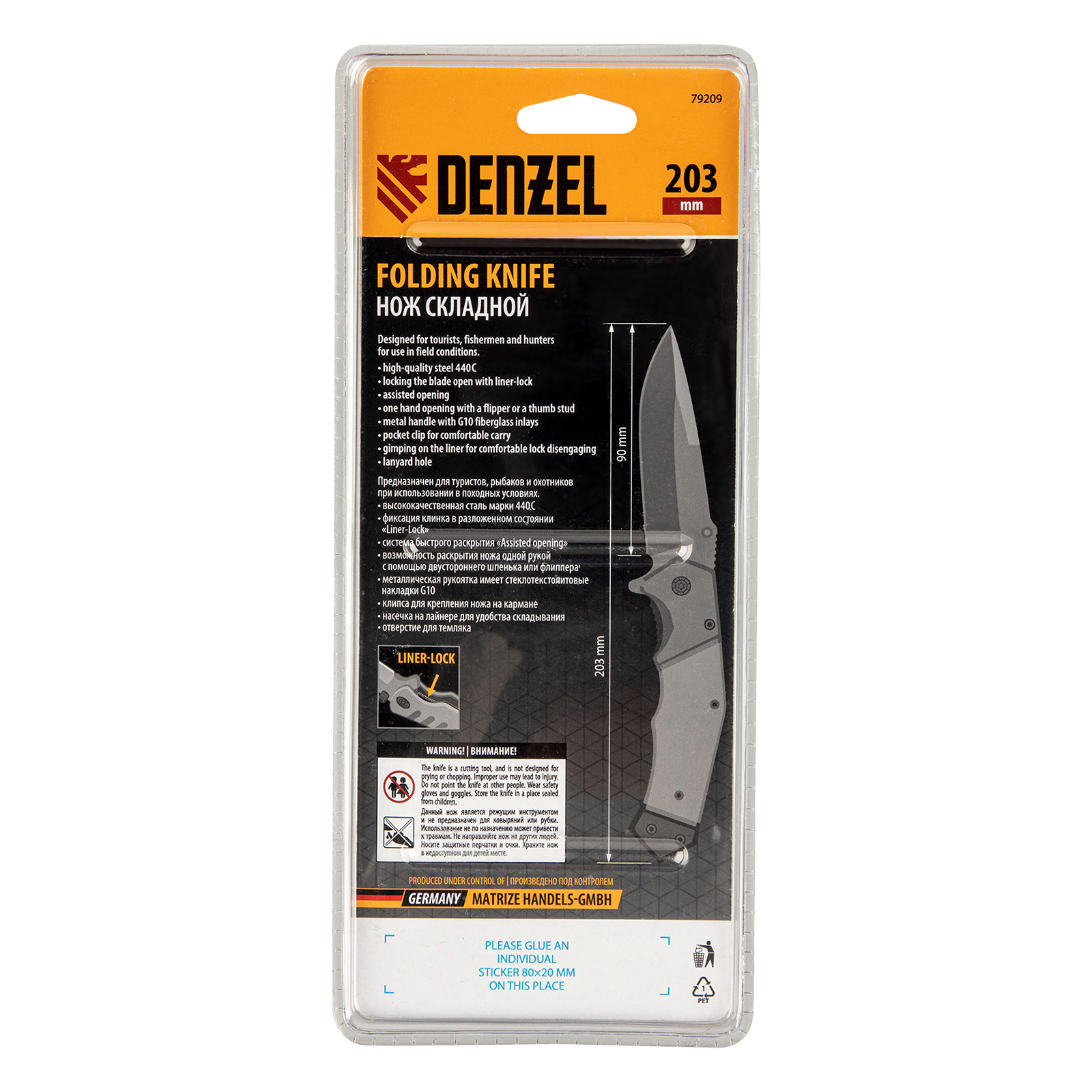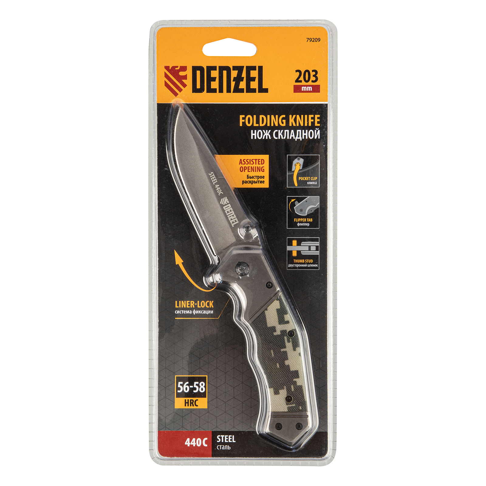 Многоцелевой складной нож Denzel 79207 длиной 205 мм, с системой Liner-Lock, накладкой G10 на эргономичной рукоятке, находит широкое применение при активном отдыхе на природе, во время рыбалки и охоты. Флиппер помогает быстро раскрывать нож.