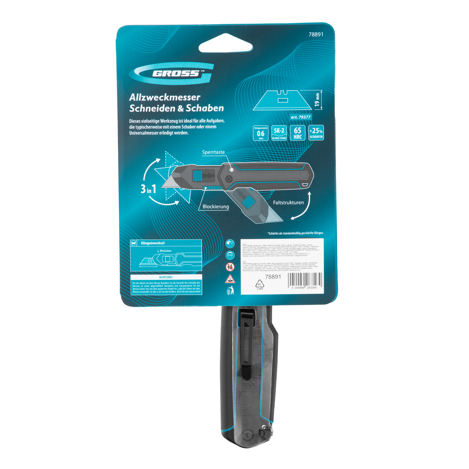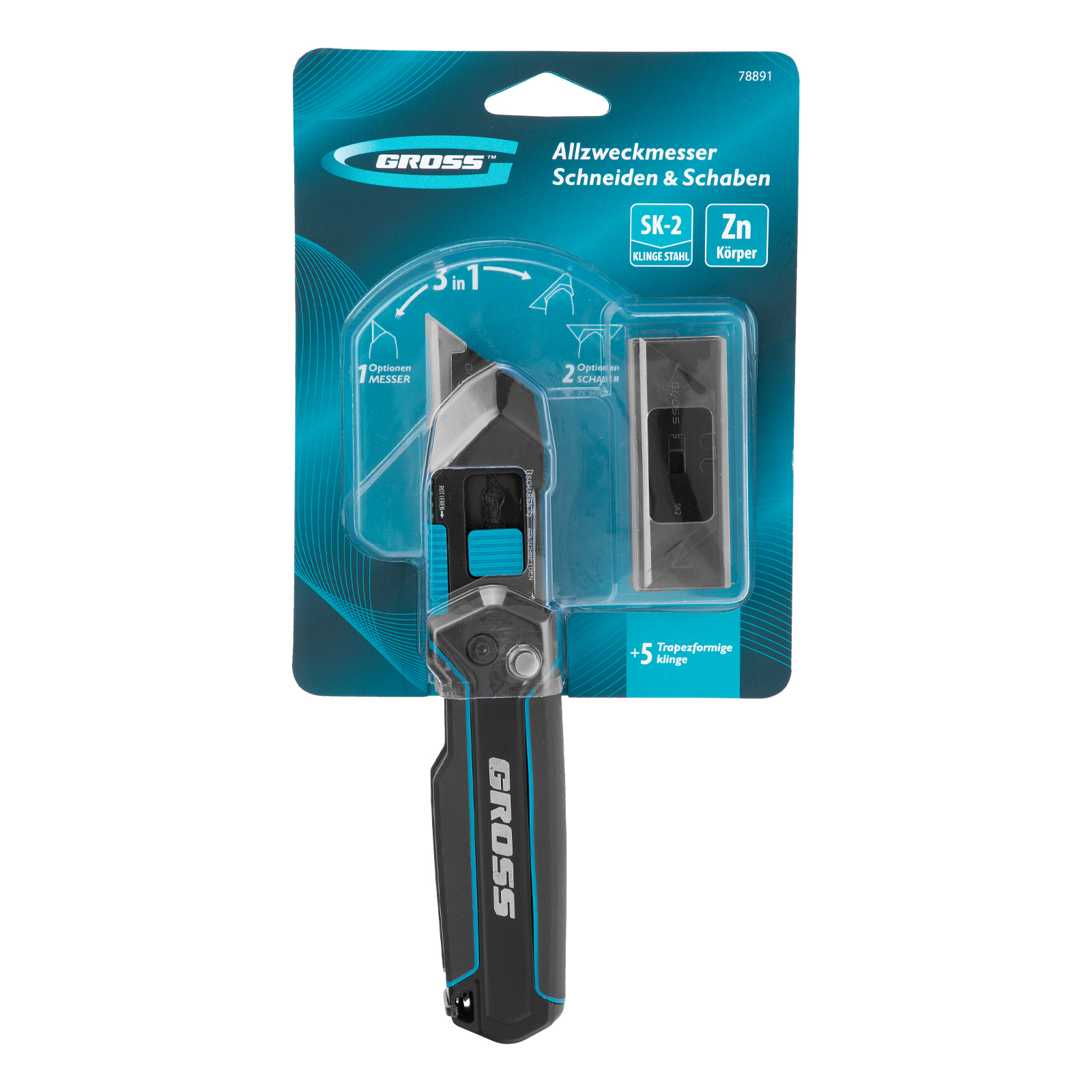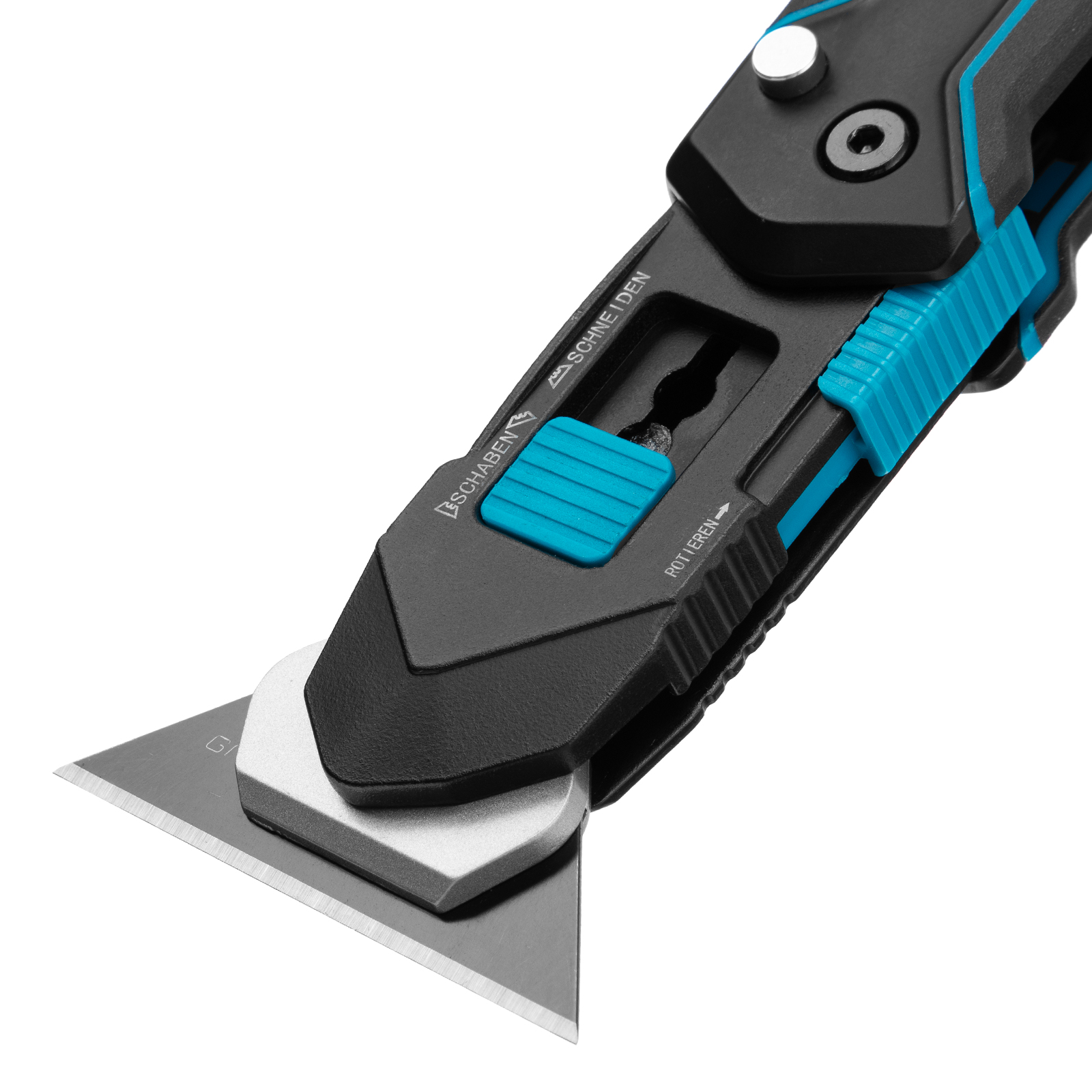 Складной нож-скребок Gross 78891 в алюминиевом корпусе — универсальный инструмент 2 в 1. Используется в качестве скребка для удаления краски, шпаклевки, обоев и клея с гладких поверхностей, а также в качестве ножа для разрезания картона, обоев, линолеума, пластика и других материалов. Благодаря механизму Button-lock нож раскладывается мгновенно — достаточно одного нажатия. Лезвие автоматически принимает 1 из 3 положений при перемещении «бегунка», что упрощает и ускоряет работу. Нож совместим с лезвиями Gross 79377 (приобретаются отдельно). Инструмент незаменим при проведении строительных, ремонтных и отделочных работ.