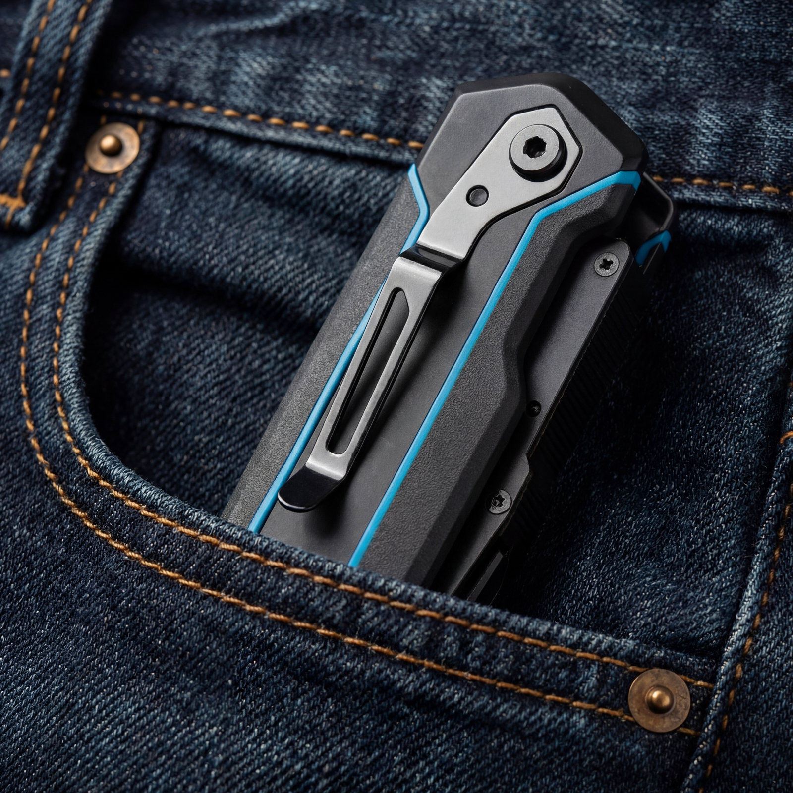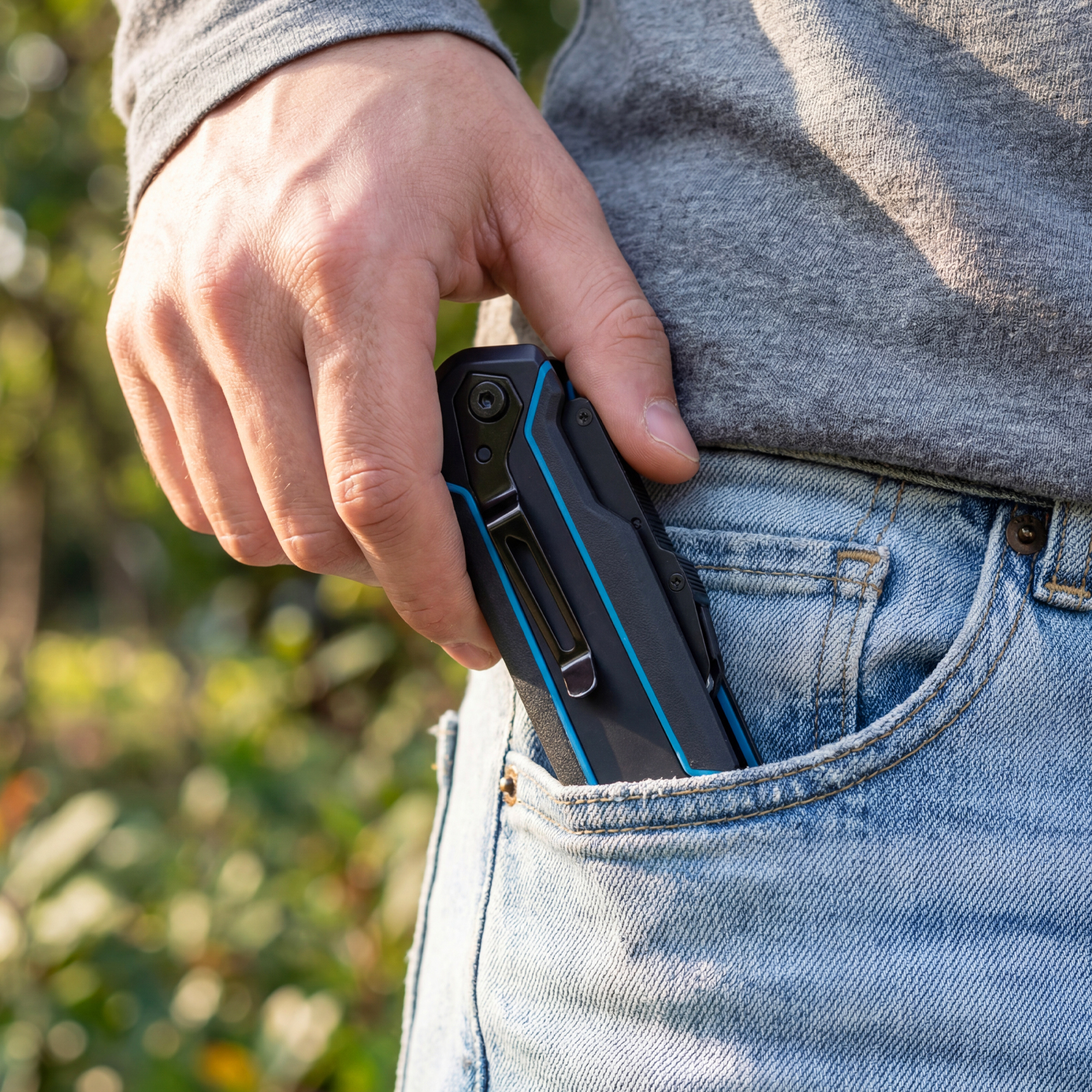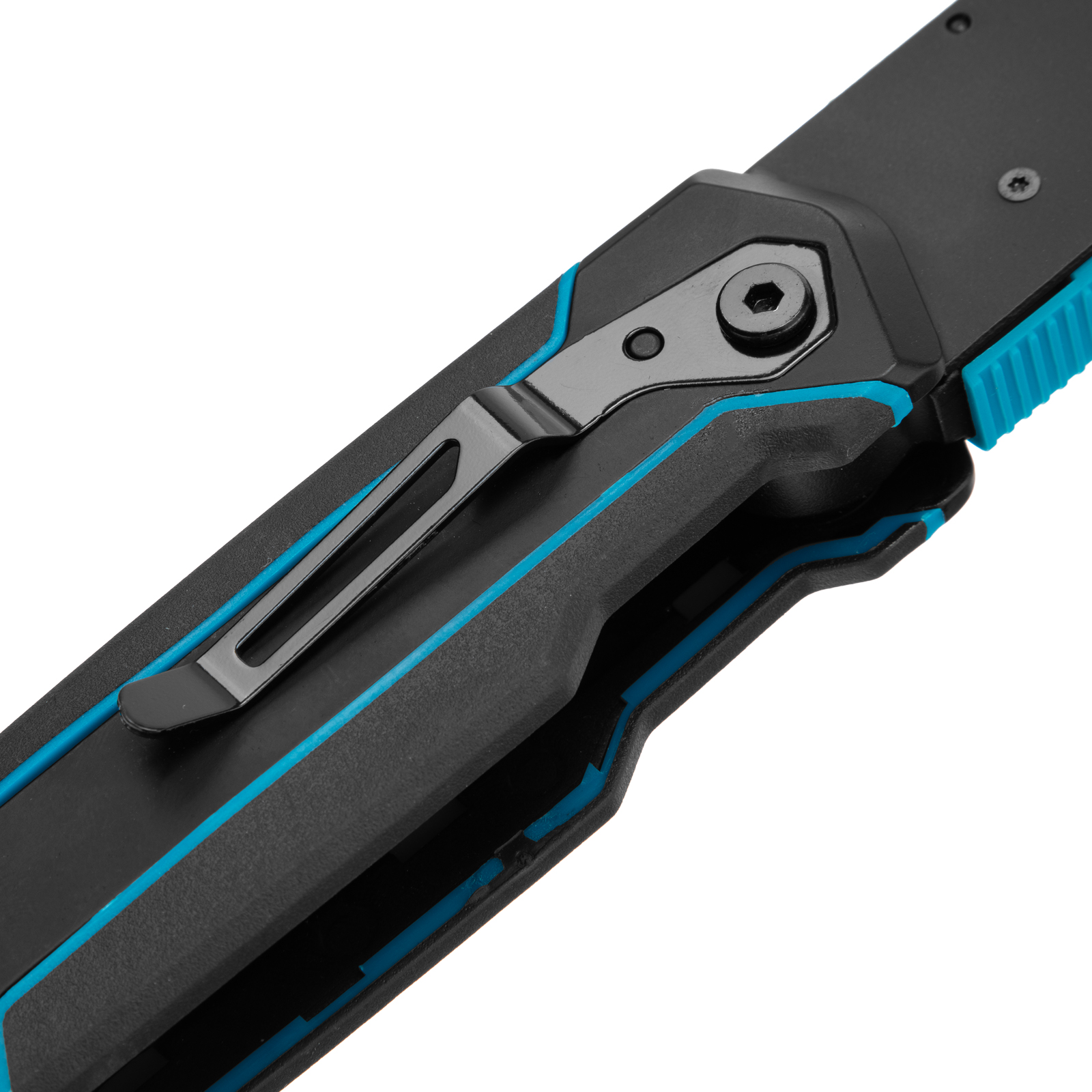 - Удобная транспортировка — длина ножа в сложенном виде составляет всего 11,7 см, вес — 183 г, специальная клипса позволяет зафиксировать его на поясном ремне.