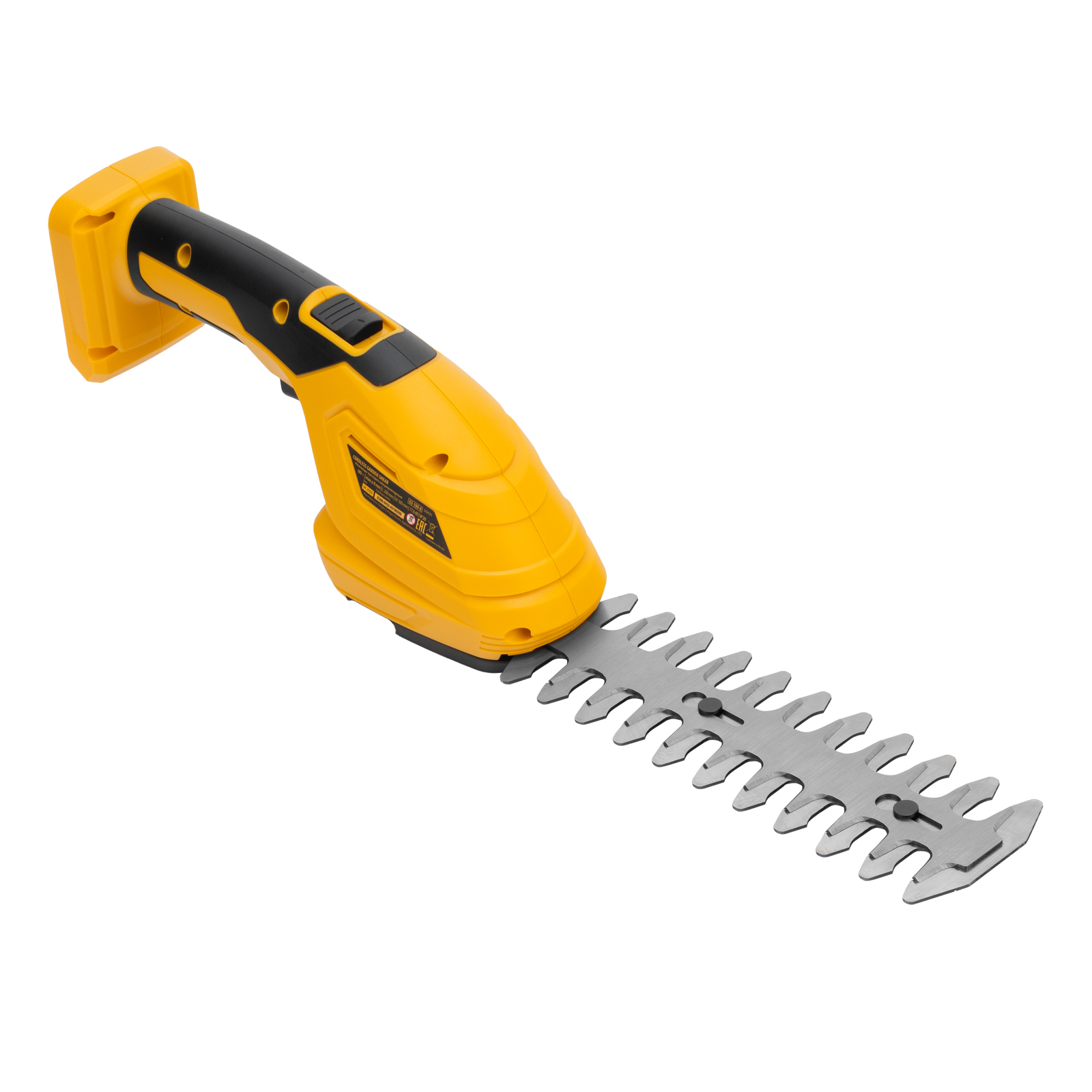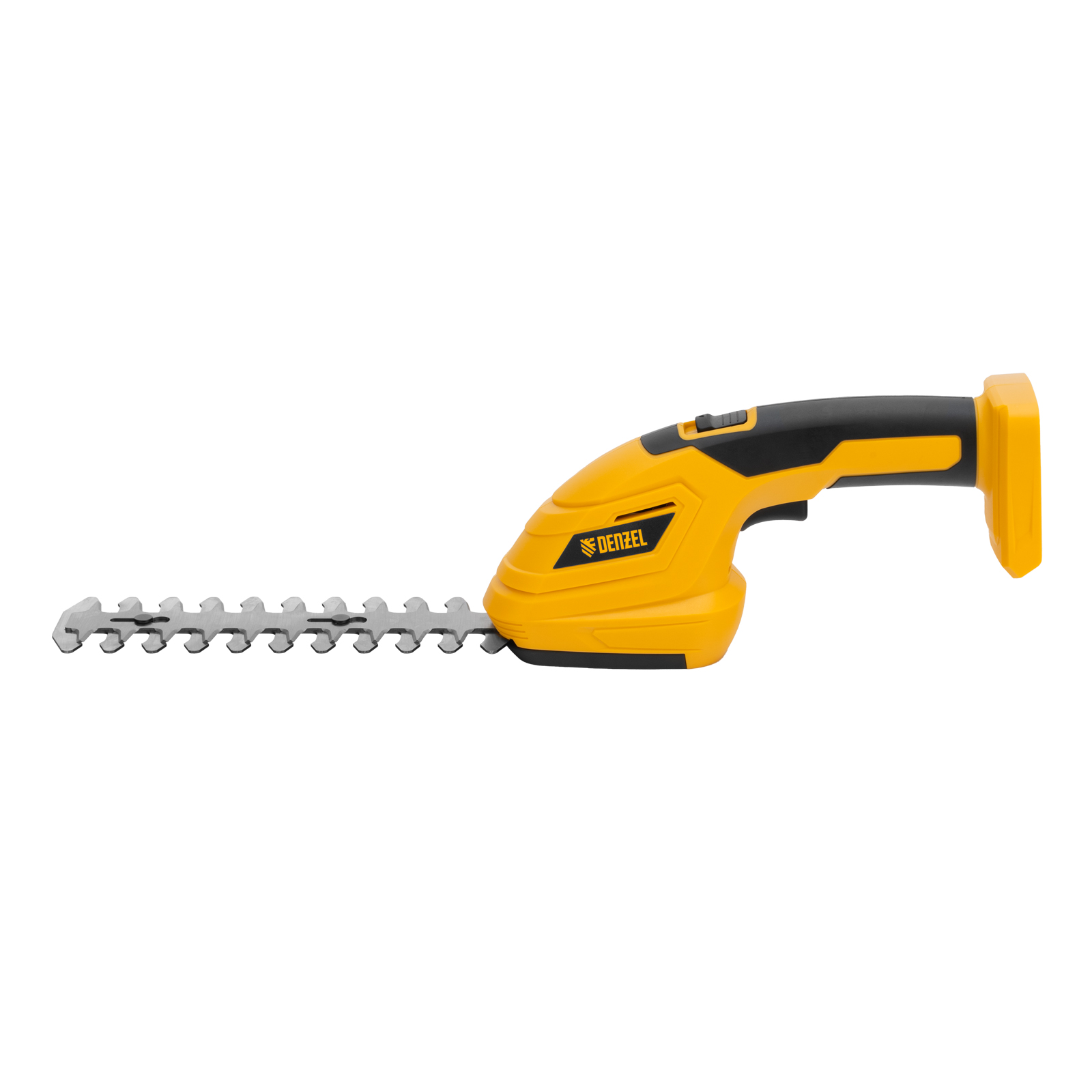 Аккумуляторные ножницы-кусторез Denzel CGS-100-0 59431 работают от батареи 18 В Li-Ion (не входит в комплект поставки) и предназначены для срезания травы, обрезки кустарников, листвы и тонких побегов деревьев диаметром до 8 мм. Инструмент оптимален для создания живой изгороди на дачном участке, создания ландшафтных скульптур из декоративных растений, подравнивания растительности вдоль заборов и бордюров.