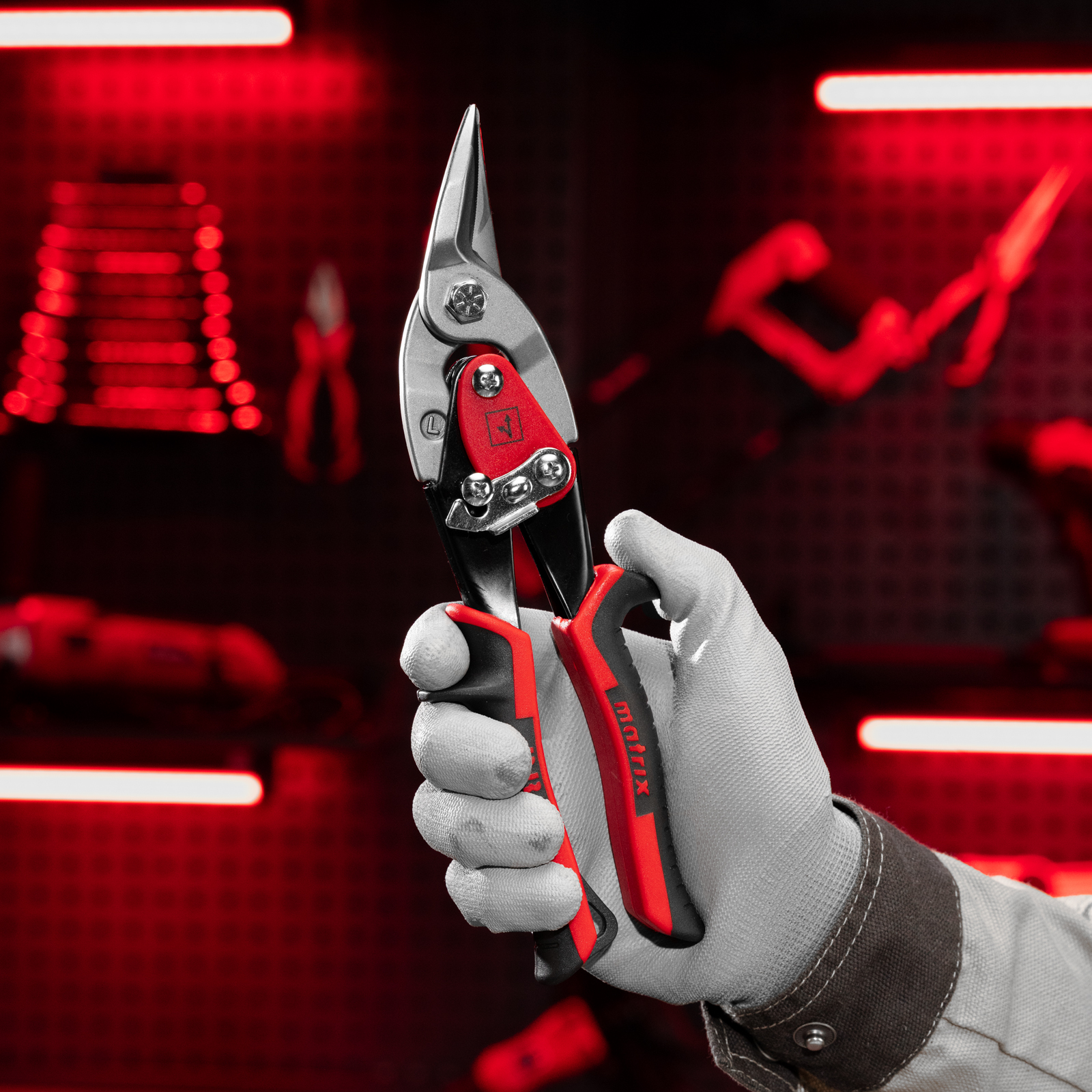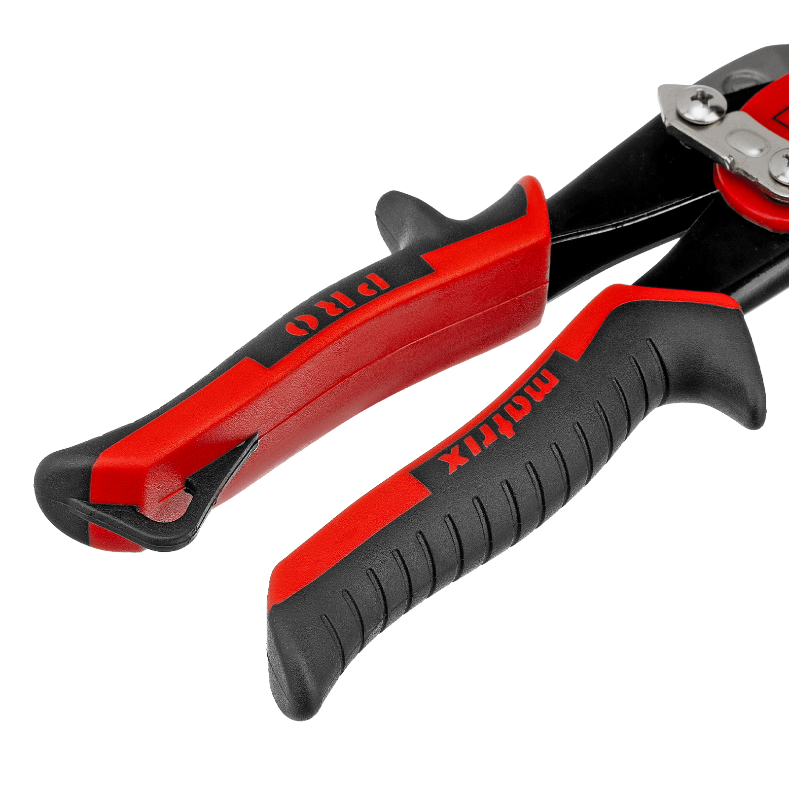 Ножницы по металлу Matrix PRO 78326 длиной 250 мм, из стали CrMo, с двухкомпонентными рукоятками, предназначены для левого реза листовых и профильных металлических заготовок, в том числе стали толщиной до 1,2 мм и нержавеющей стали толщиной до 0,8 мм. Двойной рычажный механизм позволяет прикладывать значительное усилие при резке толстого материала. Для удобства работы на корпусе имеется маркировка с указанием направления резания. Ножницы будут полезны в профессиональной и домашней мастерской.