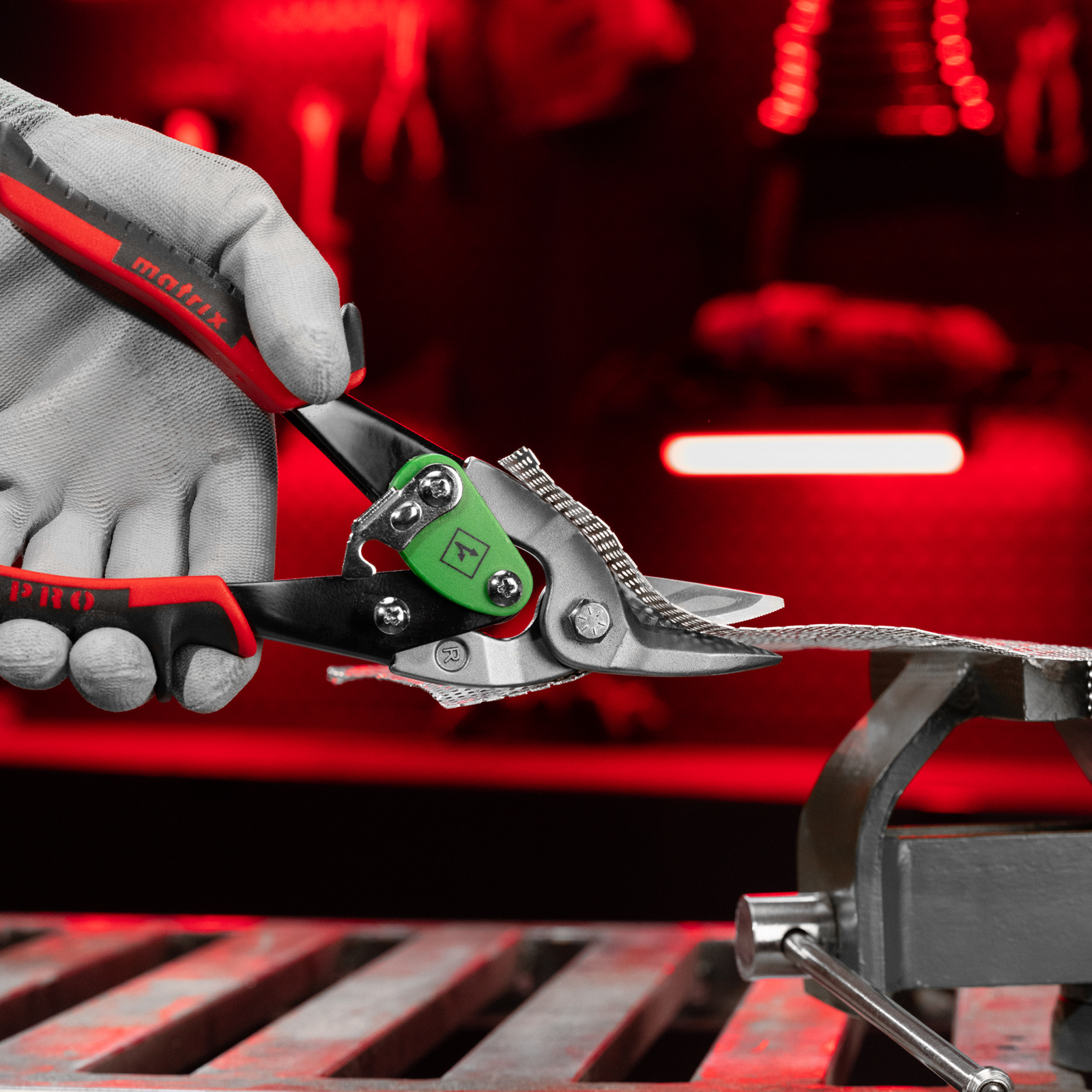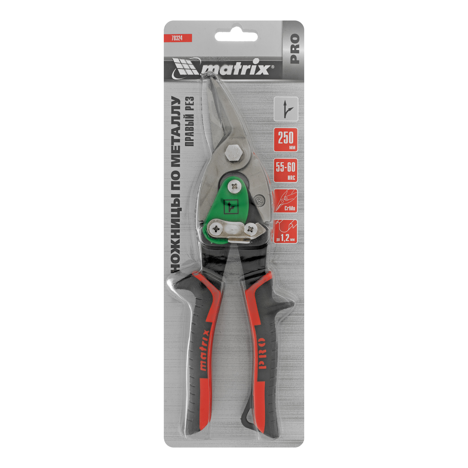 Ножницы по металлу Matrix PRO 78324 длиной 250 мм, с двухкомпонентными рукоятками, предназначены для правого реза листовых и профильных металлических заготовок, в том числе стали толщиной до 1,2 мм и нержавеющей стали толщиной до 0,8 мм. Двойной рычажный механизм позволяет прикладывать значительное усилие при резке толстого материала. Для удобства работы на корпусе имеется маркировка с указанием направления резания. Ножницы будут полезны в профессиональной и домашней мастерской.