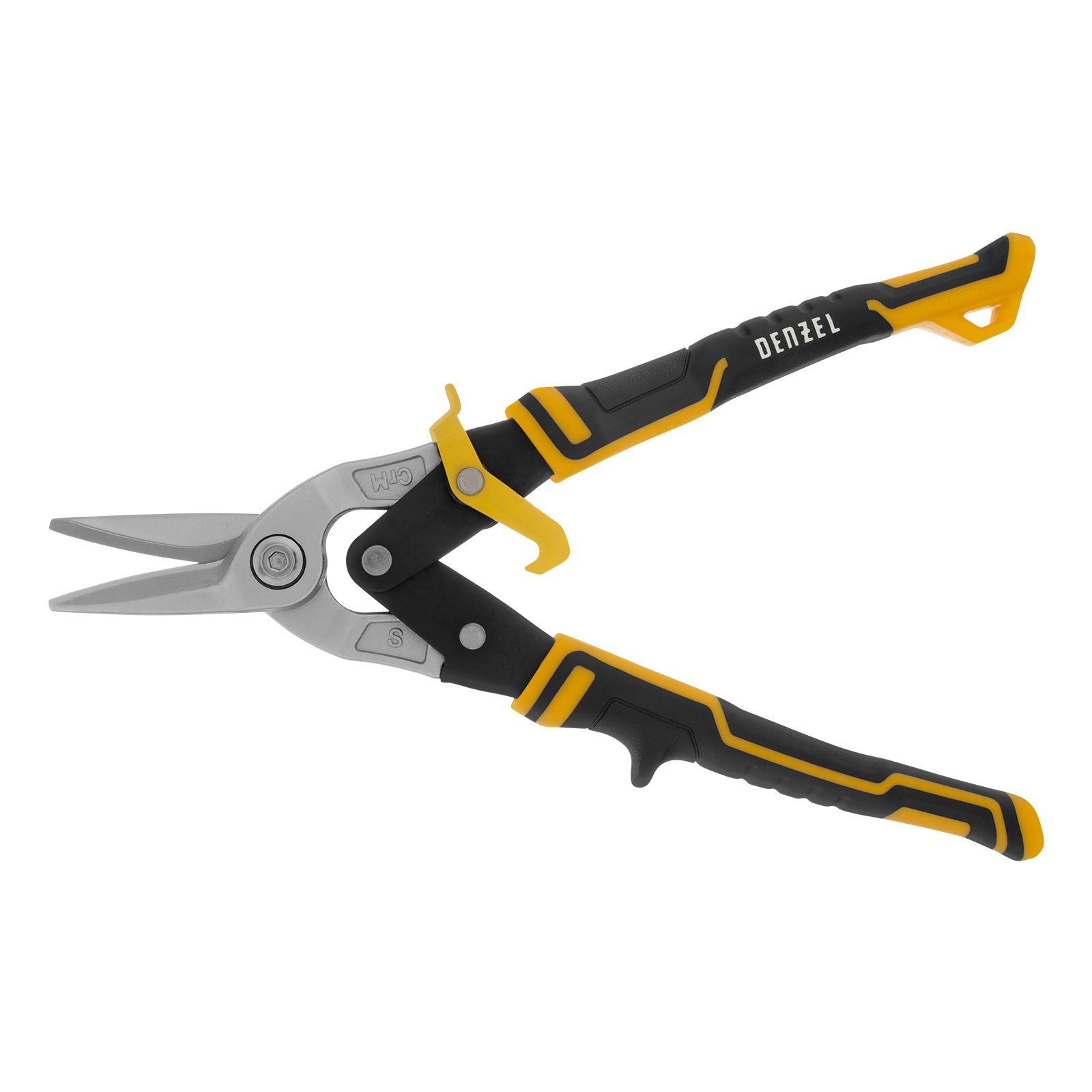 Ножницы по металлу Denzel 78370 общей длиной 270 мм, из стали-CrMo, с трехкомпонентными рукоятками, предназначены для прямого реза листовых металлических заготовок и металлопрофиля толщиной до 1,2 мм. Инструмент с усиленной конструкцией осевого шарнира рассчитан на профессиональное использование. Ножницы используются для проведения строительных, кровельных и слесарных работ.