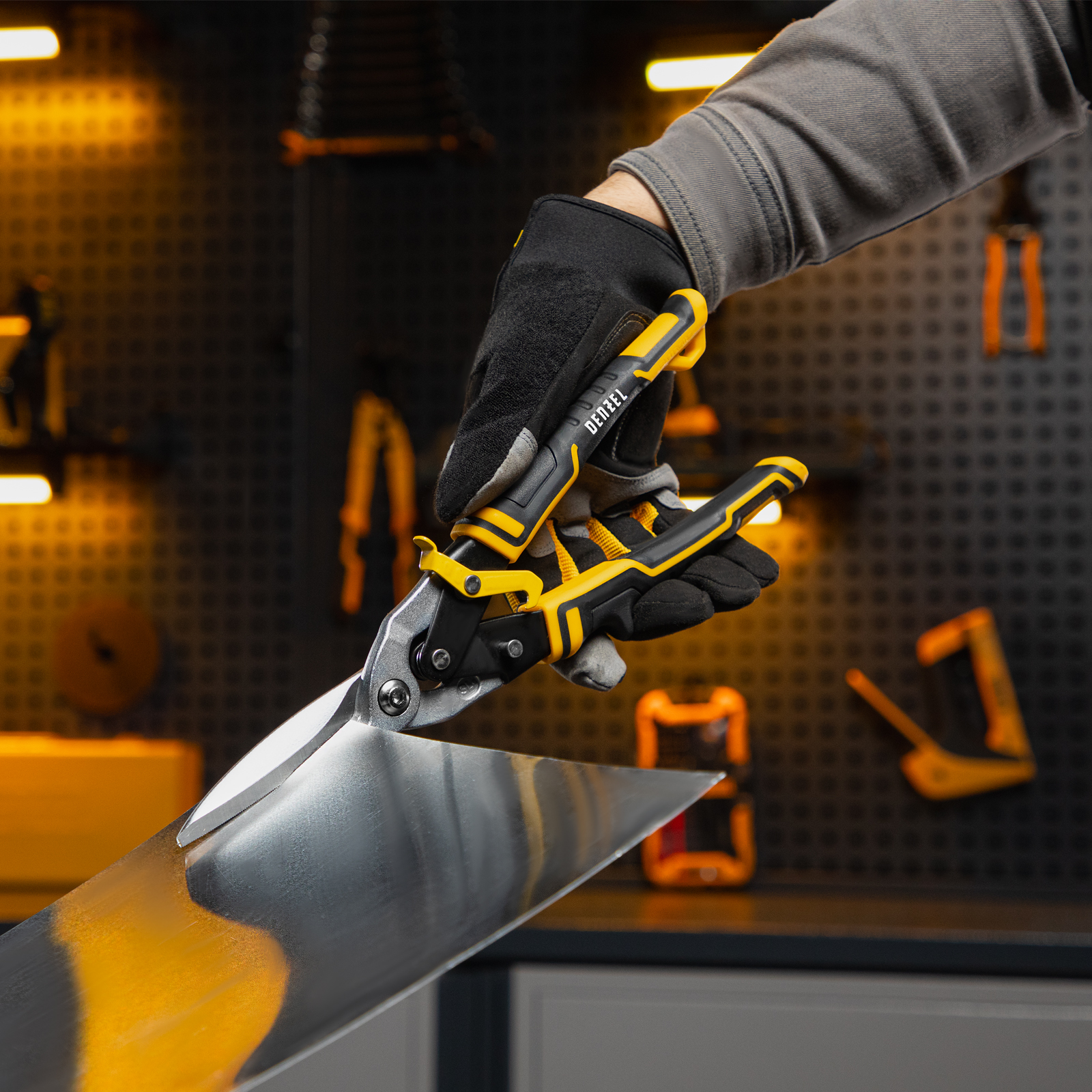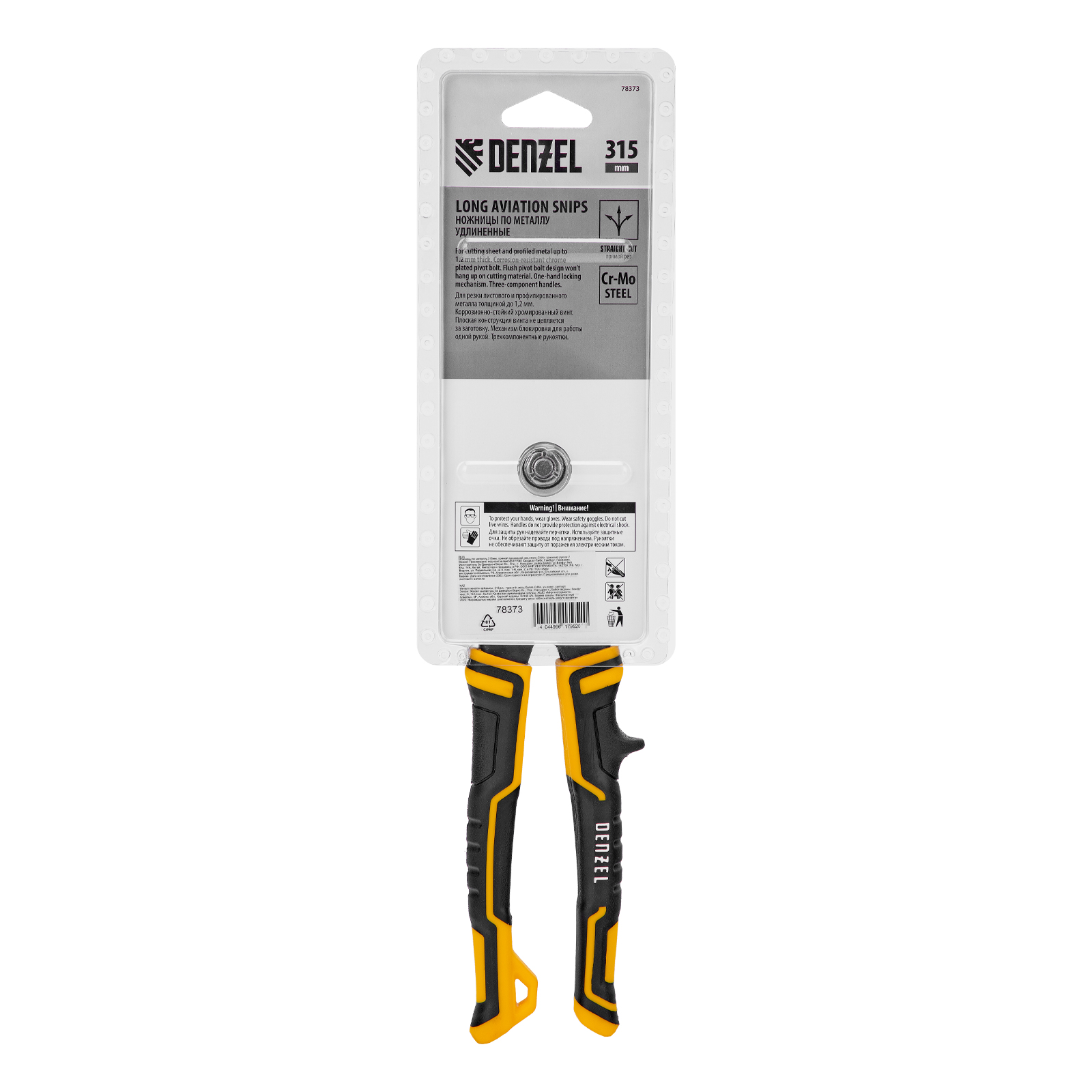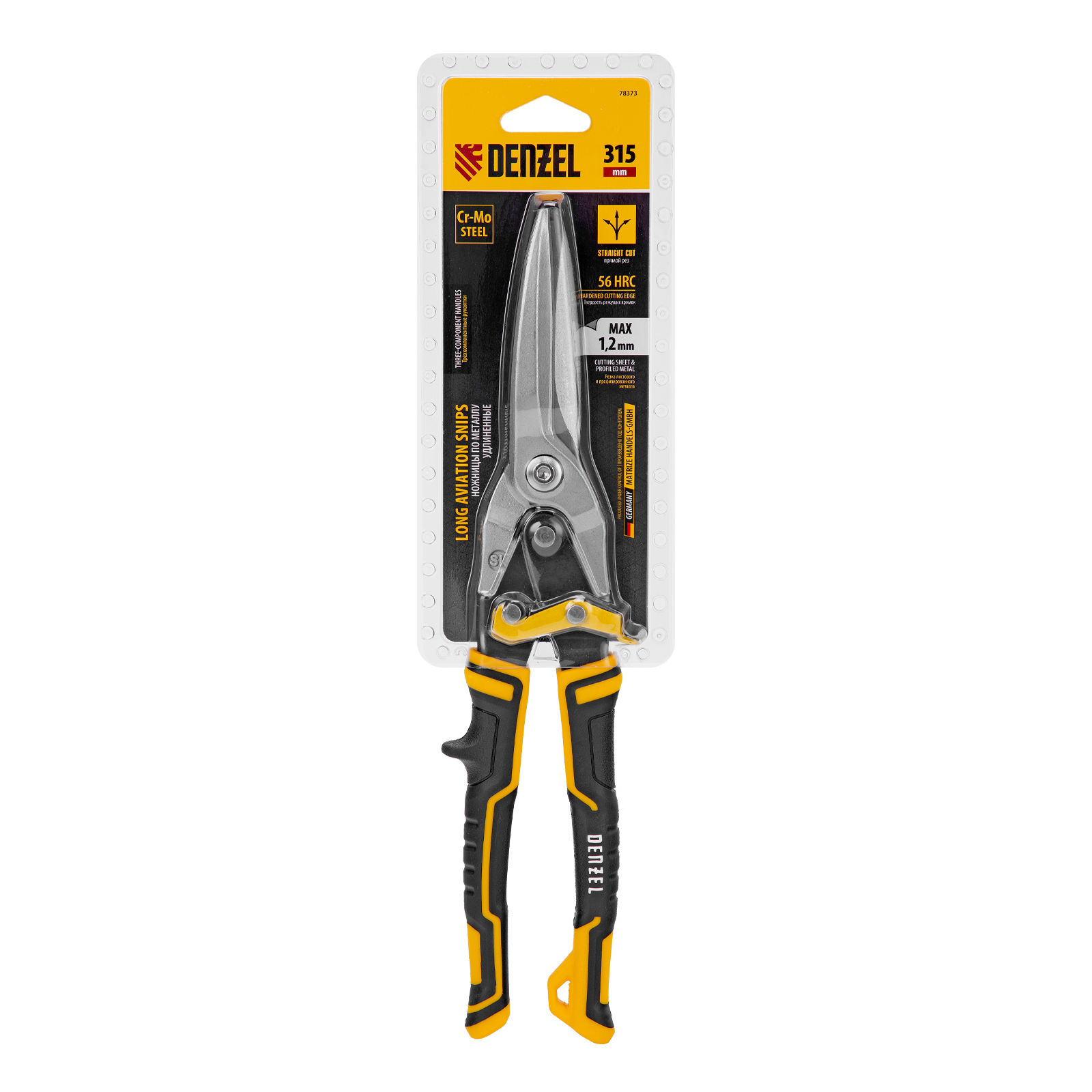 Ножницы Denzel 78373 длиной 315 мм, из стали CrMo, с трехкомпонентными рукоятки, предназначены для прямого проходного реза. Благодаря удлиненной рабочей части легко справляются с резкой широких металлических листов толщиной до 1,2 мм. Инструмент используется для проведения профессиональных строительных, кровельных и слесарных работ.