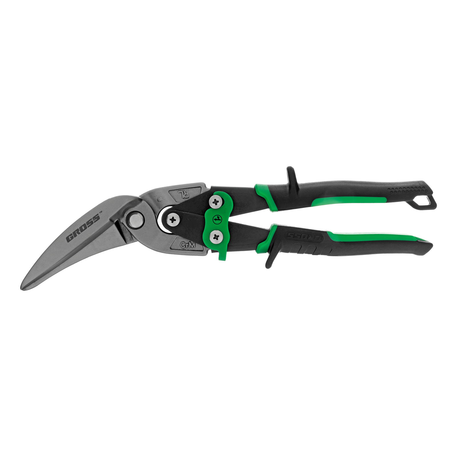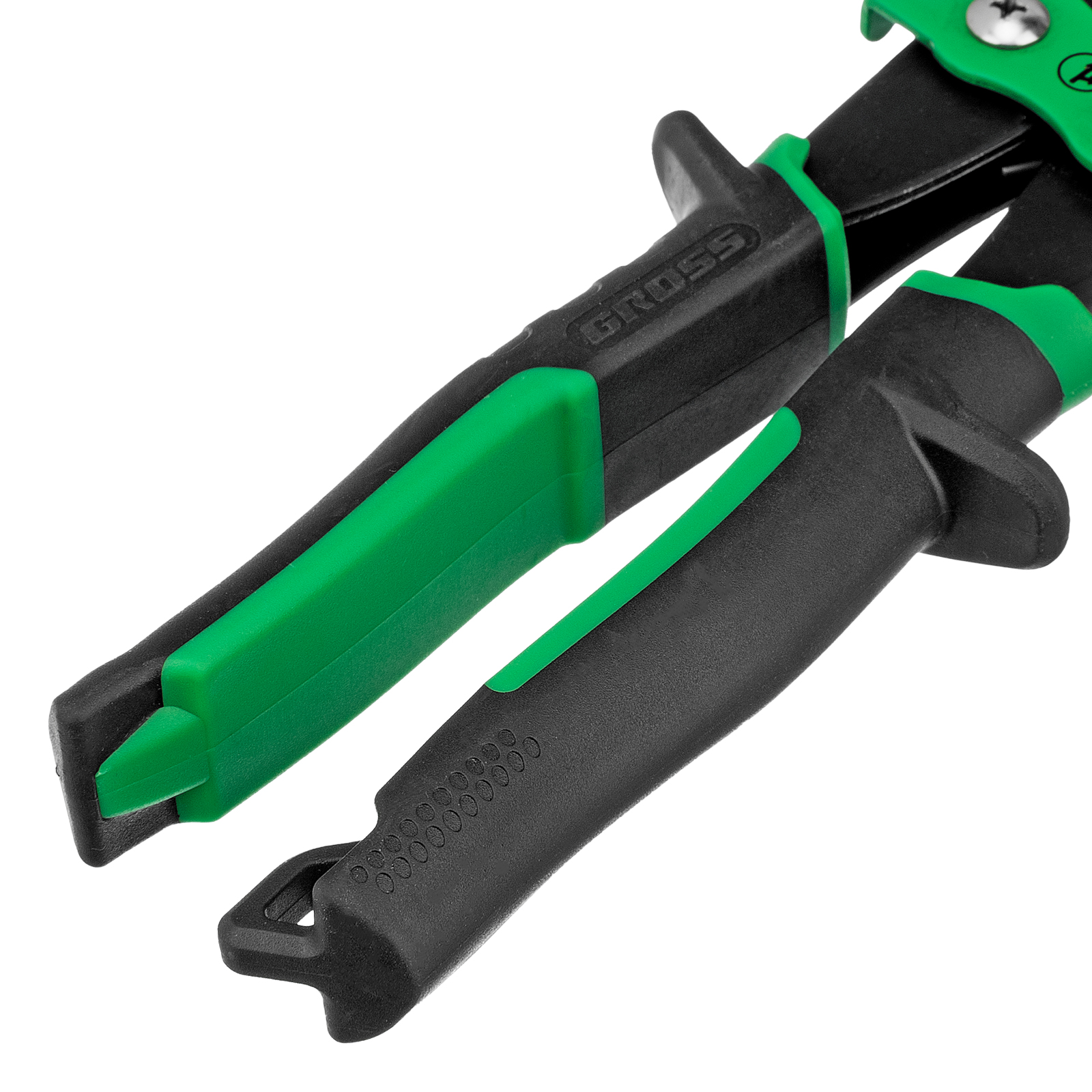 Ножницы по металлу Gross PIRANHA 78333 длиной 270 мм, из стали CrMo, с двухкомпонентными рукоятками, выполняют прямой и правый проходной рез по листовому металлу. Режут не только цветные металлы, но и стали: холоднокатаную толщиной до 0,94 мм и нержавеющую толщиной до 0,53 мм. Двойной рычажный механизм снижает нагрузку на руку. Ножницы рекомендованы для выполнения профессиональных слесарных работ.