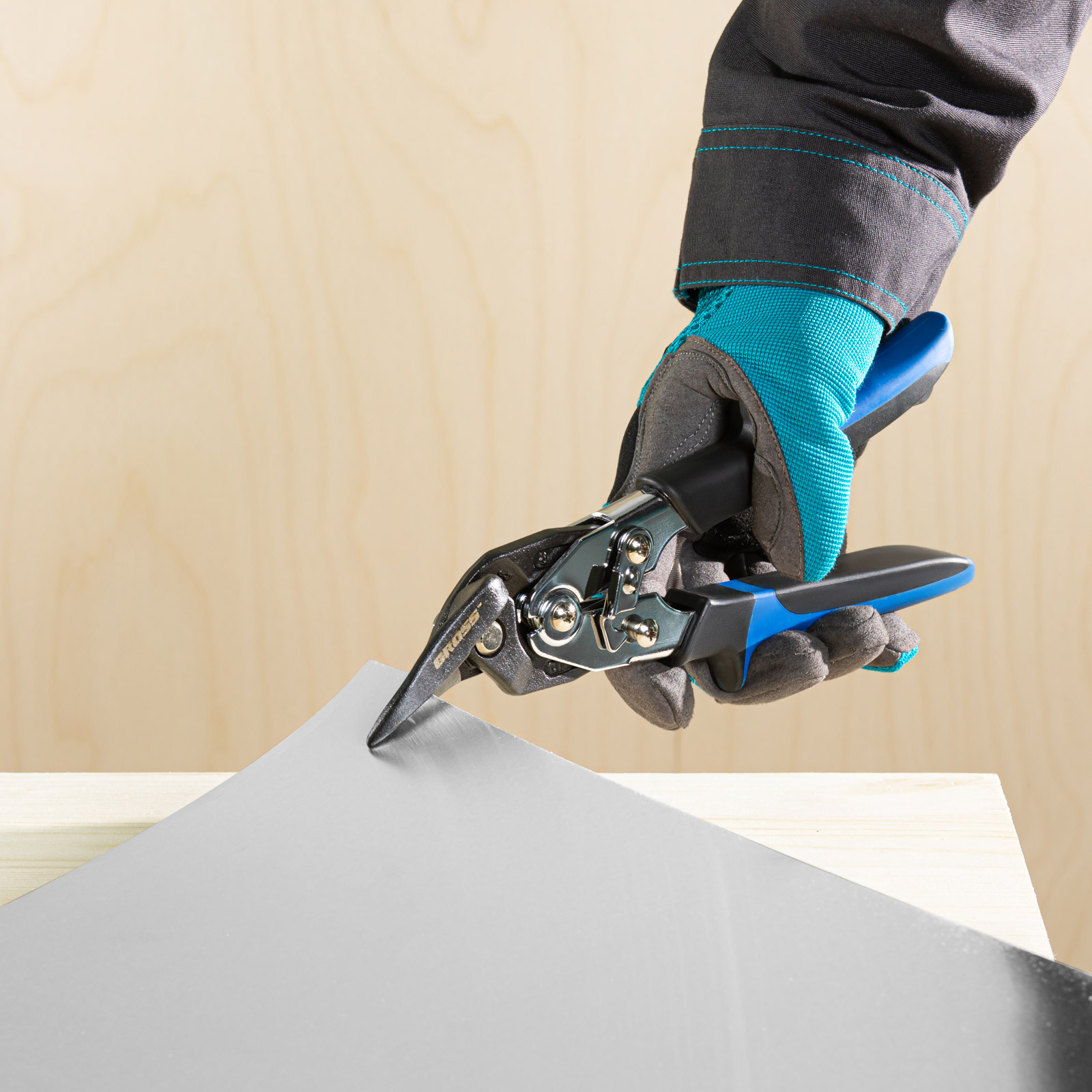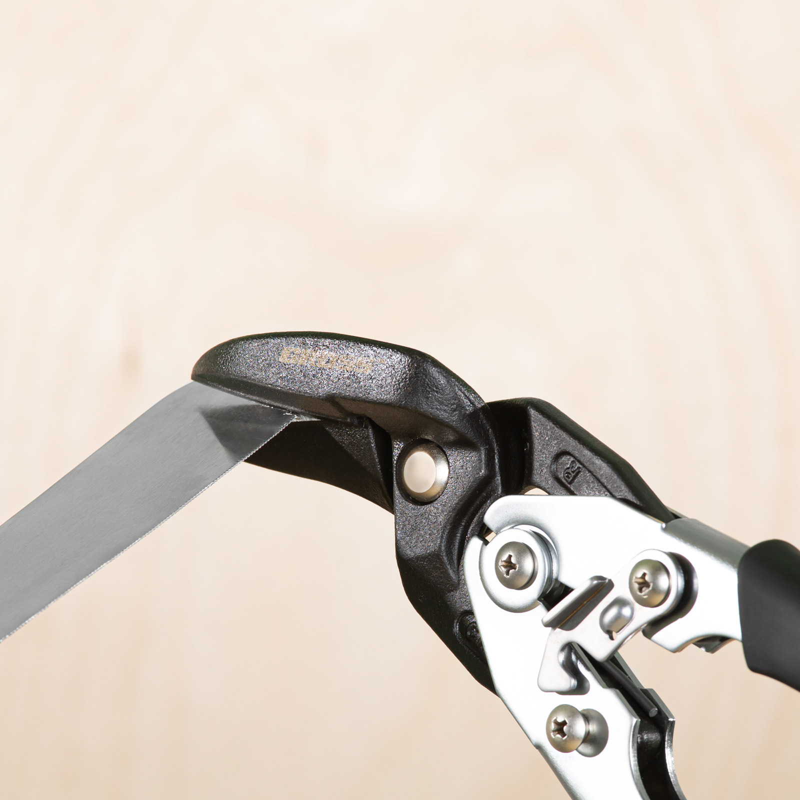 Высокая режущая способность — лезвия закалены индукционными токами до твердости 60-62 HRC, поэтому успешно справляются с резкой листового металла.