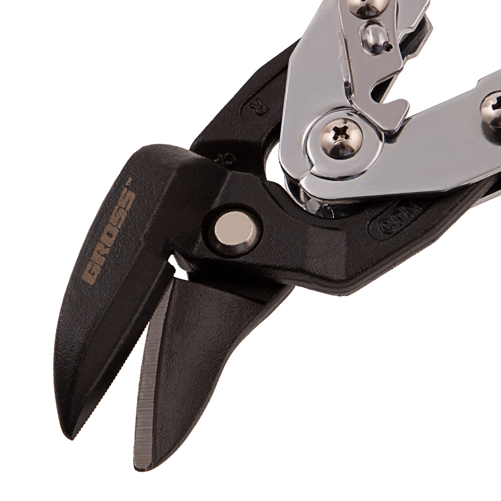 Усиленные ножницы по металлу Gross PIRANHA 78351 длиной 255 мм, из стали CrMo, с двухкомпонентными рукоятками, предназначены для прямого и криволинейного правого реза по листовым заготовкам. Режут металл разных марок толщиной до 1,2 мм, а также нержавеющую сталь толщиной до 0,94 мм. Двойной рычажный механизм уменьшает нагрузку на руку, передавая при этом значительное усилие. Ножницы используются при проведении строительных, монтажных работ, будут полезны и в быту.