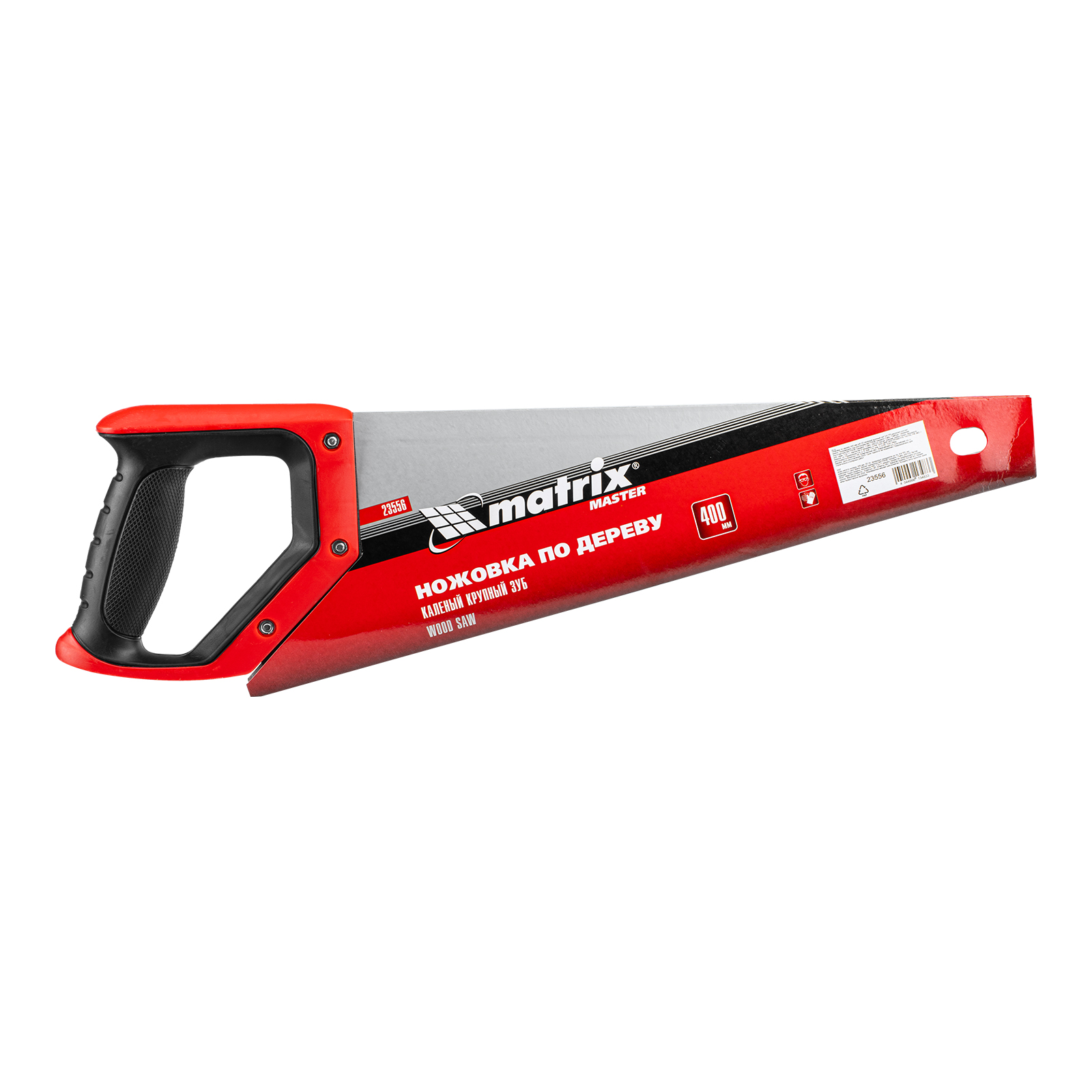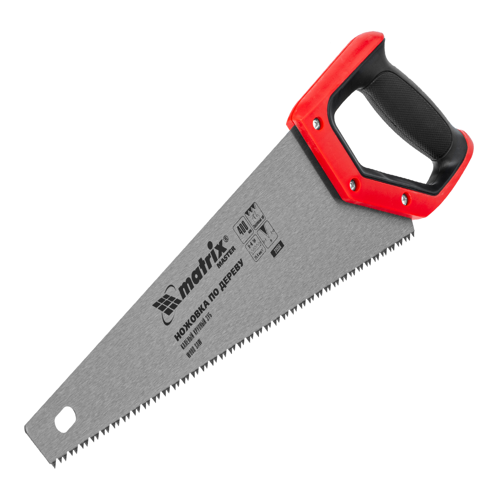 Ножовка по дереву Matrix 23556 с полотном длиной 400 мм, с крупными калеными зубьями с шагом 5-6 TPI и 2D-заточкой, с двухкомпонентной рукояткой, используется для быстрой продольной или поперечной распиловки древесины. Высокая скорость работы достигается благодаря крупным зубьям с волновой заточкой и универсальным шагом 4-5 мм. Двухгранная заточка зубьев дает возможность пилить в направлении как от себя, так и на себя, а также перетачивать режущую кромку при необходимости. Ножовка подходит для выполнения плотницких и хозяйственных работ.
