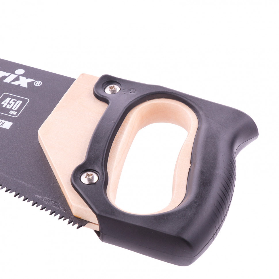 Ножовка по дереву Matrix 23578 с полотном длиной 450 мм, с калеными зубьями с 3D-заточкой и шагом 7-8 TPI, с тефлоновым покрытием и деревянной рукояткой, служит для продольного и поперечного пиления древесины, фанеры и ДСП. Режущая часть не требует заточки и содержит 7-8 зубьев на дюйм, что обеспечивает быстрый рез. Благодаря трехгранной заточке зубьев ножовка обладает высокой производительностью. Инструмент будет полезен для проведения плотницких работ в мастерской, а также дома или на даче.