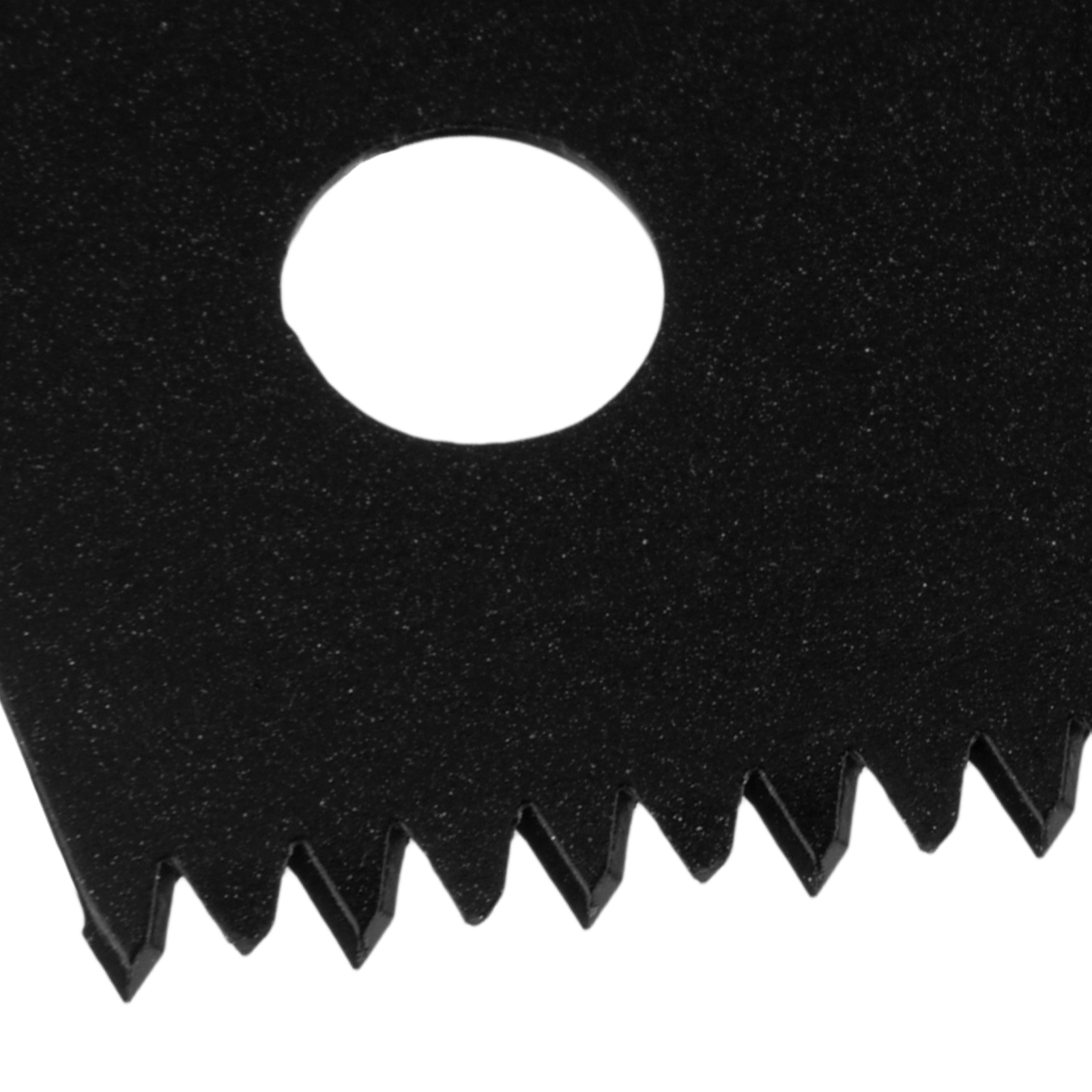Высокий ресурс — закаленные зубья твердостью 50-55 HRC долго держат заточку, тефлоновое покрытие защищает полотно от коррозии.