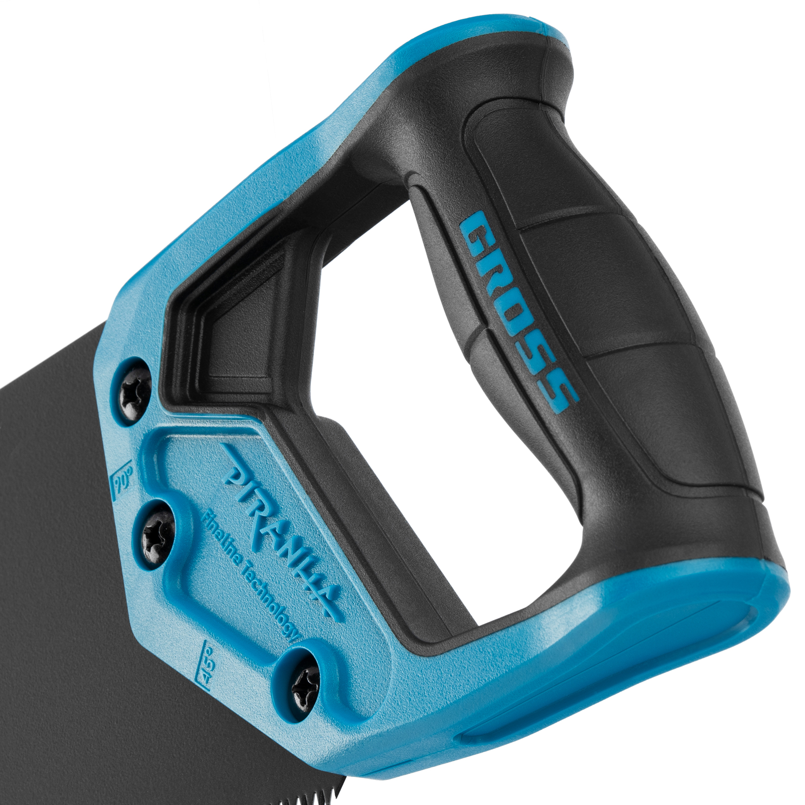Ножовка по дереву Gross PIRANHA 24111 с полотном длиной 400 мм, калеными зубьями с 3D-заточкой и шагом 11-12 TPI, тефлоновым покрытием полотна и 2-компонентной рукояткой, используется для продольного и поперечного распиливания древесины различных пород, МДФ, ДСП, ДВП, ламината, а также пенополистирола, полиуретана и других синтетических материалов. Рабочая часть состоит из мелких зубьев с шагом 2-2,3 мм, что позволяет получить ровный и чистый рез. Трехгранная заточка зубьев увеличивает производительность инструмента без потери качества распиловки. Ножовка предназначена для столярных работ.
