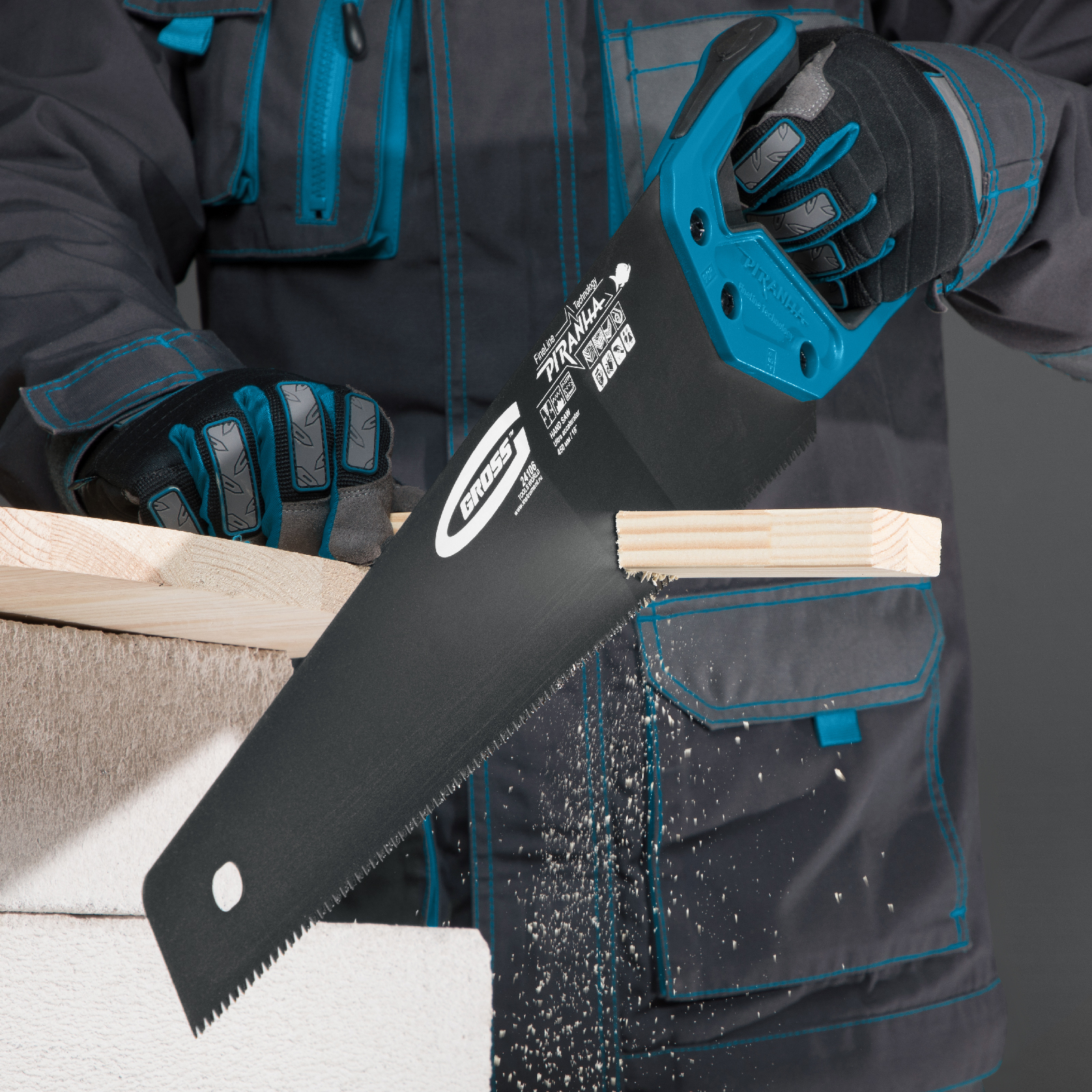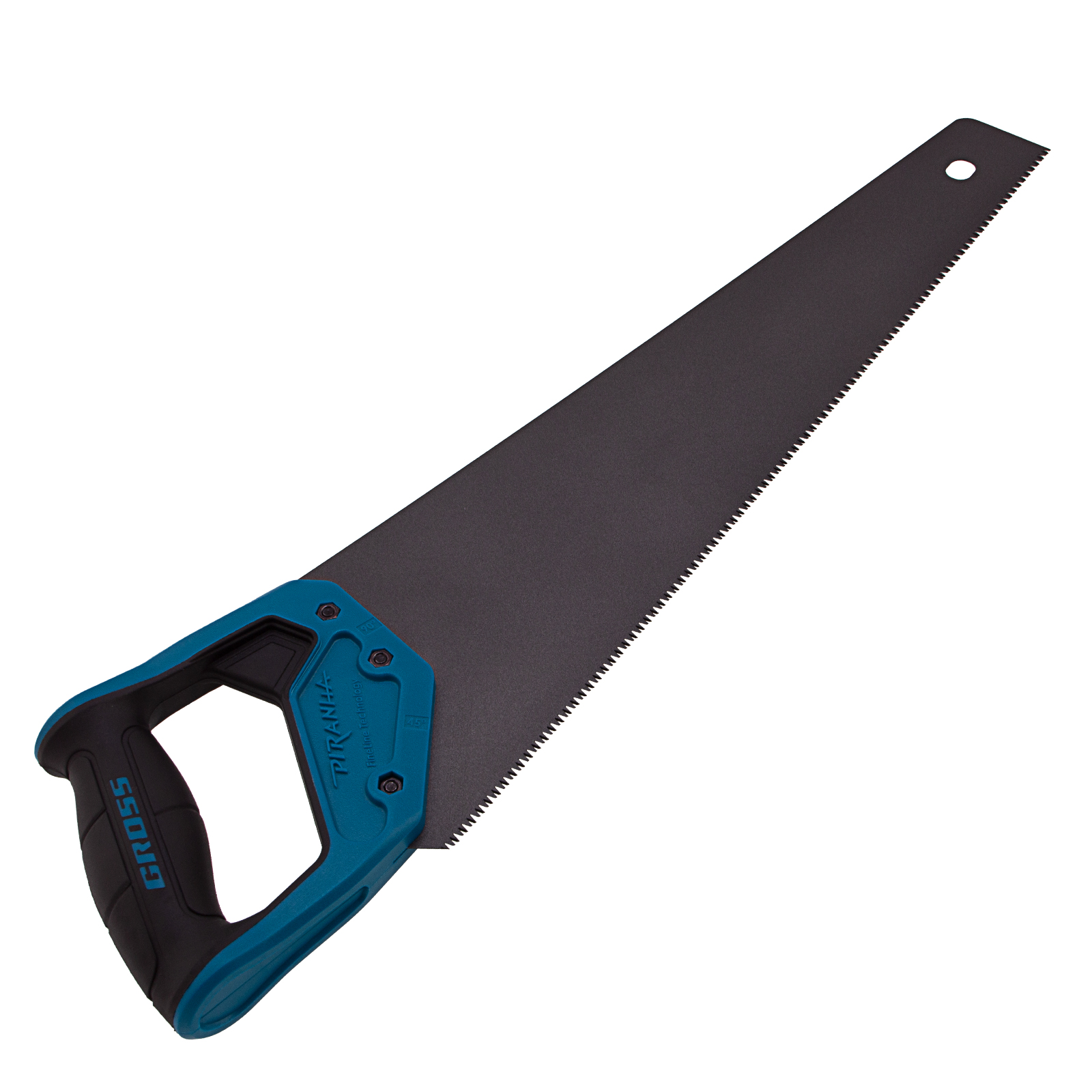 Ножовка по дереву Gross PIRANHA 24106 с полотном длиной 450 мм, калеными зубьями с 3D-заточкой и шагом 11-12 TPI, тефлоновым покрытием полотна и 2-компонентной рукояткой, используется для продольного и поперечного распиливания древесины различных пород, МДФ, ДСП, ДВП, ламината, а также пенополистирола, полиуретана и других синтетических материалов. Рабочая часть состоит из мелких зубьев с шагом 2-2,3 мм, что позволяет получить ровный и чистый рез. Трехгранная заточка зубьев увеличивает производительность инструмента без потери качества распиловки. Ножовка предназначена для столярных работ.