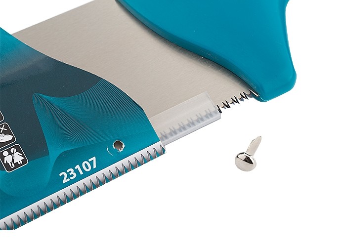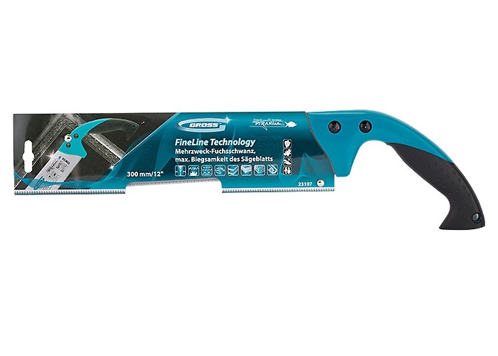 Многофункциональная ножовка по дереву Gross PIRANHA 23107 длиной 300 мм, с калеными 3D-зубьями с шагом 14-15 TPI, — режущий инструмент с предельной гибкостью полотна. Используется для пиления древесины, фанеры, ДСП, ДВП, МДФ, ламината, а также пенополистирола, полиуретана и других синтетических материалов. Рабочая часть состоит из мелких зубьев с шагом 14-15 TPI, поэтому распил получается ровным и гладким. Трехгранная заточка зубьев обеспечивает высокую производительность инструмента. Ножовка будет полезна в столярной мастерской, пригодится также во время ремонта.