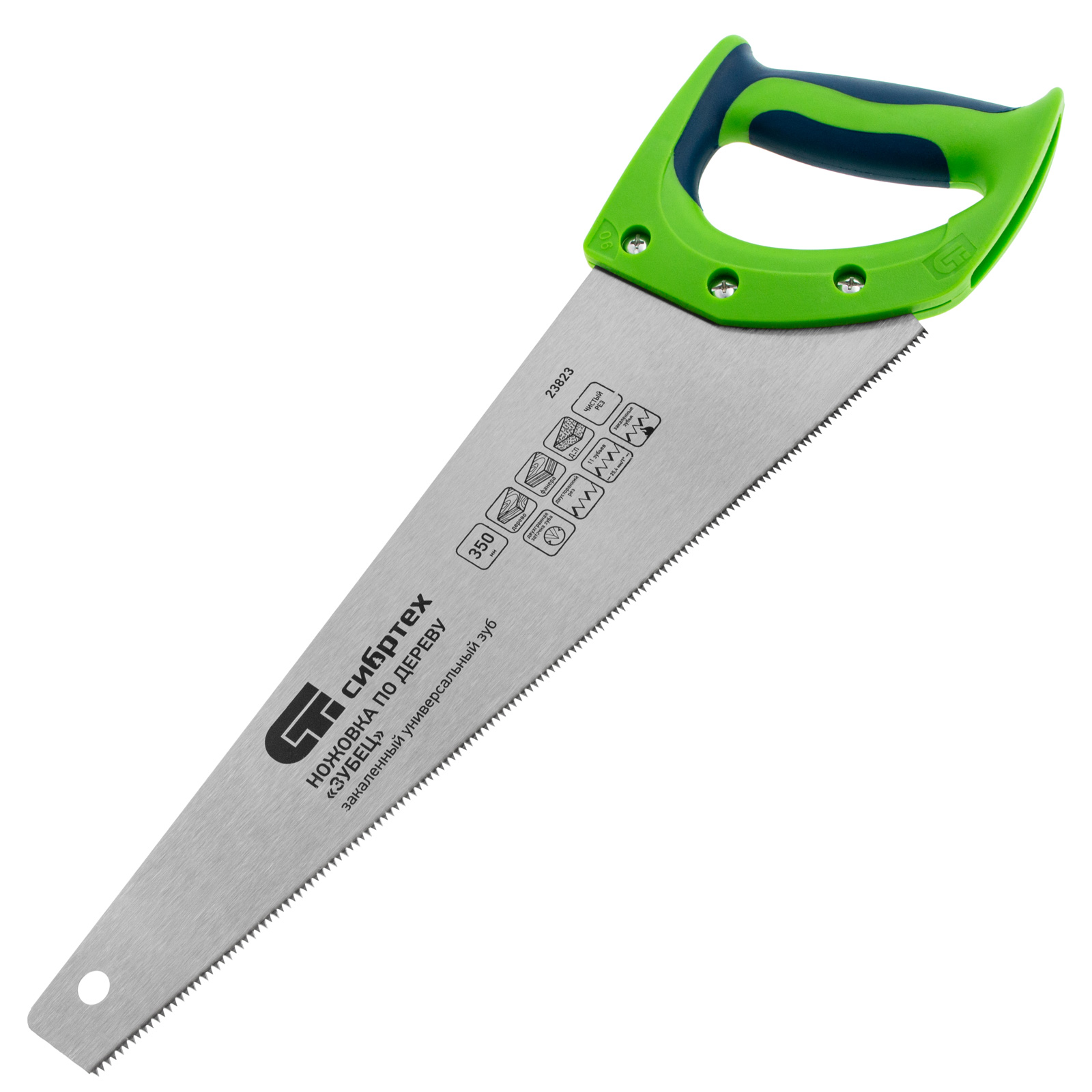 Ножовка по дереву Сибртех «Зубец» 23823 с полотном длиной 350 мм, калеными зубьями с 2D-заточкой и шагом 11 TPI, предназначена для пильных работ по древесине, фанере и ДСП. Подходит для двустороннего реза. Режущая часть с мелкими зубьями позволяет выполнять аккуратный и чистый распил. При необходимости кромку ножовки можно заточить. Инструмент будет полезен в столярной мастерской, также пригодится в быту.