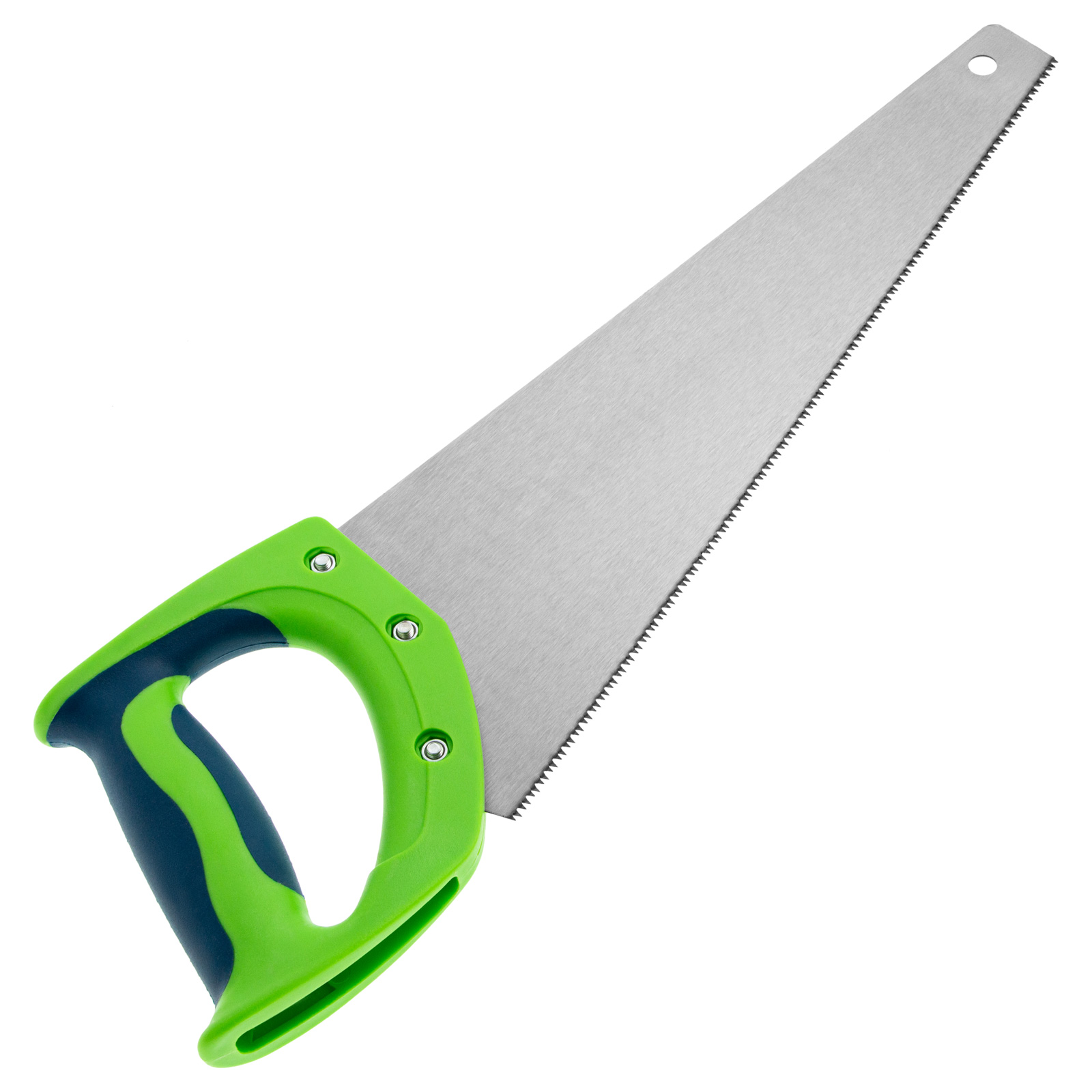 - Комфорт во время работы — рукоятка обрезинена и надежно ложится в руку, что снижает нагрузку на кисть во время длительного пиления.