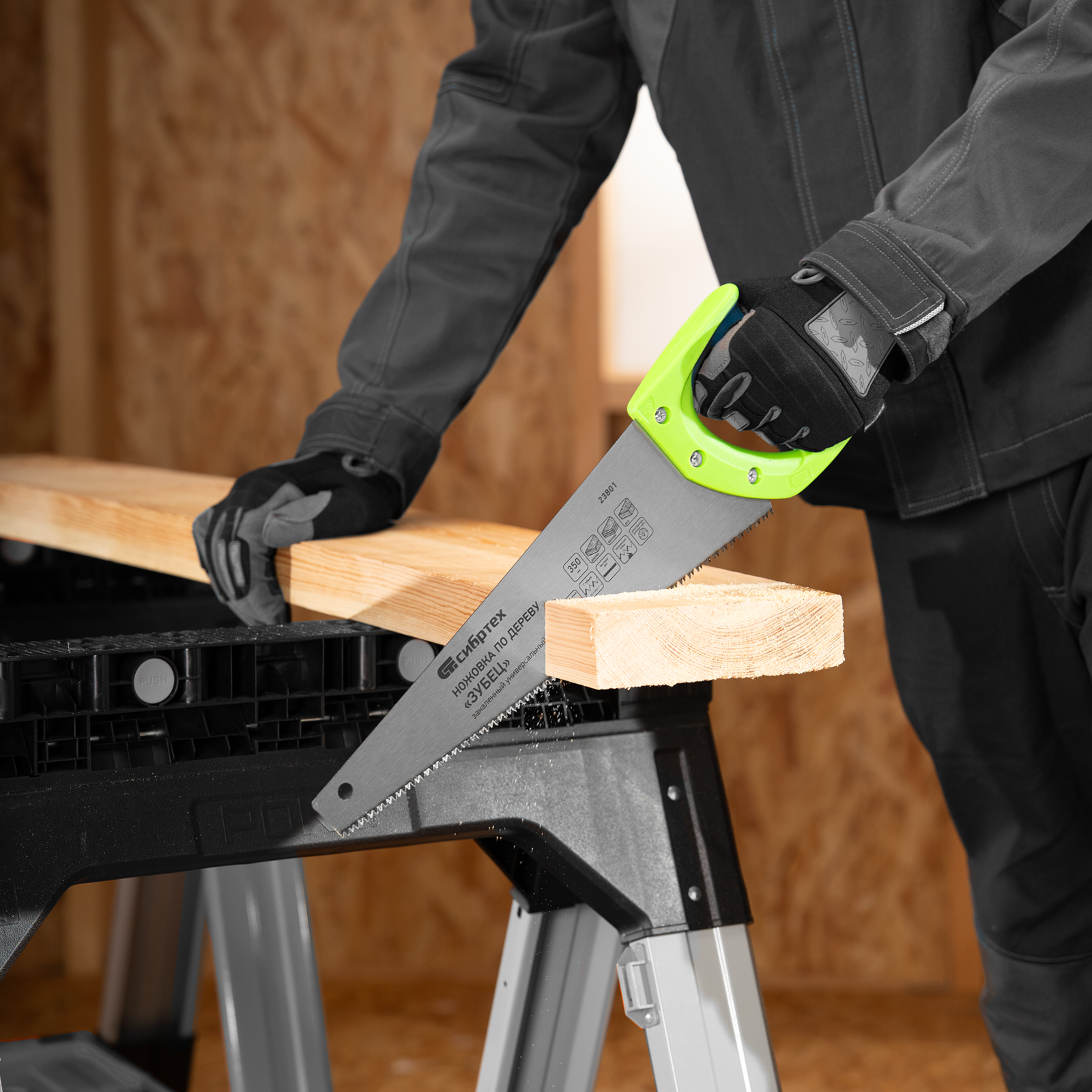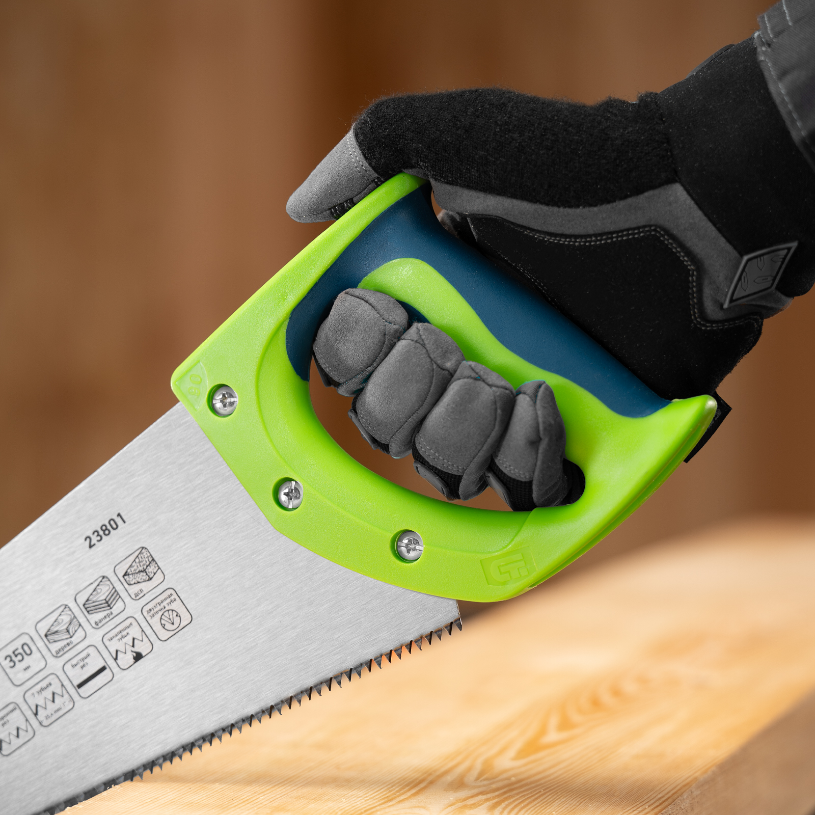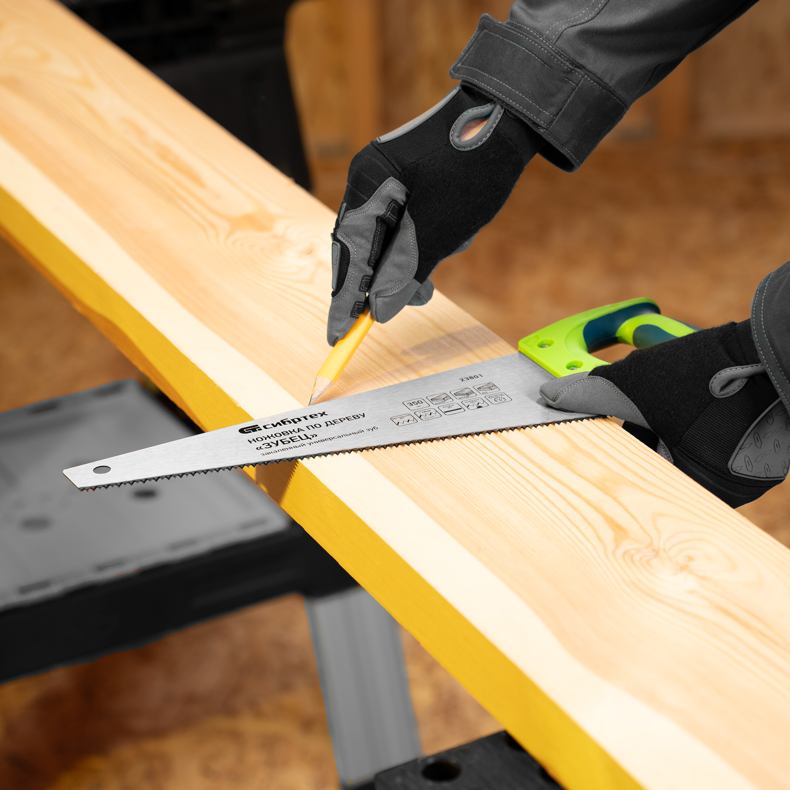 <p>Ножовка по дереву Сибртех «Зубец» 23801 с полотном длиной 350 мм, калеными зубьями с 2D-заточкой и шагом 7 TPI, с 2-компонентной рукояткой, используется для распиливания заготовок из древесины, фанеры и ДСП. Рабочая часть, содержащая 7 зубьев на дюйм, обеспечивает быстрый двусторонний рез. Режущую кромку можно перетачивать при необходимости. Ножовка будет полезна столяру, плотнику и домашнему мастеру.</p><h2>Преимущества</h2><ul><li>Прочность — полотно из пружинной стали 65Mn выдерживает значительные нагрузки.</li><li>Высокий ресурс — зубья прошли закалку до необходимой твердости.</li><li>Антикоррозийная защита — поверхность полотна покрыта лаком.</li><li>Надежная конструкция — рукоятка из ударопрочного пластика прикреплена к полотну 3 винтами.</li><li>Комфортная работа — благодаря резиновым вставкам рукоятка не выскальзывает из ладони.</li></ul>