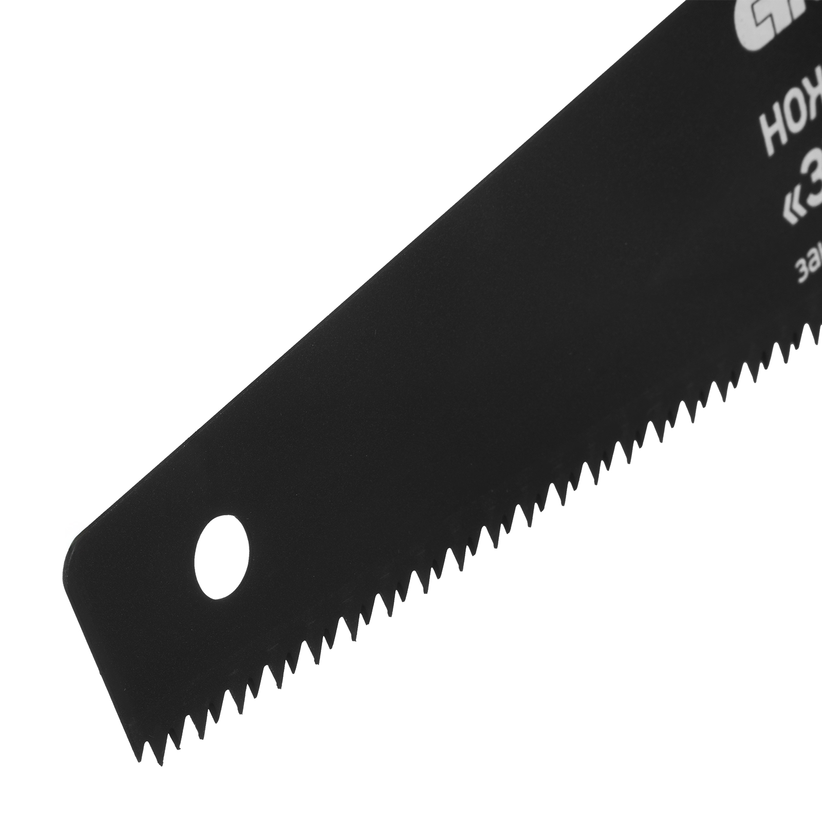 - Высокий ресурс — зубья прошли закалку до необходимой твердости, тефлоновое покрытие защищает полотно от коррозии.