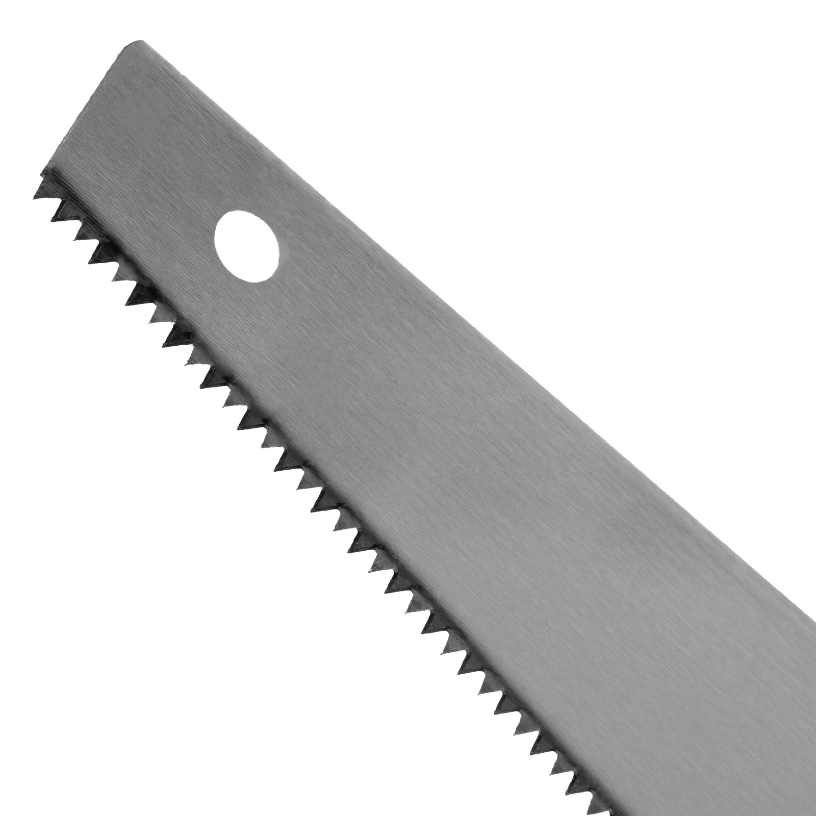 Ножовка по дереву Сибртех «Зубец» 23804 с полотном длиной 500 мм, калеными зубьями с 2D-заточкой и шагом 7-8 TPI, с двухкомпонентной рукояткой, используется для распиливания заготовок из древесины, фанеры и ДСП. Рабочая часть, содержащая 7-8 зубьев на дюйм, обеспечивает быстрый двусторонний рез. Режущую кромку можно перетачивать при необходимости. Ножовка будет полезна столяру, плотнику и домашнему мастеру.