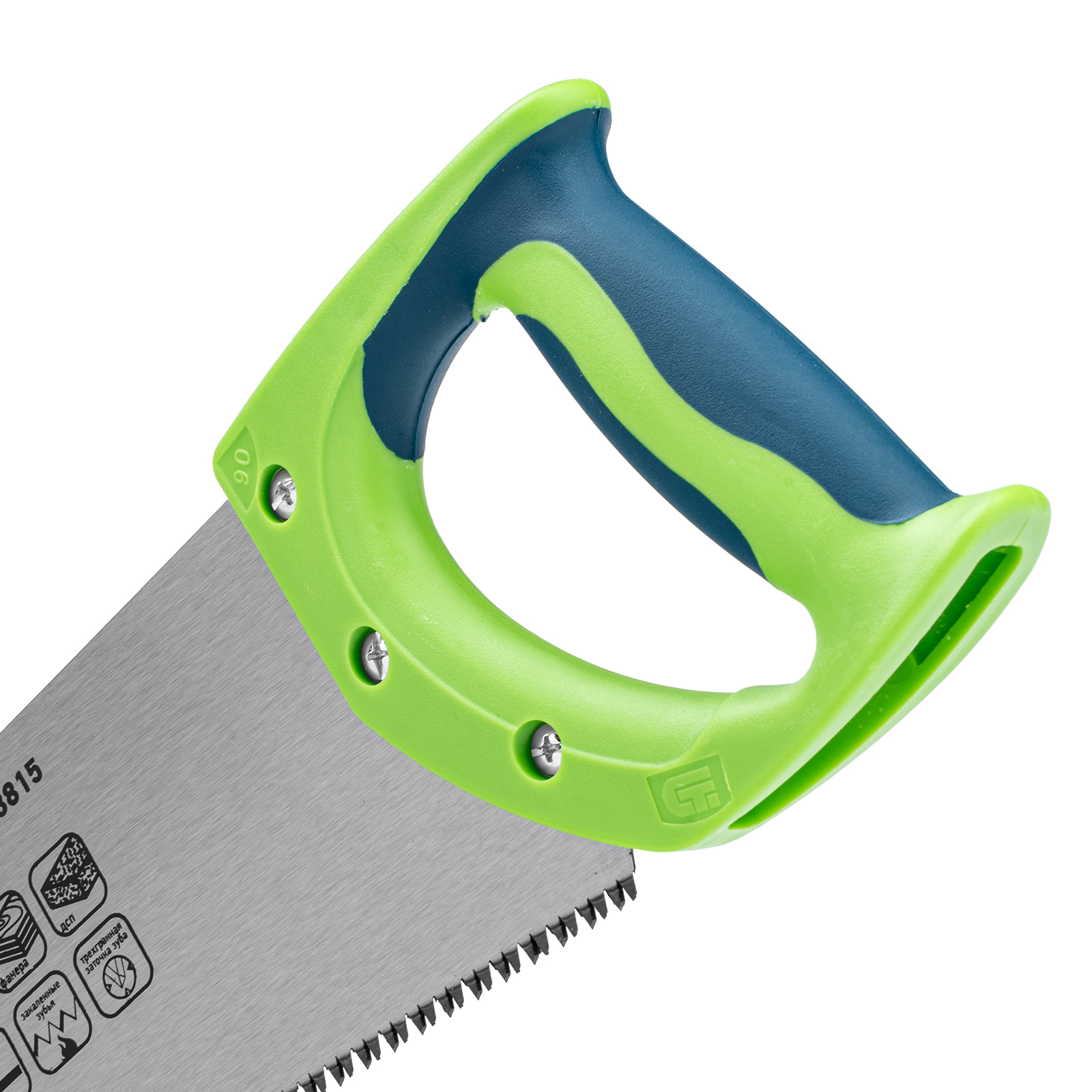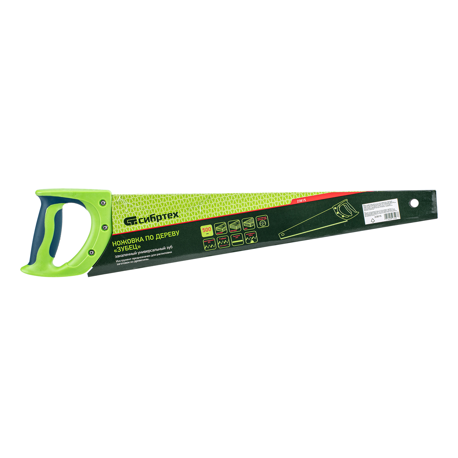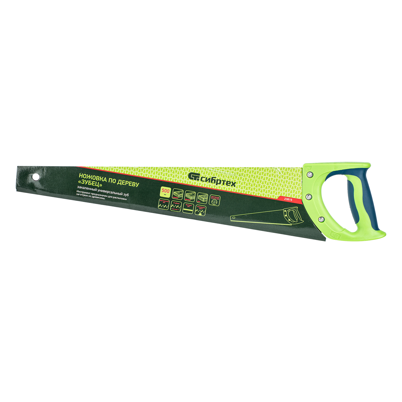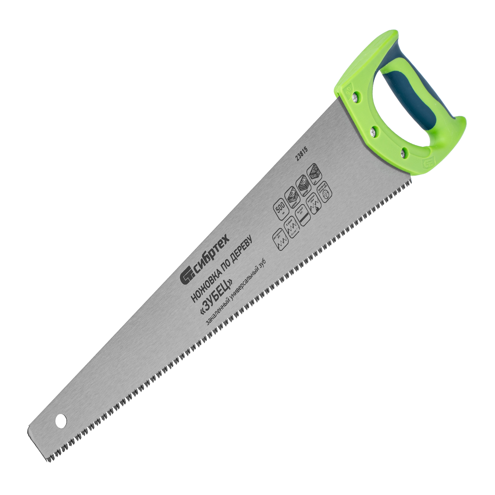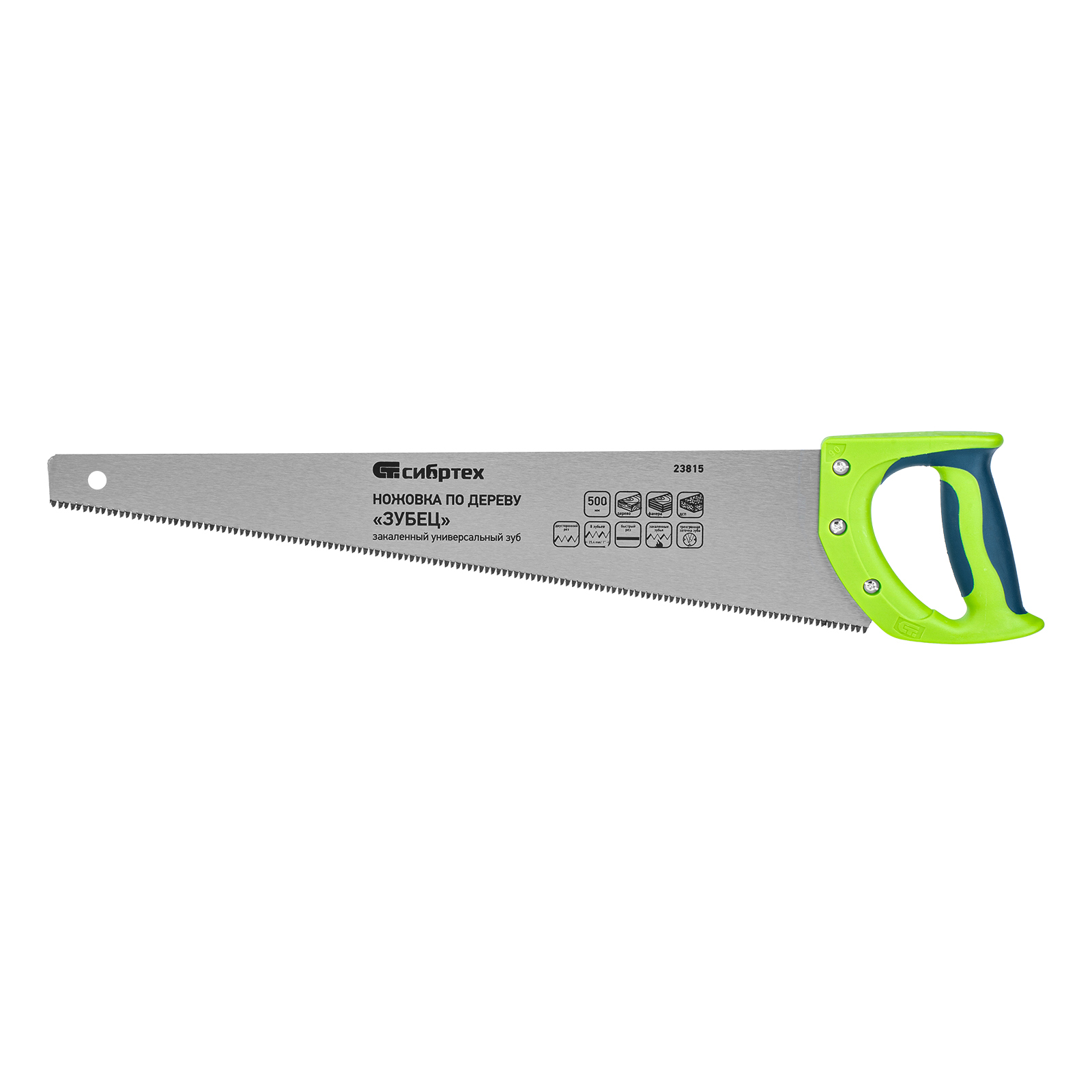 Ножовка Сибртех по дереву «Зубец» 23815 с полотном длиной 500 мм, с калеными зубьями с 3D-заточкой и шагом 7-8 TPI, с двухкомпонентной рукояткой, предназначена для продольной и поперечной распиловки древесины, фанеры и ДСП. Инструмент обладает высокой производительностью благодаря зубьям с универсальным шагом 7-8 TPI и трехгранной заточке. Ножовка используется для выполнения столярных и плотницких работ, будет полезна в быту.