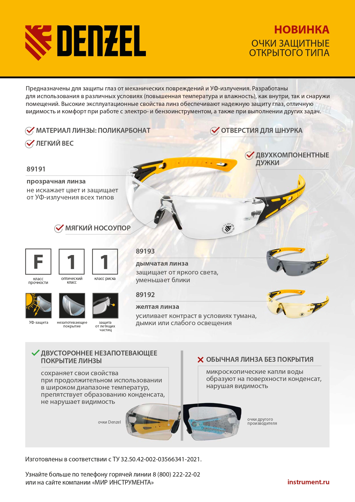 - Отличная видимость – на линзы нанесено двустороннее твердое незапотевающее покрытие в соответствии с ГОСТ 12.4.309.2-2016.