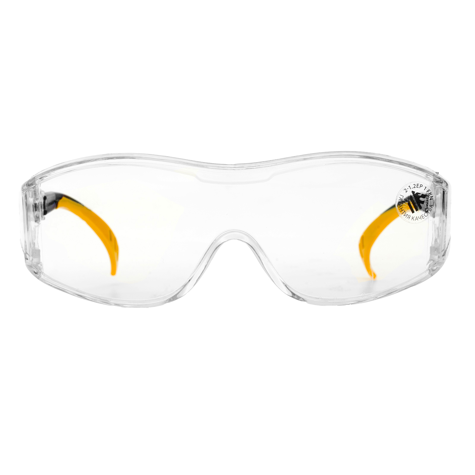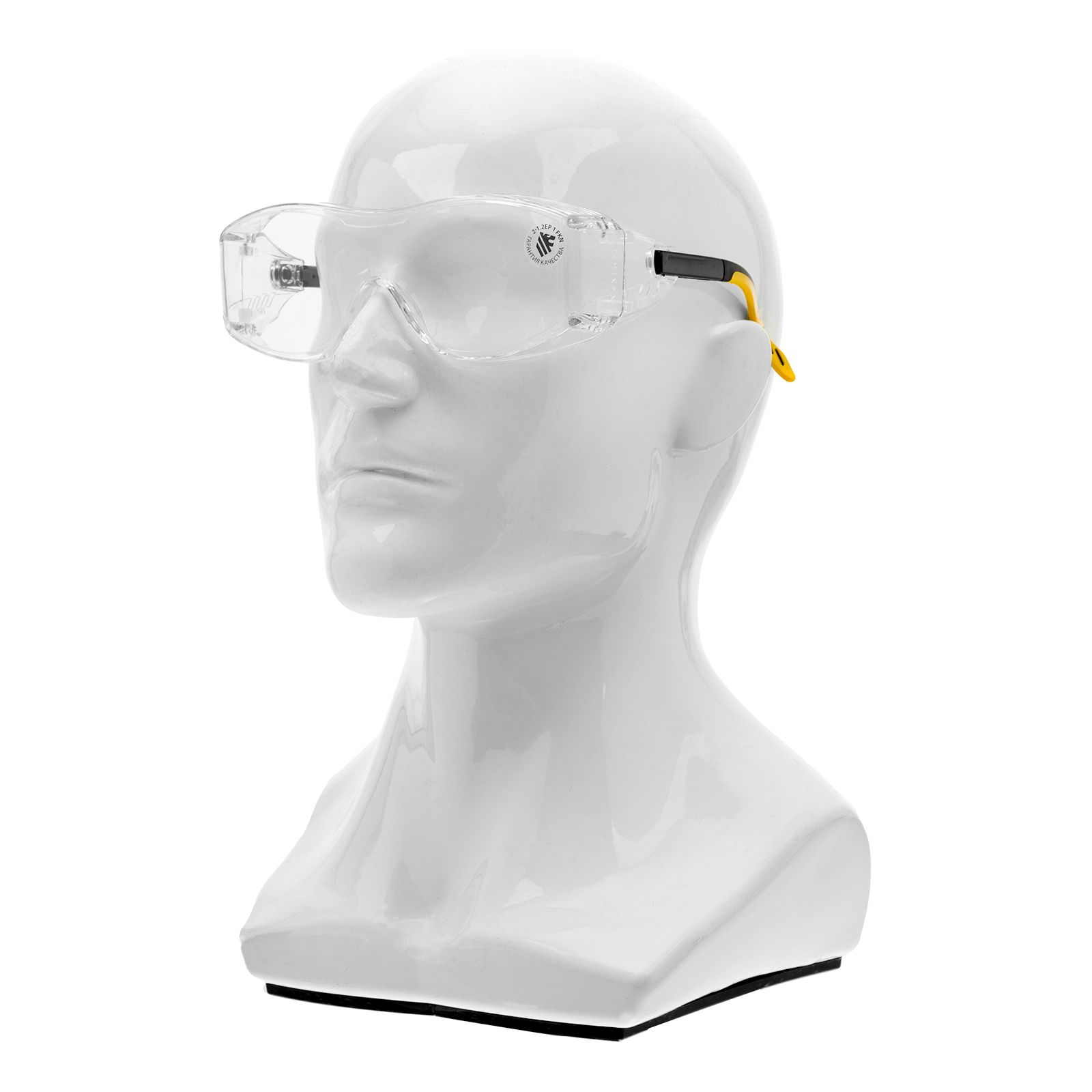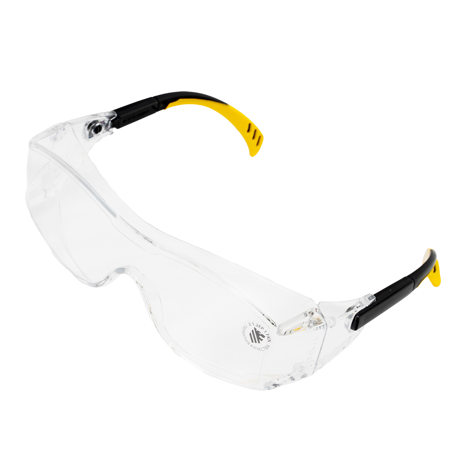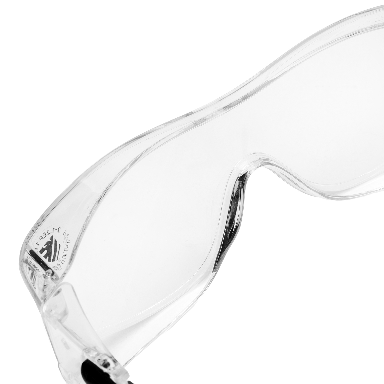- Продуманная конструкция — особая форма линз обеспечивает боковую и надбровную защиту, а также позволяет носить защитные очки вместе с коррригирующими.