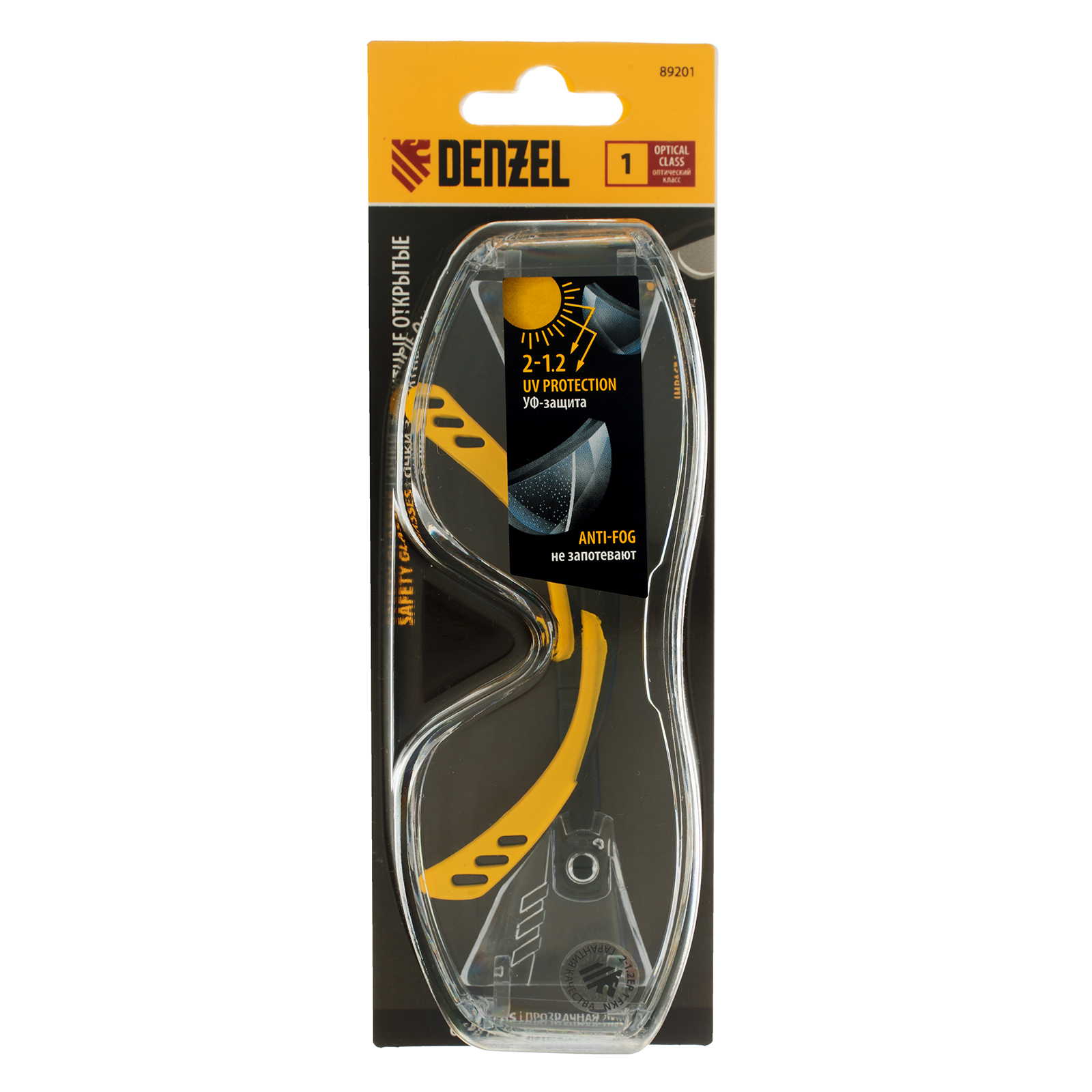 Очки защитные открытые Denzel 89201 с увеличенными поликарбонатными прозрачными линзами и регулируемыми дужками предназначены для защиты глаз от механических повреждений и УФ-излучения. Очкам присвоен класс механической прочности F, они обеспечивают защиту от высокоскоростных частиц с низкоэнергетическим ударом (скорость частиц до 45 м/с). Легкие универсальные очки используются во время работы с электро- и бензоинструментом, на производстве и в быту.