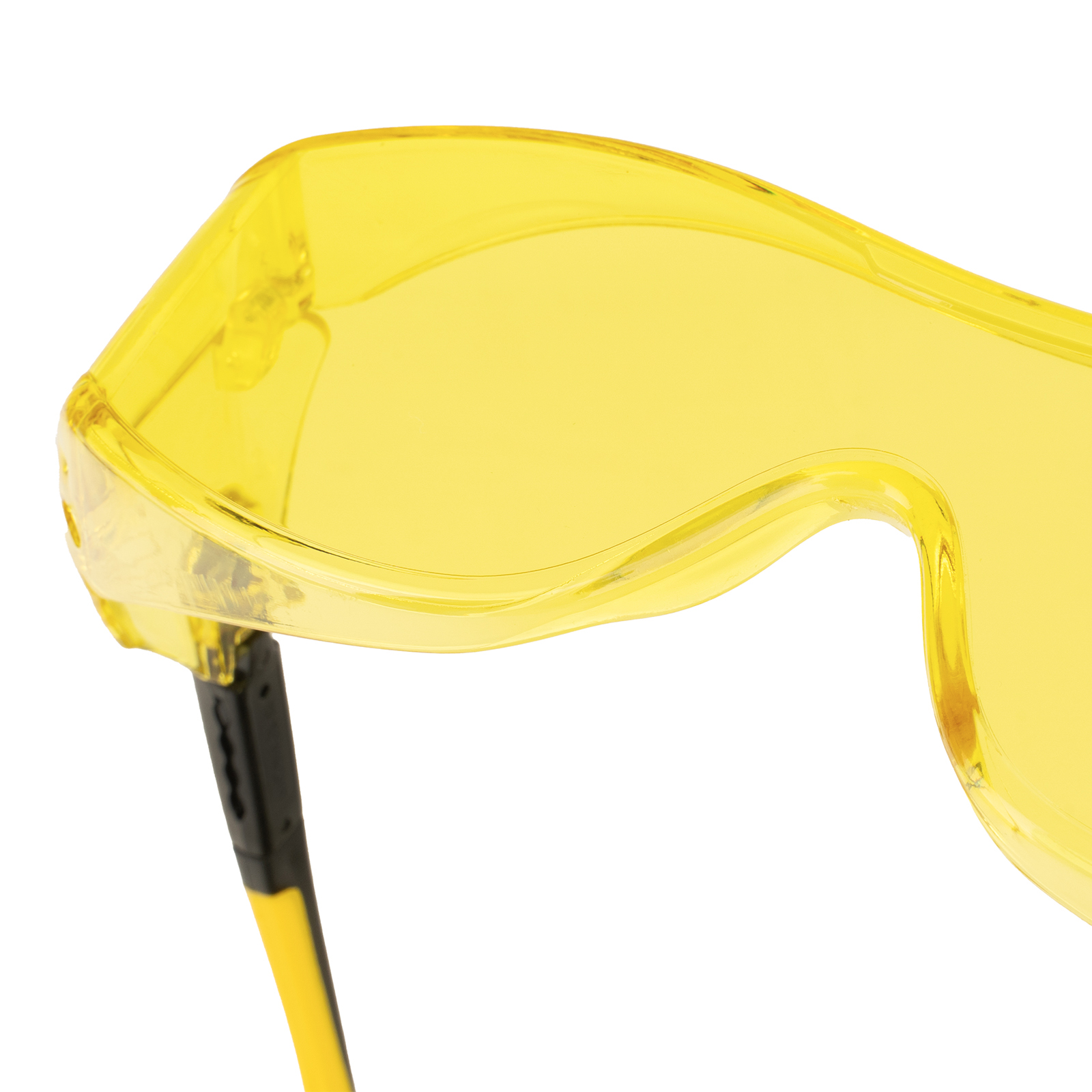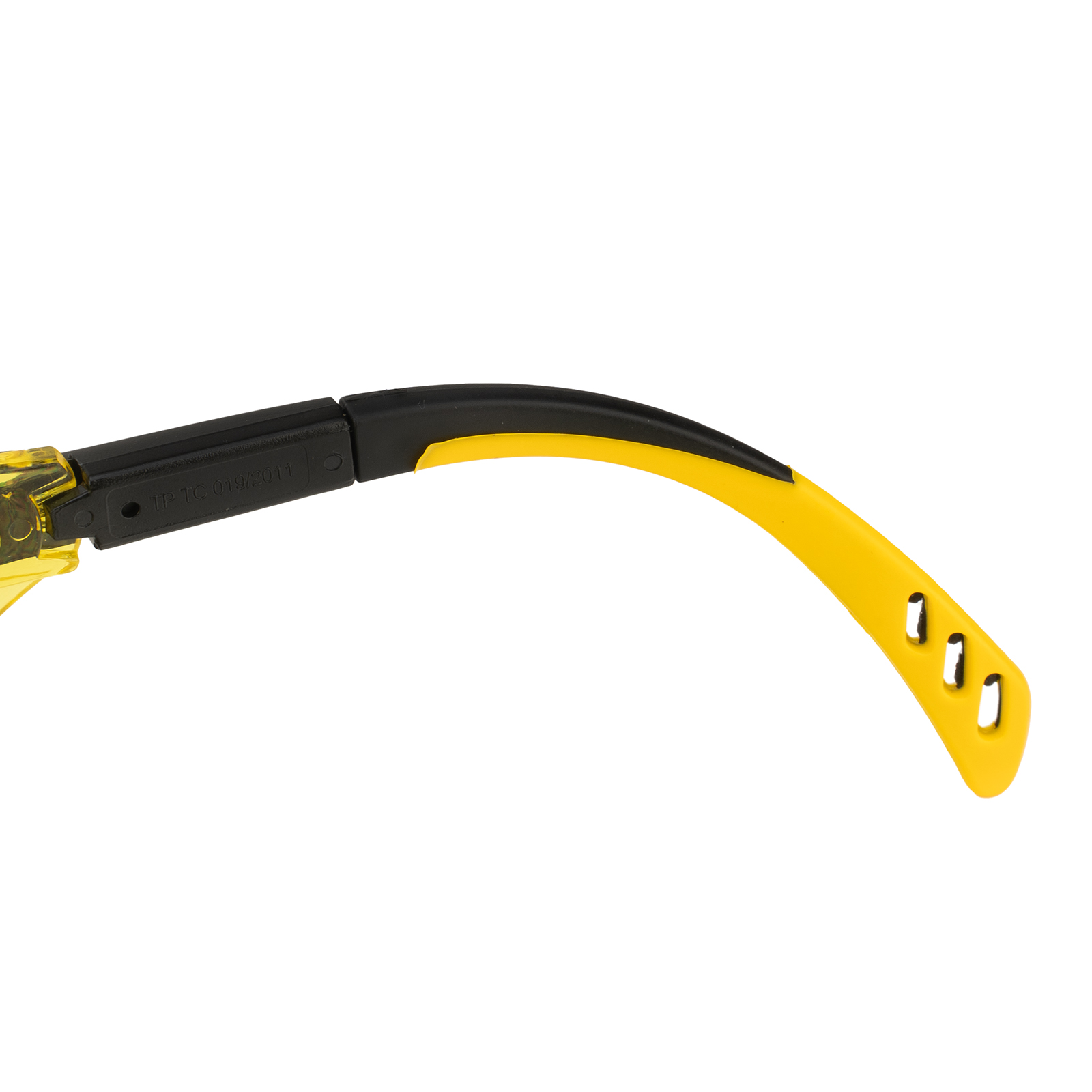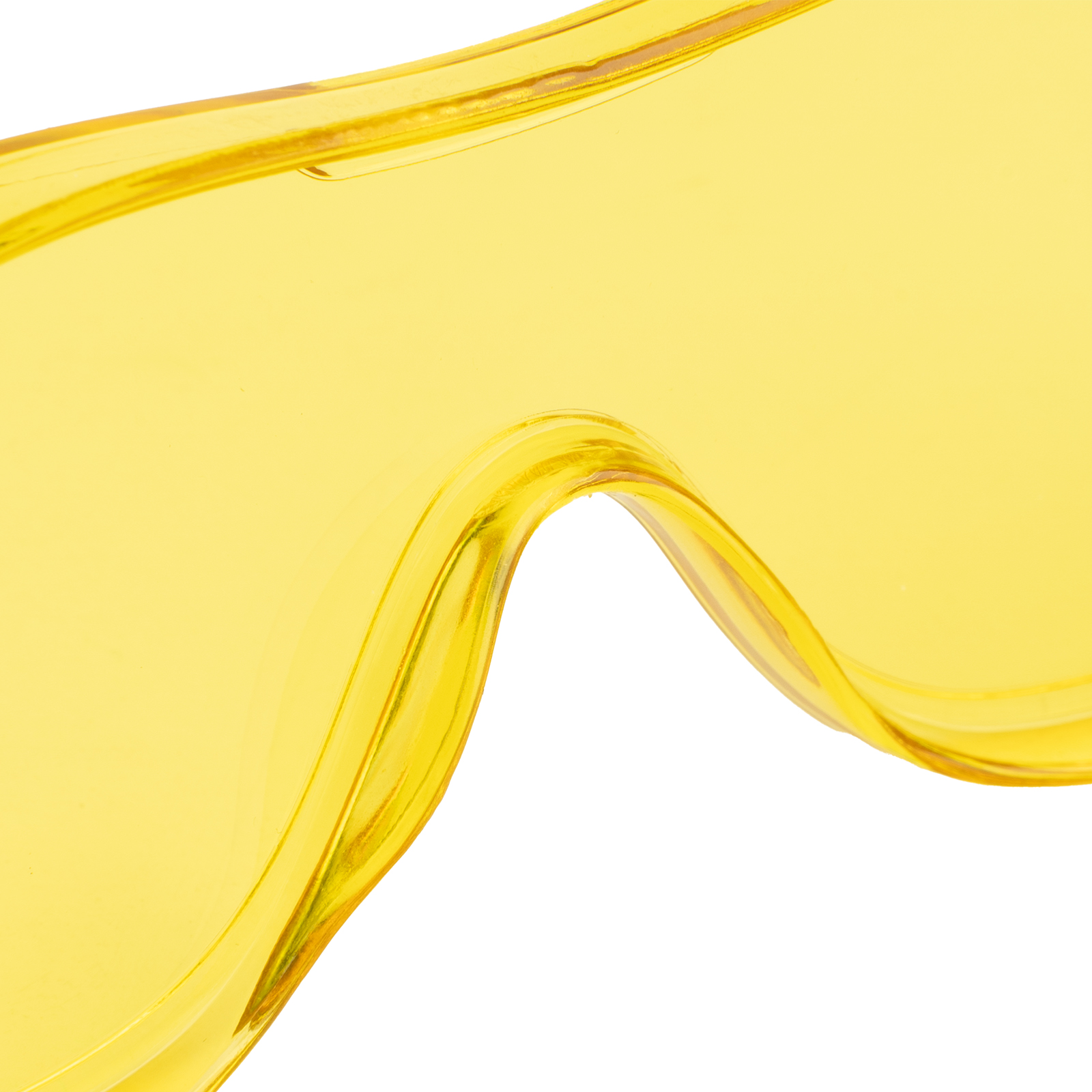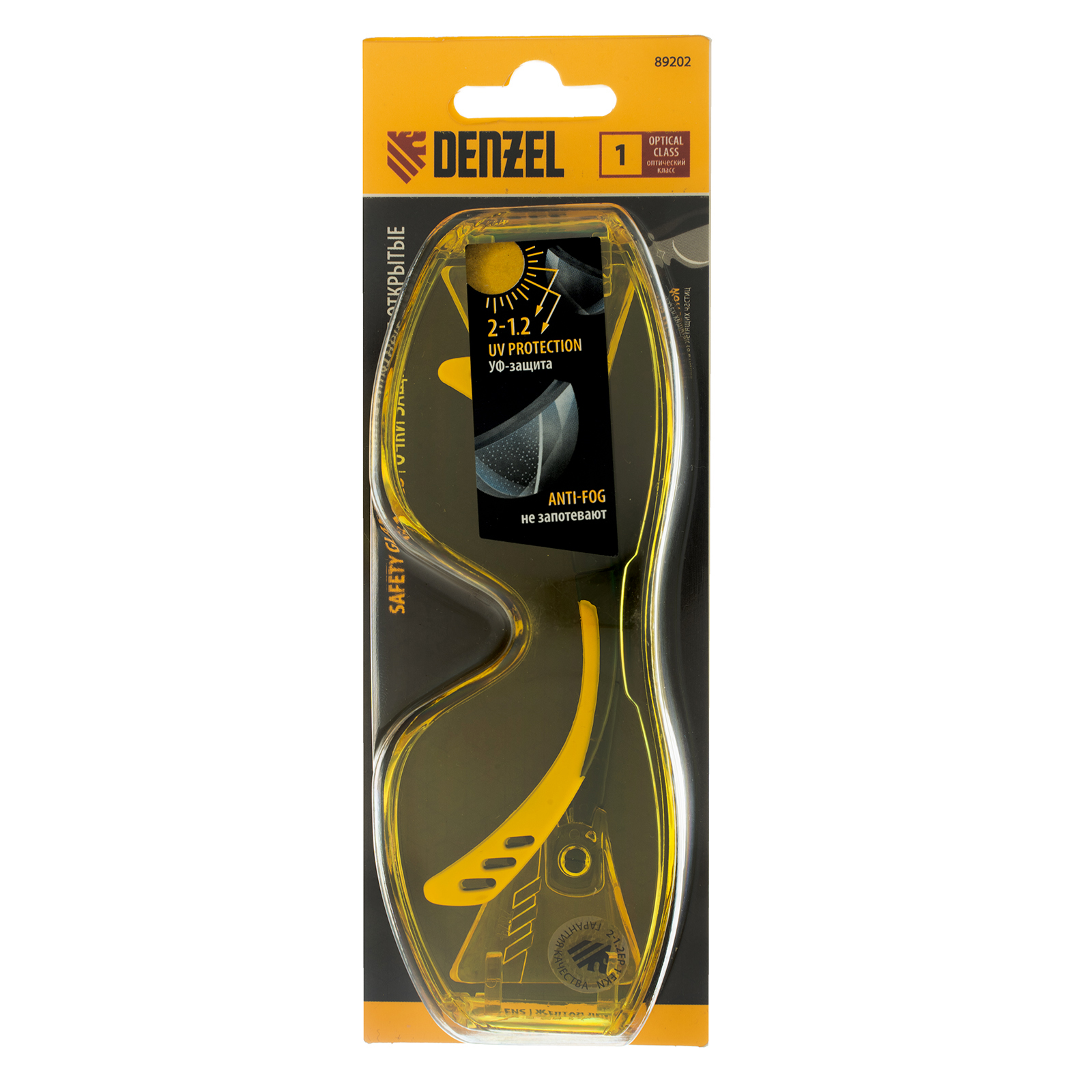 Очки защитные открытые Denzel 89202 с увеличенными поликарбонатными желтыми линзами предназначены для защиты глаз от механических повреждений и УФ-излучения. Очкам присвоен класс механической прочности F, они обеспечивают защиту от высокоскоростных частиц с низкоэнергетическим ударом (скорость частиц до 45 м/с). Легкие универсальные очки используются во время работы с электро- и бензоинструментом, на производстве и в быту.