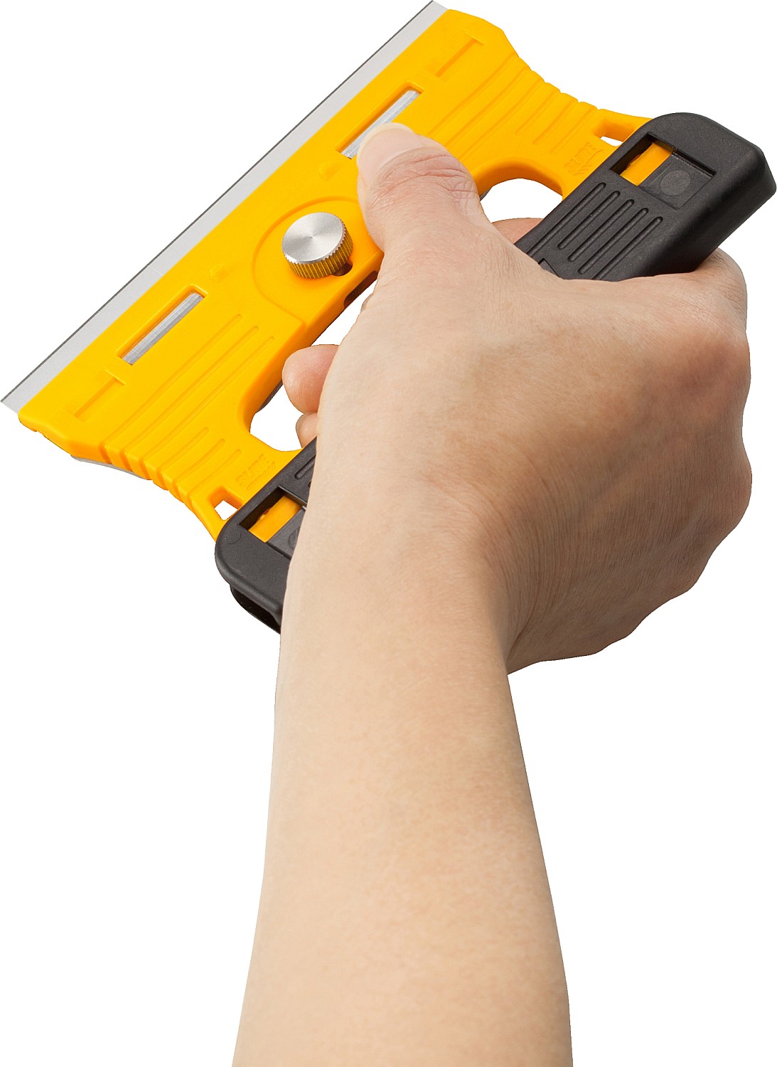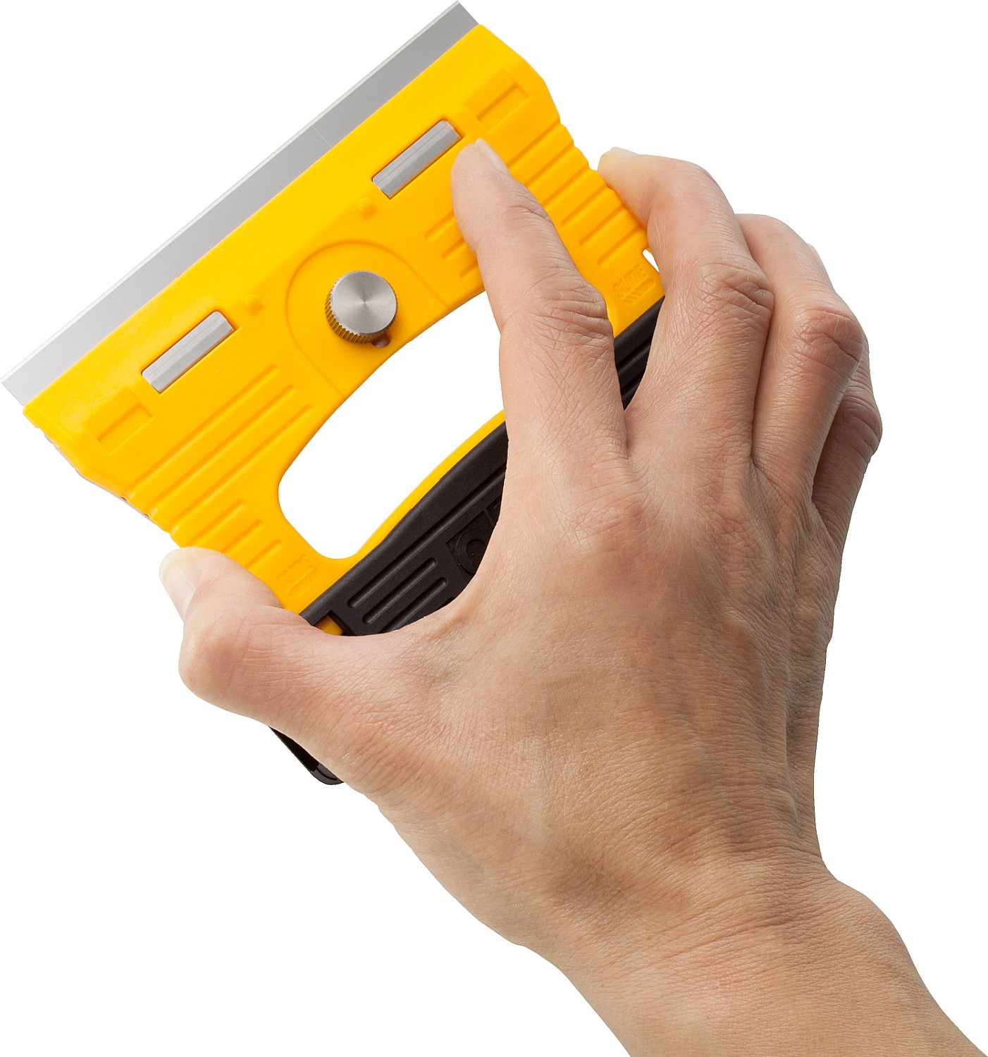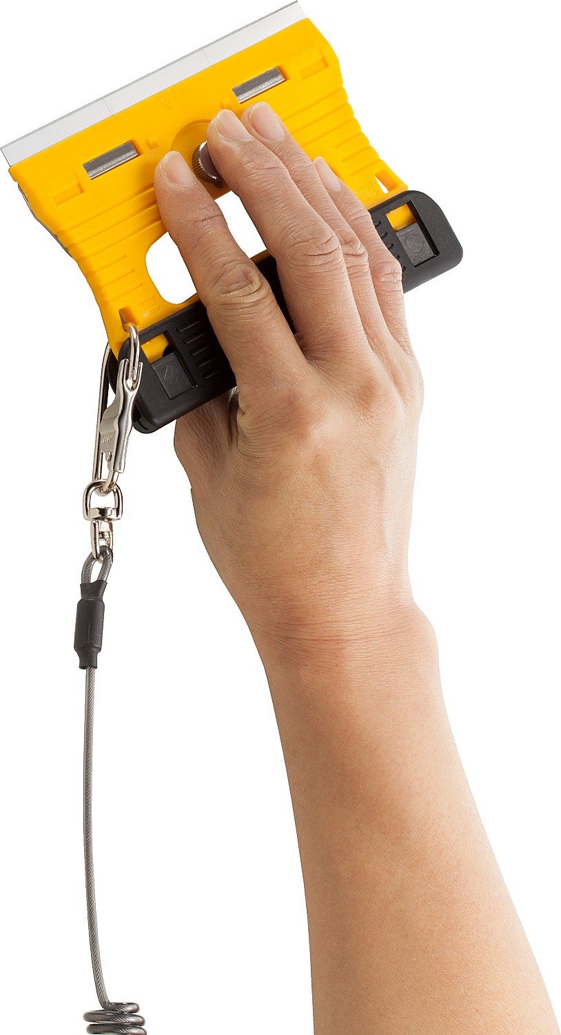 Тонкая конструкция скребка OLFA GSR-1 позволяет наклонять скребок максимально к плоской стеклянной поверхности. Рукоятка и защитная крышка лезвия изготовлены из усиленного фибергласом пластика который известен своей прочностью, жесткостью и устойчивостью к ацетону. Не только лезвие, но и пластина, удерживающая лезвие, и винт изготовлены из нержавеющей стали, поэтому скребок для стекла идеально подходит для работы с водой и жидкостью для мытья посуды.