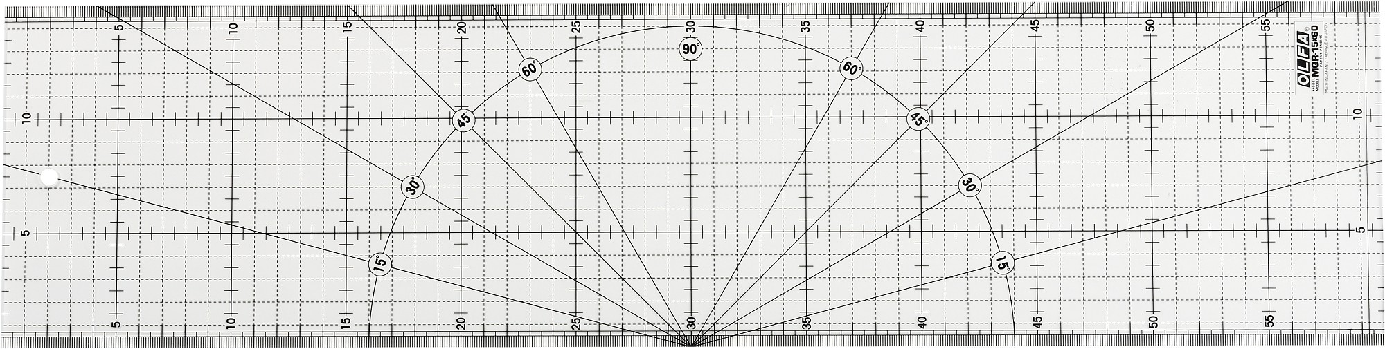 Линейка OLFA MQR-15x60 — это идеальный инструмент для рукоделия и раскроя тканей круговыми ножами, сегментированными ножами и ножами для художественных работ. В отличие от многих акриловых линеек, эта изготовлена из прозрачного морозостойкого акрила и имеет точные углы (15°, 30°, 45°, 60° и 90°) в дополнение к прямым измерениям. На матовую поверхность нанесены черные цифры и разметка, которые хорошо различимы на тканях как темных, так и светлых тонов. Нескользящее покрытие обеспечивает дополнительную точность и безопасность при резке.