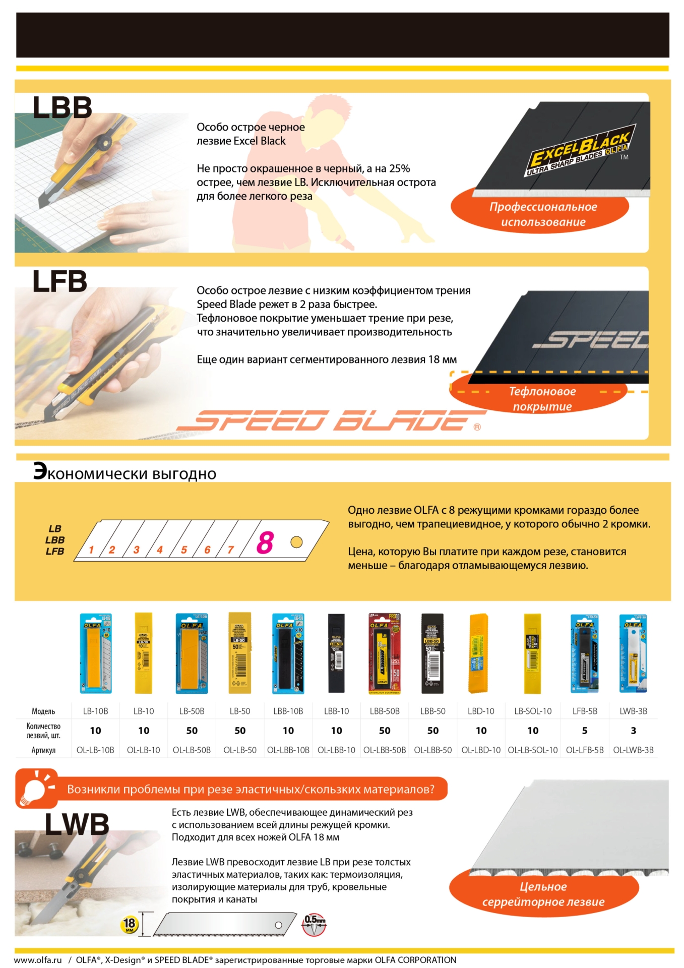 • Особо острое стальное сегментированное лезвие серии «EXCEL BLACK»