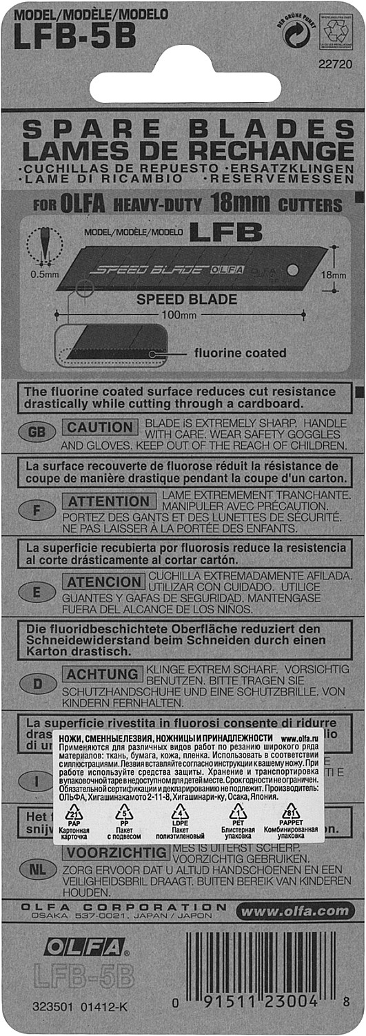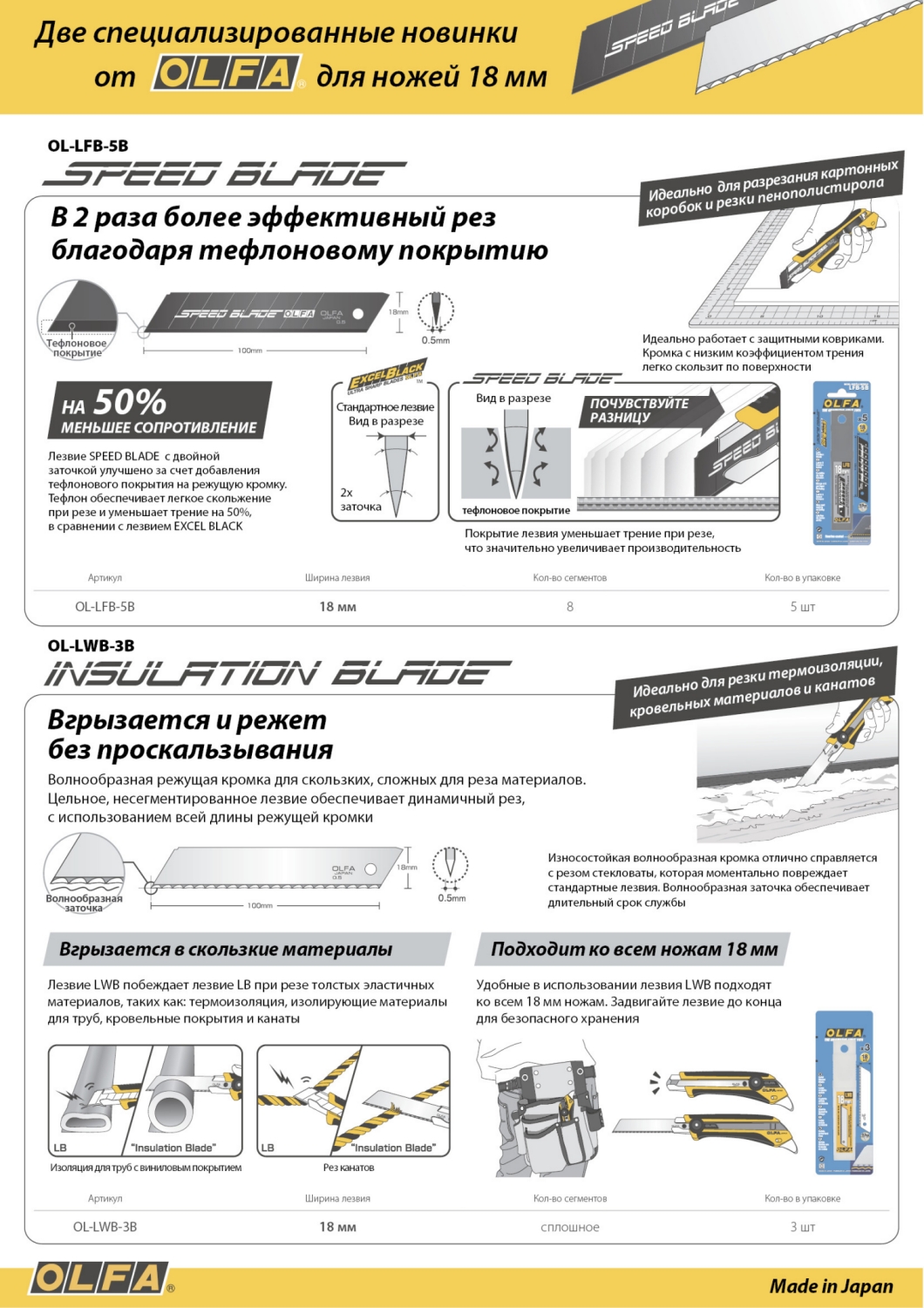 Используются в качестве сменных рабочих элементов в ножах с шириной направляющей пластины 18 мм. Применяются для разрезания картонных коробок и резки пенополистирола
