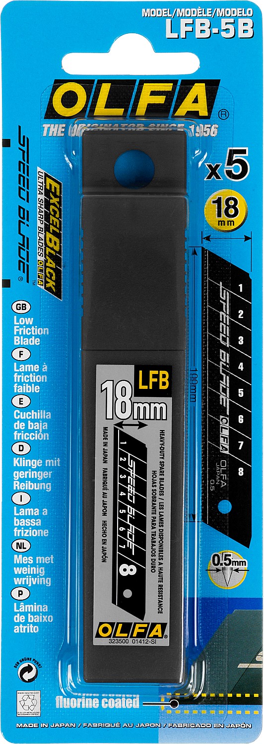 Лезвие SPEED BLADE изготовлено из высококачественной японской инструментальной стали с двойной заточкой и улучшено за счет добавления тефлонового покрытия на режущую кромку. Тефлон обеспечивает легкое скольжение при резе и уменьшает трение на 50% в сравнении с лезвиями серии EXCEL BLACK. Лезвия упакованы в удобный кейс для переноски и хранения.