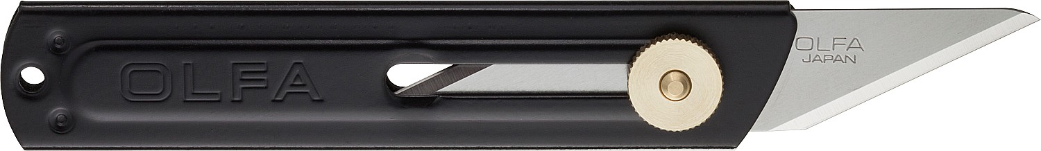 Нож OLFA CK-1 — универсальный инструмент для резки бумаги, картона, резьбы по дереву и выполнения других хозяйственных работ. Усиленный резак со сменным убирающимся лезвием имеет металлический корпус черного цвета и винтовой фиксатор для крепления лезвия. Форма двустороннего лезвия СКВ-1 разработана специально для OLFA CK-1. Размер лезвия составляет 18 х 89 мм, толщина 1.0 мм и длина режущей части 30 мм. Отверстие в корпусе служит для подвешивания ножа на шнурок. Незаменим в домашнем хозяйстве, в мастерской, на рыбалке, в туристических походах и для автомобилистов.