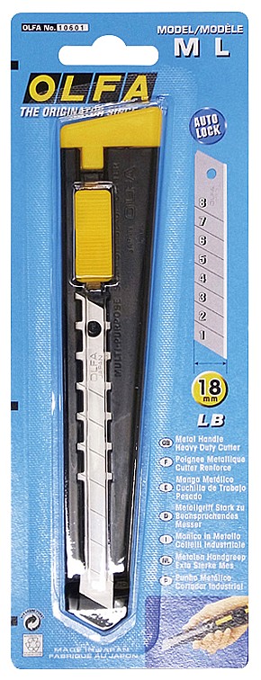 Если Вам нравится OLFA OL-180, но нужна большая сила реза, тогда универсальный нож с металлической ручкой OLFA ML шириной 18 мм — то, что вам нужно. Отличается тонким профилем, что позволяет носить его всегда с собой в кармане или сумке для инструментов. Стальная рукоятка устойчива к коррозии и химическим веществам. Предусмотрена автоматическая фиксация лезвия.