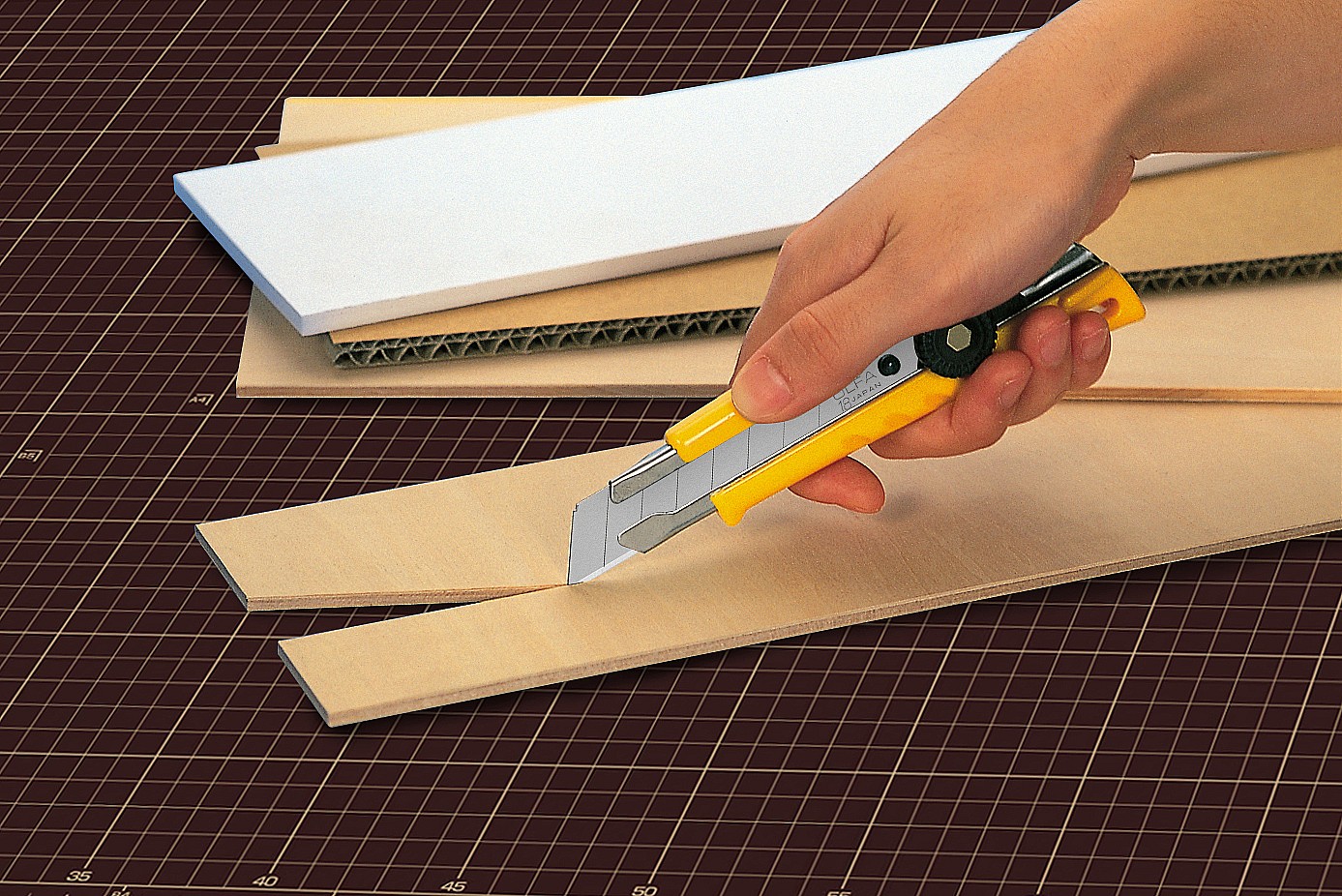 Применяется для разрезания бумаги, картона, обоев, кожи и веревок.