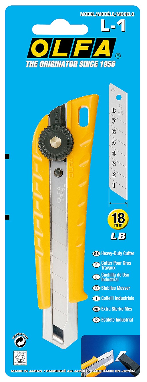 Используйте универсальный нож OLFA L-1 с храповым механизмом для любых строительных или промышленных задач. Классический нож с эргономичной и прочной рукояткой из ABS-пластика подойдет для любых работ. Рукоятка удобно лежит в руке.
