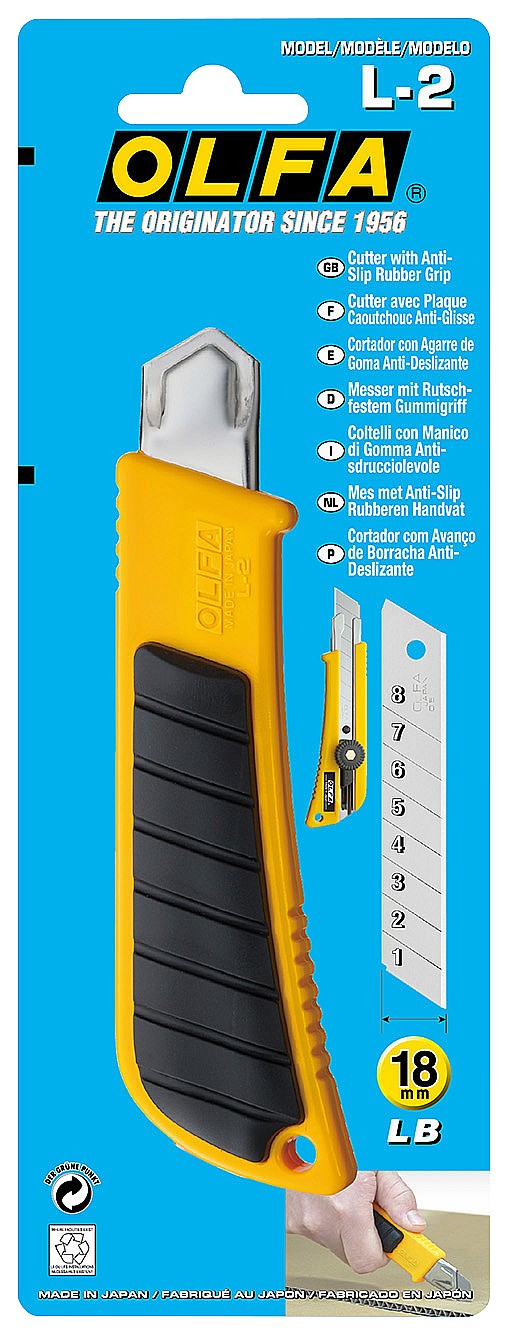 Если Вам важен комфортный и надежный хват, выбирайте универсальный нож OLFA L-2. Он удобно лежит в руке за счет прочной рукоятки из ABS-пластика с противоскользящей резиновой накладкой на тыльной стороне для безопасного использования.