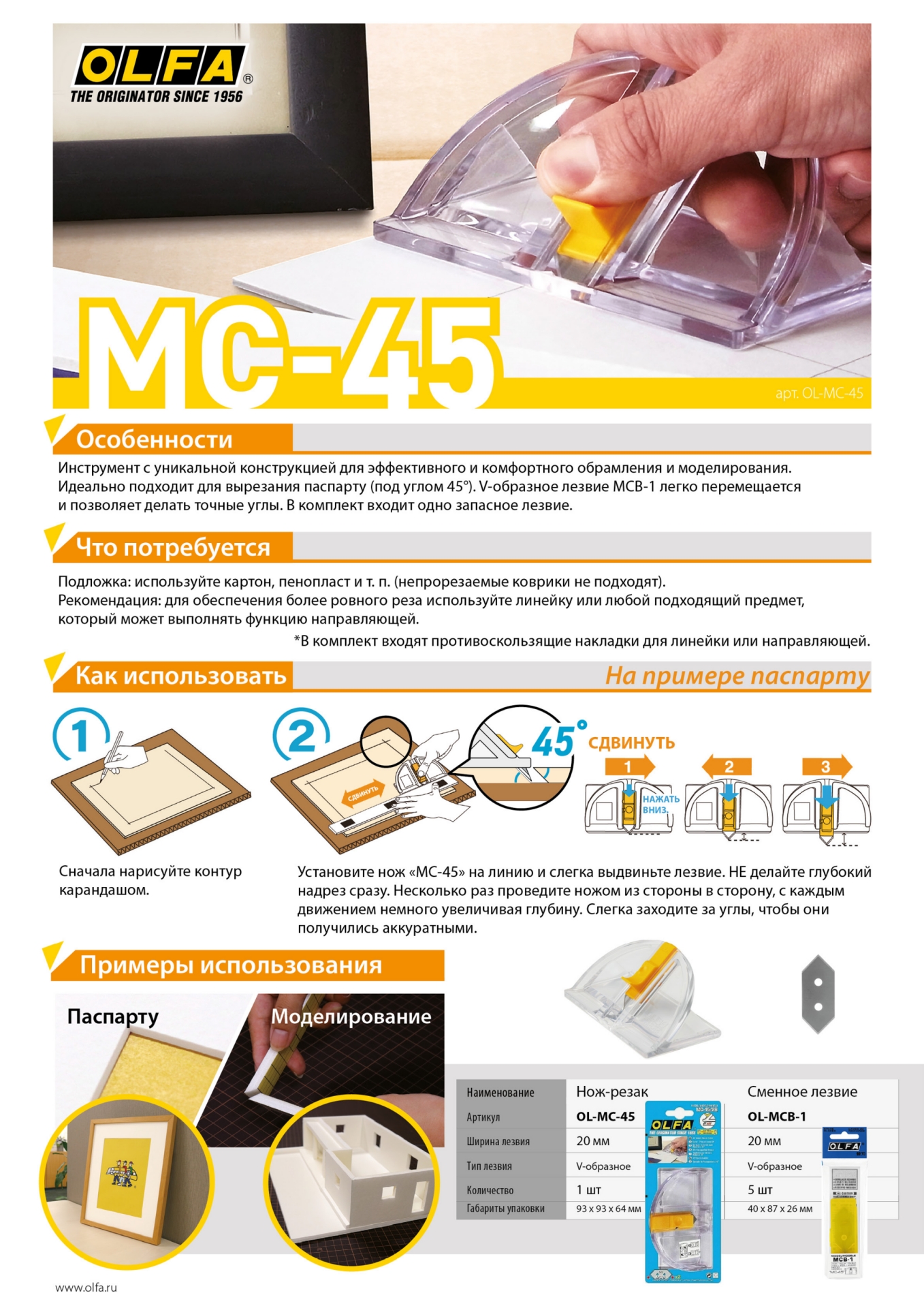 - Подходит для ножей OLFA MC-45/2B