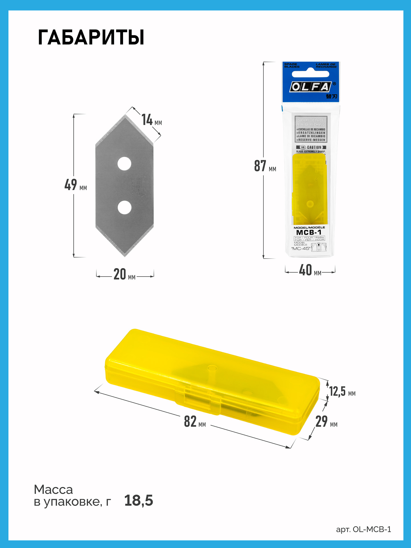 Лезвия MCB-1 изготовлены из высококачественной японской инструментальной стали и профессионально заточены для обеспечения превосходной остроты и непревзойденной долговечности режущей кромки. Благодаря V-образной форме лезвия легко перемещаются и позволяют делать точные углы. На лезвии предусмотрено два отверстия для замены сегмента.