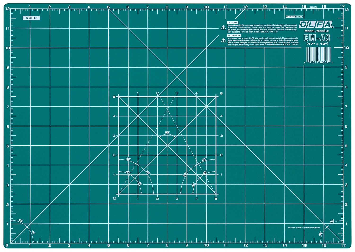 Универсальный двусторонний коврик OLFA CM-A3 — отличное решение для повышения эффективности реза. Приспособление имеет метрическую сетку с одной стороны и дюймовую с другой для удобства в работе. Предназначен для использования со стандартными, художественными, дисковыми и специальными ножами OLFA. Коврик необходимо хранить на ровной поверхности для предотвращения деформации.