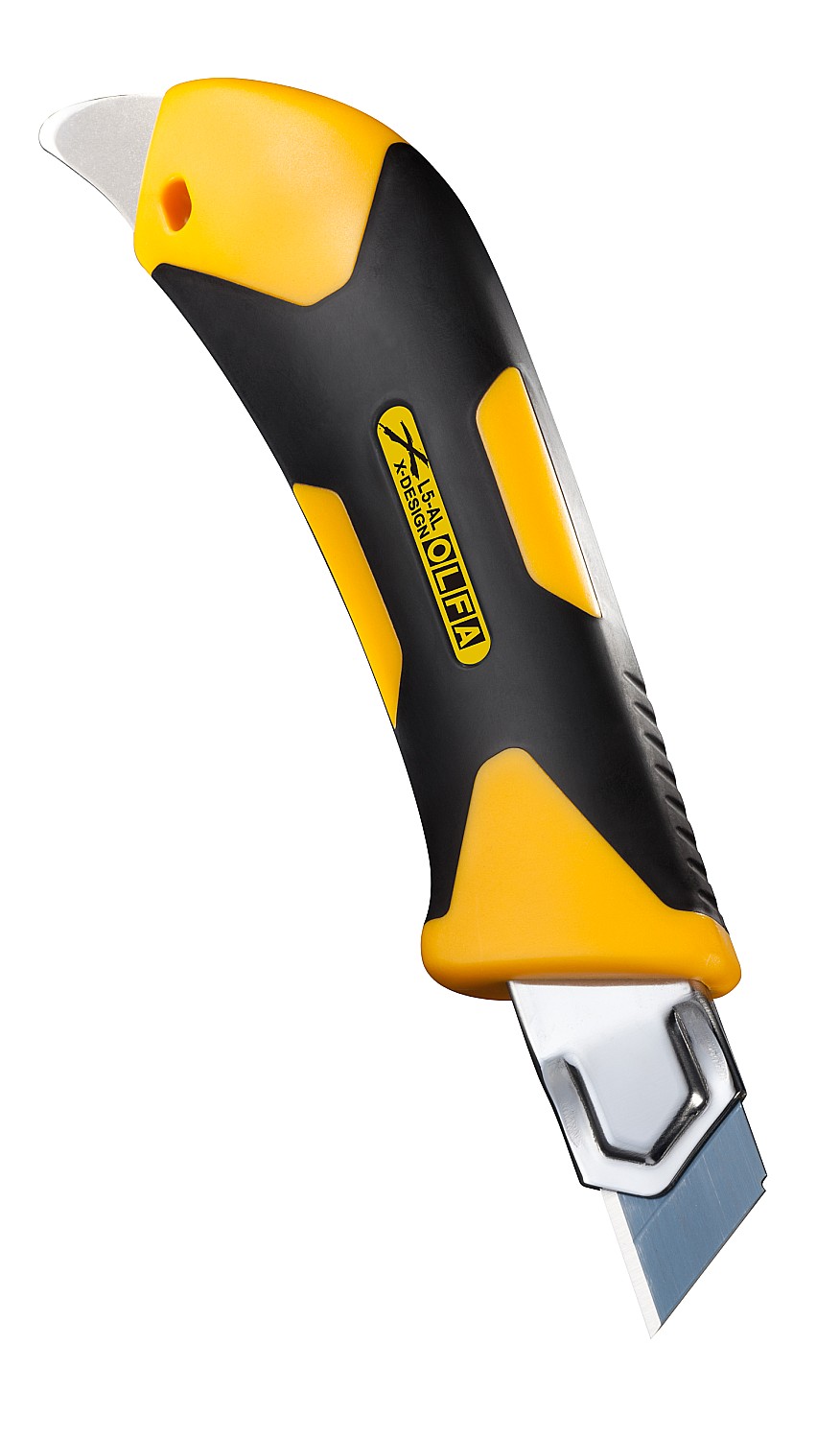 Универсальный нож OLFA L5-AL серии X-design ComfortGrip, с храповым механизмом и металлическим выступом. Легкий и простой в использовании оснащен эргономичной противоскользящей рукояткой устойчивой к кислотам, ацетону и маслам, усиленной фиберглассом. Эта комбинация обеспечивает удобный, надежный захват при выполнении самых сложных работ. Поставляется с черным лезвием LBB шириной 18 мм, которое на 25% острее стандартных лезвий OLFA. Просто отломите один из восьми сегментов, если лезвие затупилось. Полная замена происходит быстро и без дополнительных инструментов. Многоцелевой металлический выступ делает нож еще более практичным и удобным. Используйте выступ для любых задач, где нельзя использовать лезвие: для удаления герметика, открывания банок или снятия выпускных пластин. Это полезное дополнение гарантирует, что острые как бритва лезвия OLFA останутся чистыми и невредимыми.