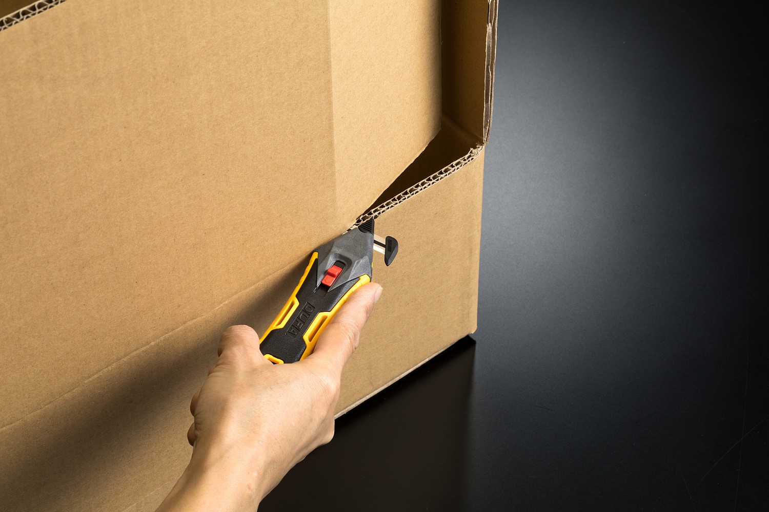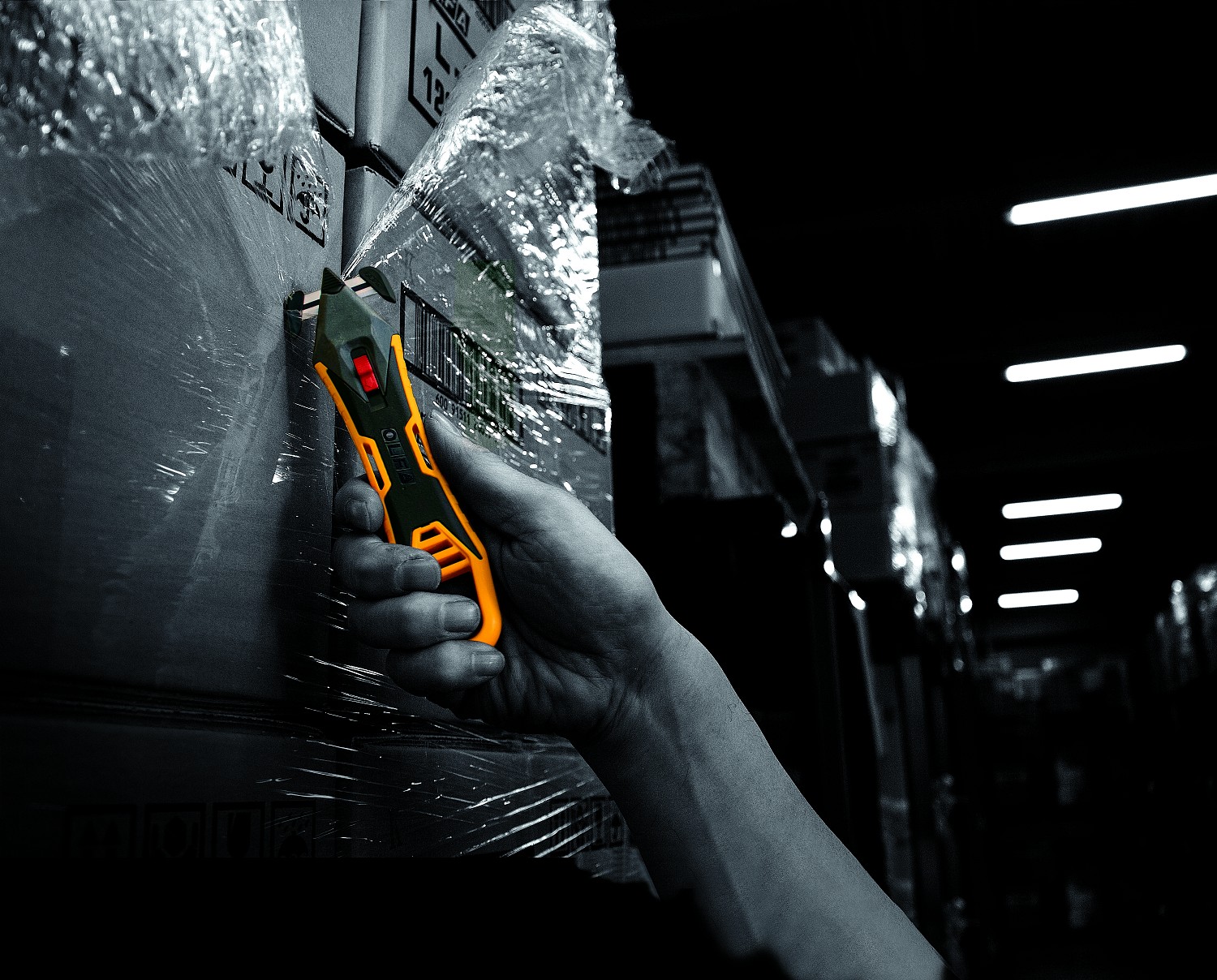Используется для удобного открывания картонных коробок, резки стретч-пленки, пластиковых лент, скотча.