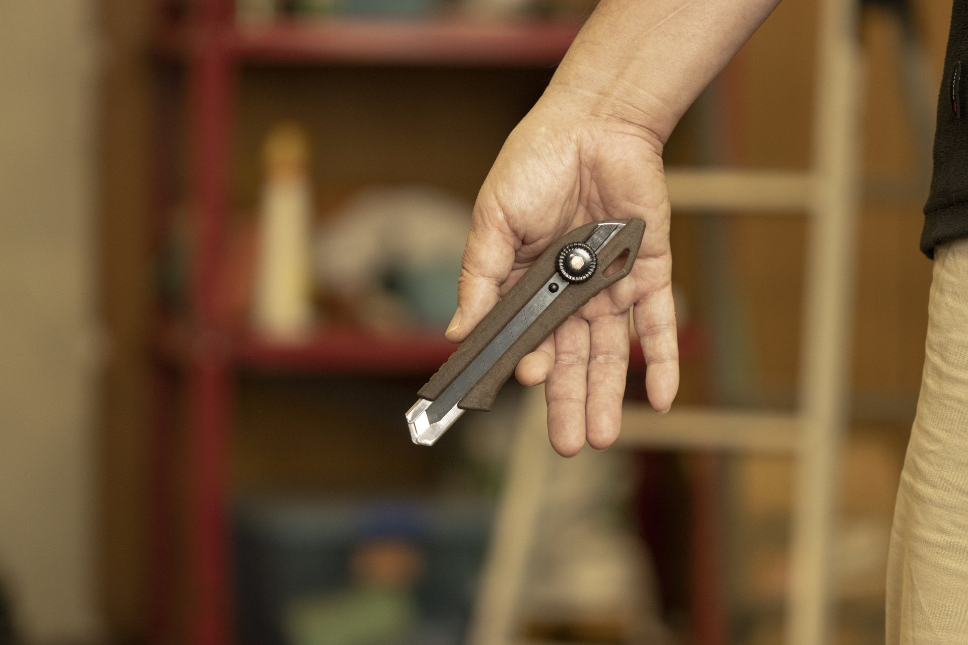 Применяется при резке резины, фанеры, кожи, кровельных и прочих жестких материалов в том числе масляными и потными руками.