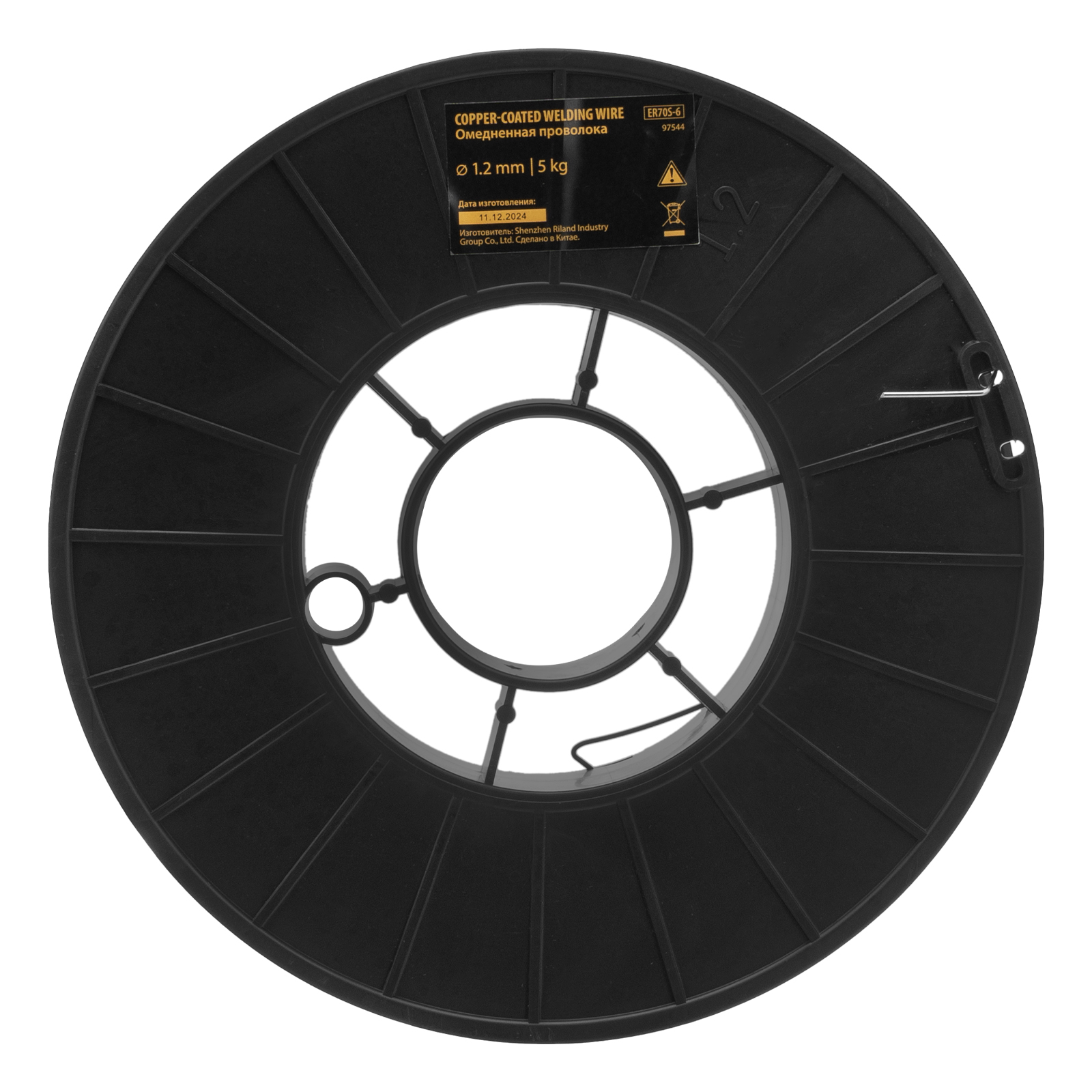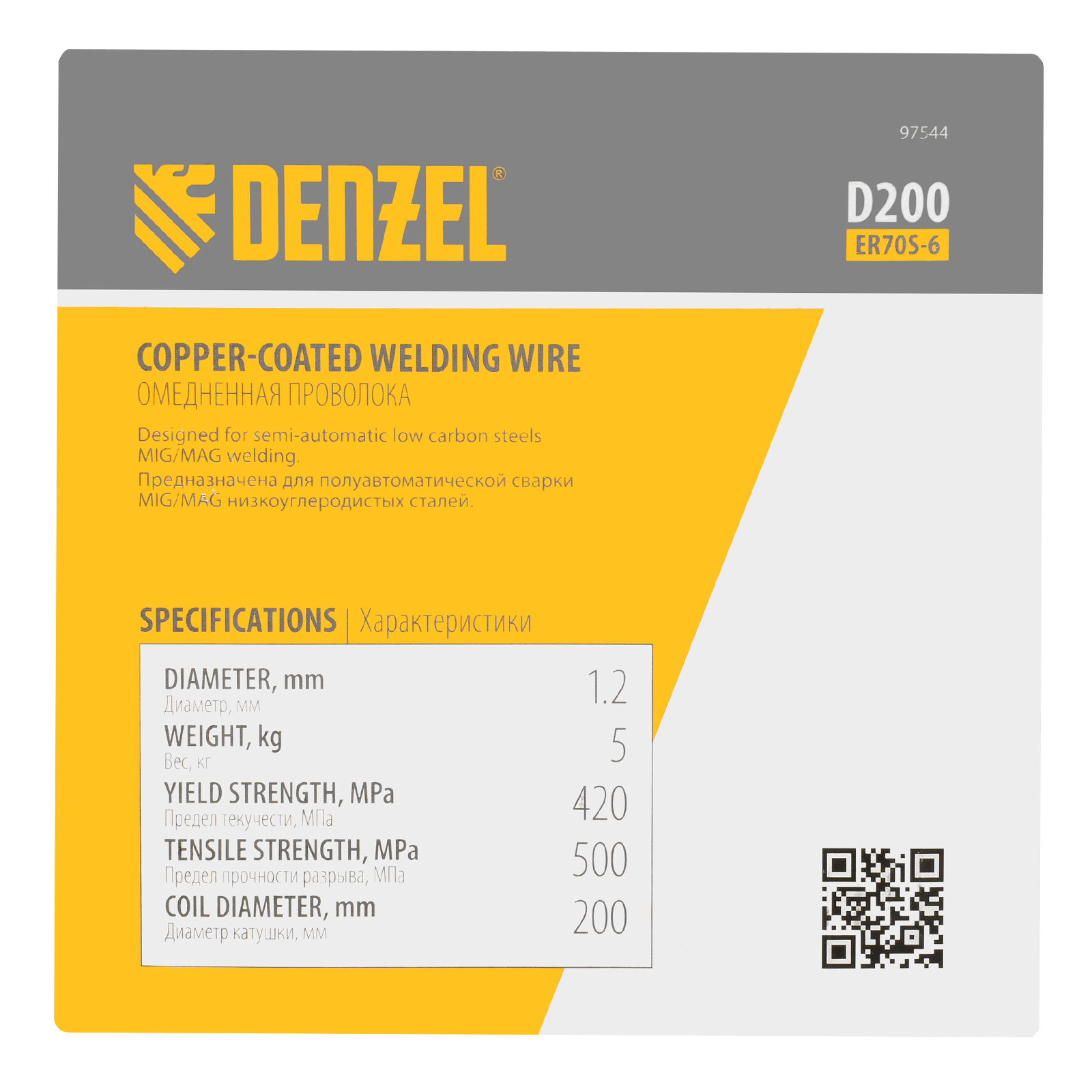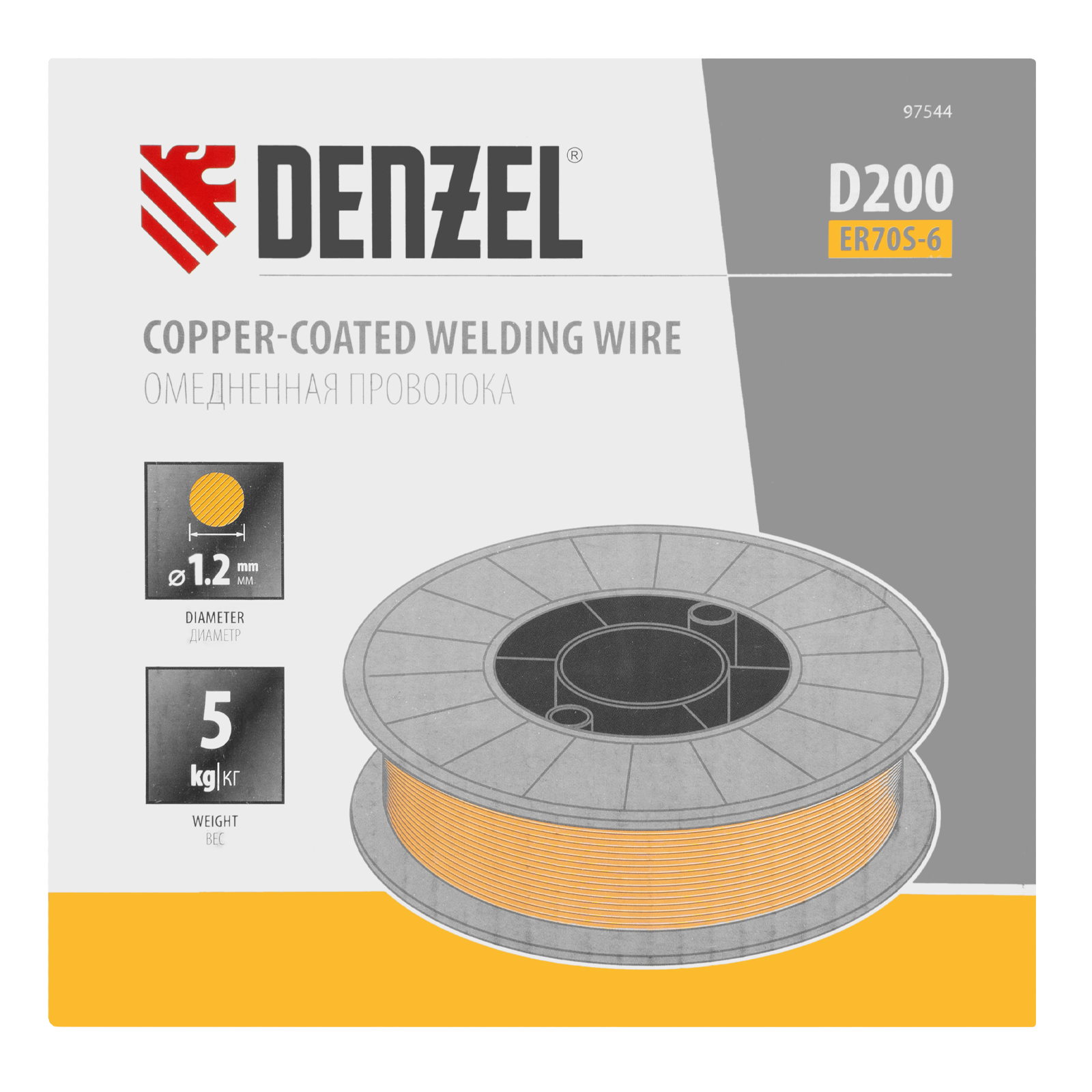 Омедненная проволока Denzel ER70S-6 97544 диаметром 1,2 мм и весом 5 кг, на катушке типа D200, предназначена для полуавтоматической сварки MIG/MAG углеродистых и низколегированных сталей в среде защитных газов. Необходима профессиональным сварщикам, пригодится также частному мастеру.