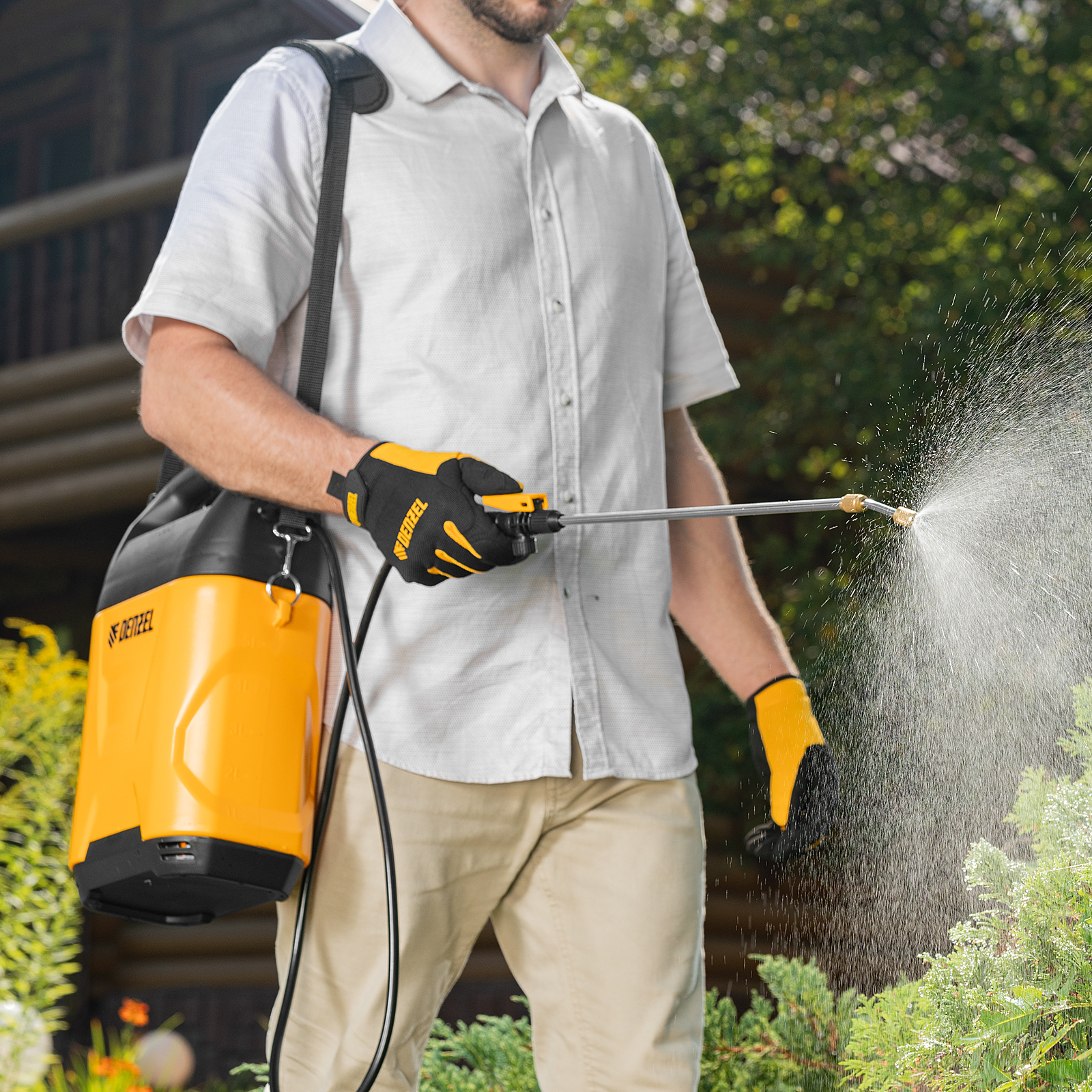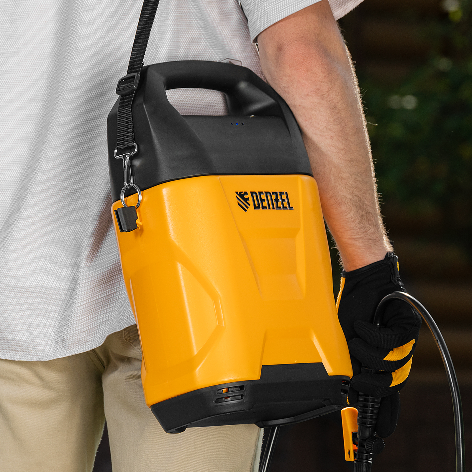 Комфортная работа — опрыскиватель весит 1,5 кг и снабжен удобным плечевым ремнем с вентилируемой подушкой, что позволяет долго работать без ощущения усталости.