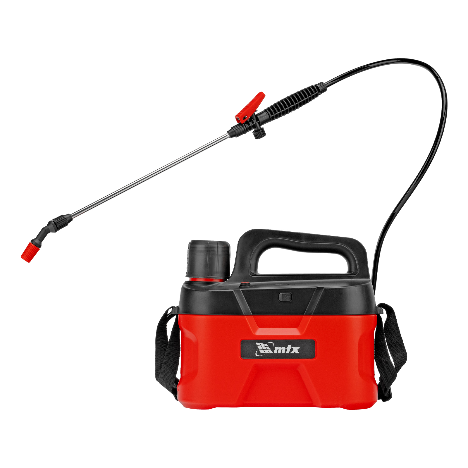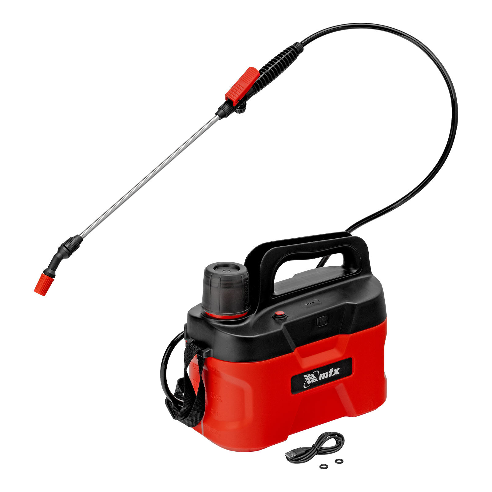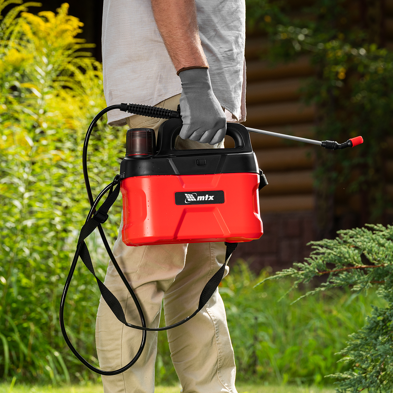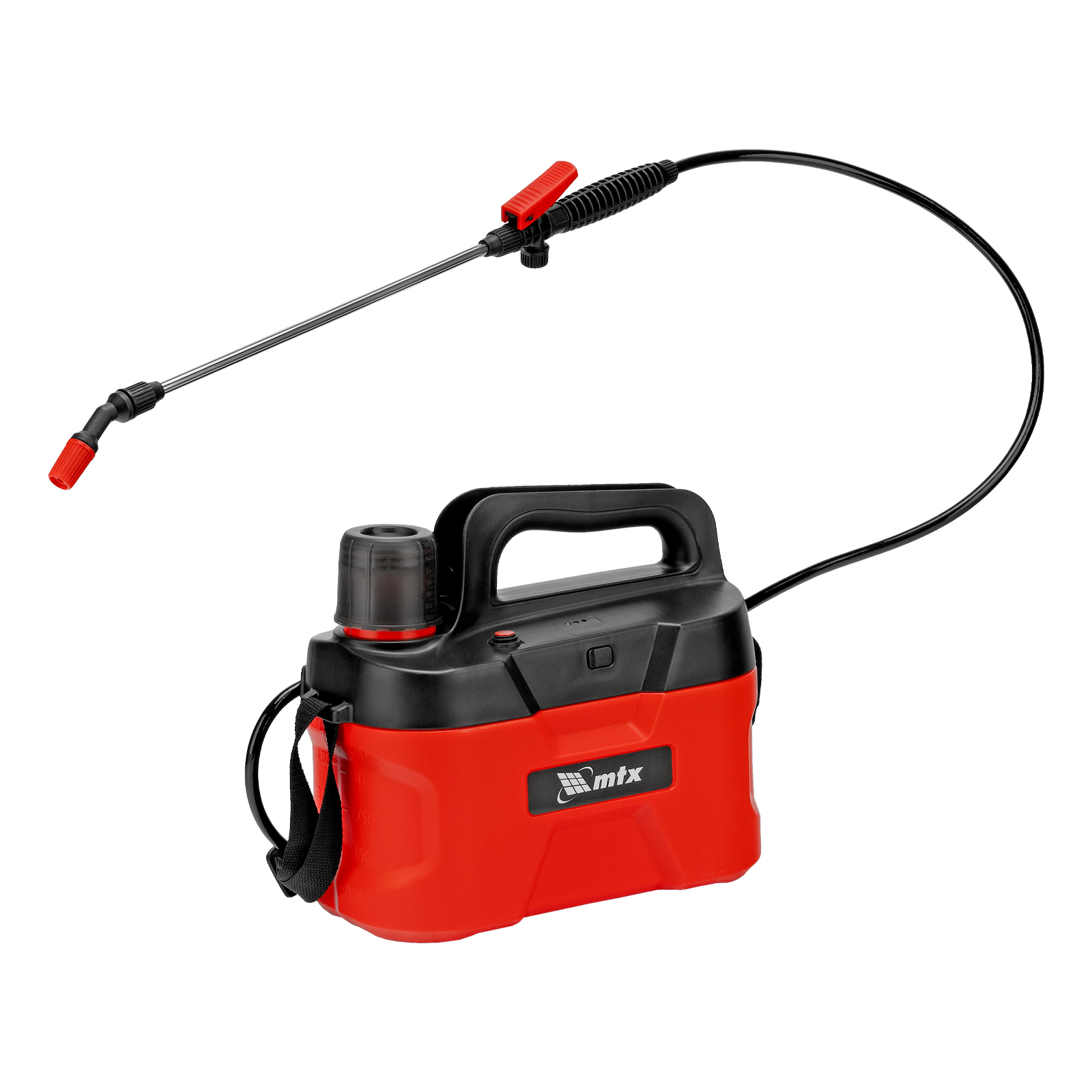 Аккумуляторный опрыскиватель MTX M-5LI 64794 с баком объемом 5 л и Li-Ion батареей на 3,7 В, емкостью 2,5 Ач, экономит время и силы пользователя во время ухода за растениями и уборки. Используется для распыления инсектицидных жидкостей, а также мытья окон, стен и дорожек. Длина штанги составляет 400 мм, а максимальная дальность распыления — 4 м, что позволяет быстро обрабатывать участки большой площади и труднодоступные места. Опрыскиватель будет полезен на дачном участке и на производстве.