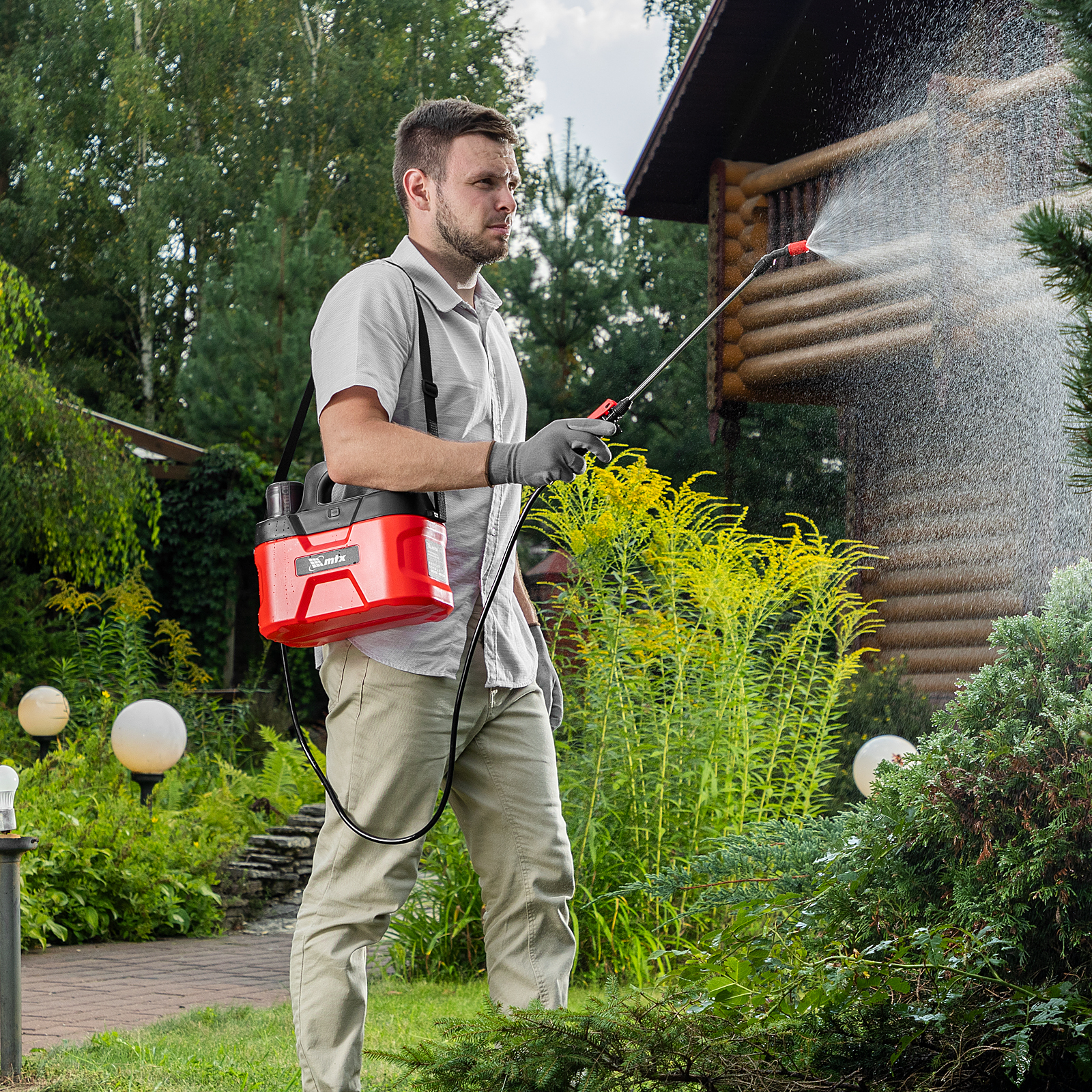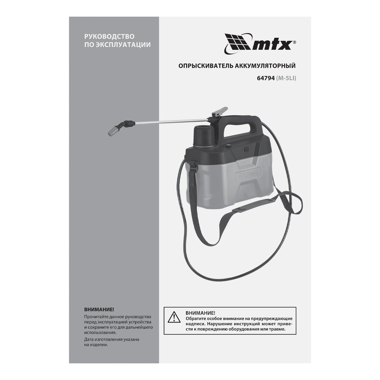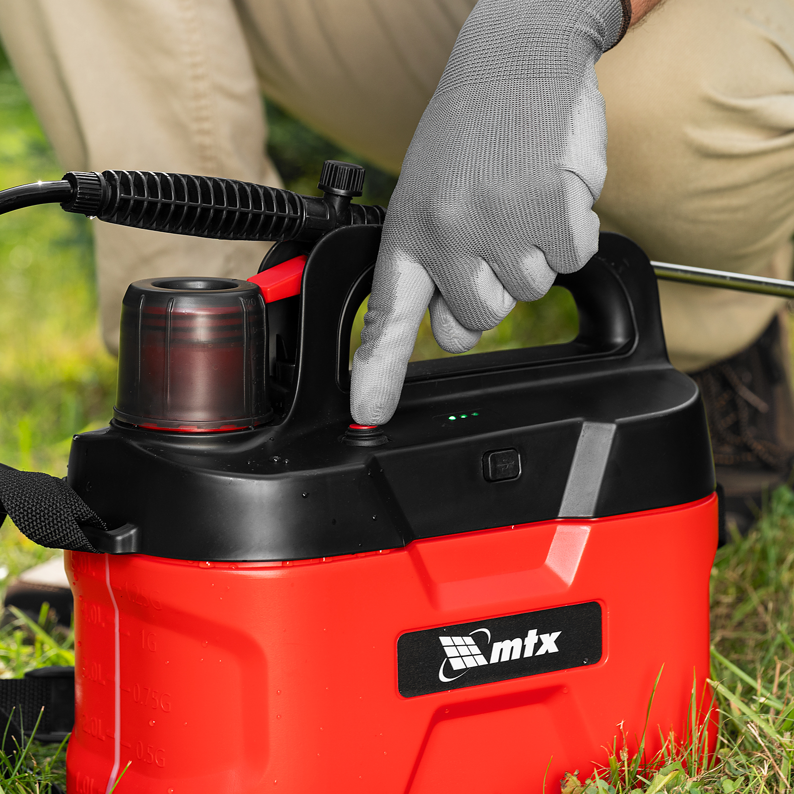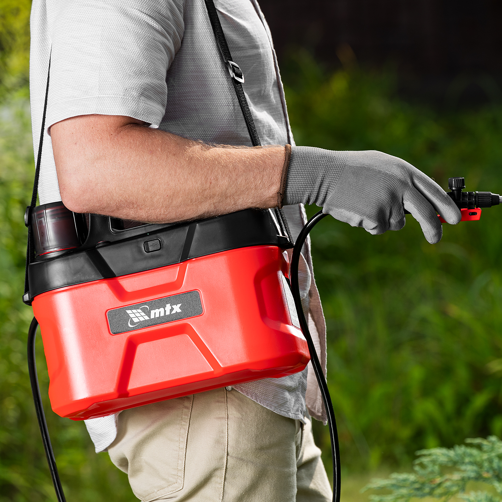 Аккумуляторный опрыскиватель MTX M-5LI 64794 с баком объемом 5 л и Li-Ion батареей на 3,7 В, емкостью 2,5 Ач, экономит время и силы пользователя во время ухода за растениями и уборки. Используется для распыления инсектицидных жидкостей, а также мытья окон, стен и дорожек. Длина штанги составляет 400 мм, а максимальная дальность распыления — 4 м, что позволяет быстро обрабатывать участки большой площади и труднодоступные места. Опрыскиватель будет полезен на дачном участке и на производстве.