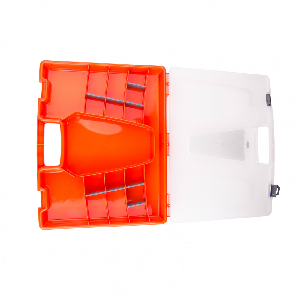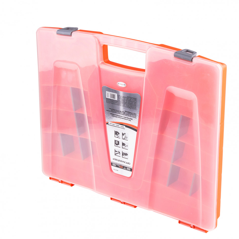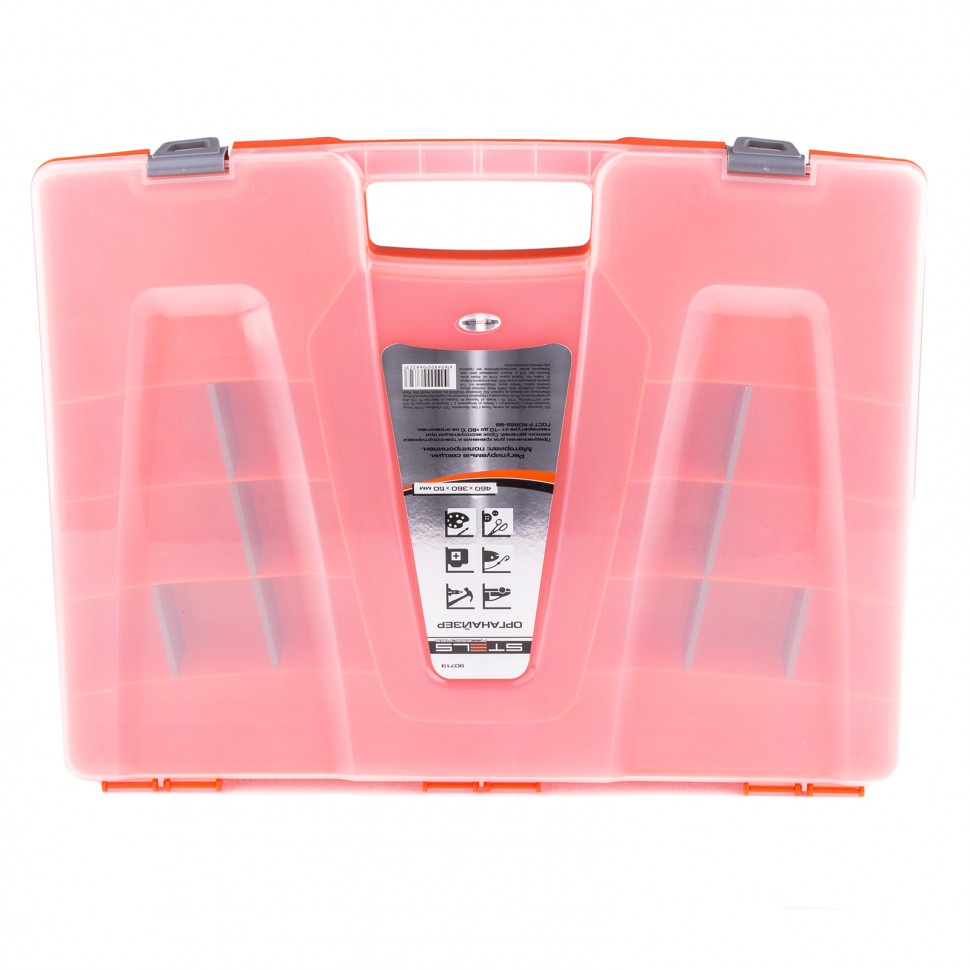 Органайзер из пластика Stels 90719 размером 460 х 360 х 50 мм позволяет обустроить практичное место хранения мелких деталей. Также его удобно брать с собой на выездные работы. Органайзер помогает поддерживать порядок в мастерской и предотвращает потерю деталей.
