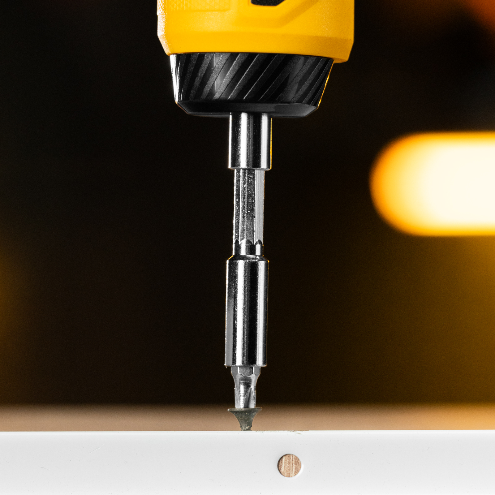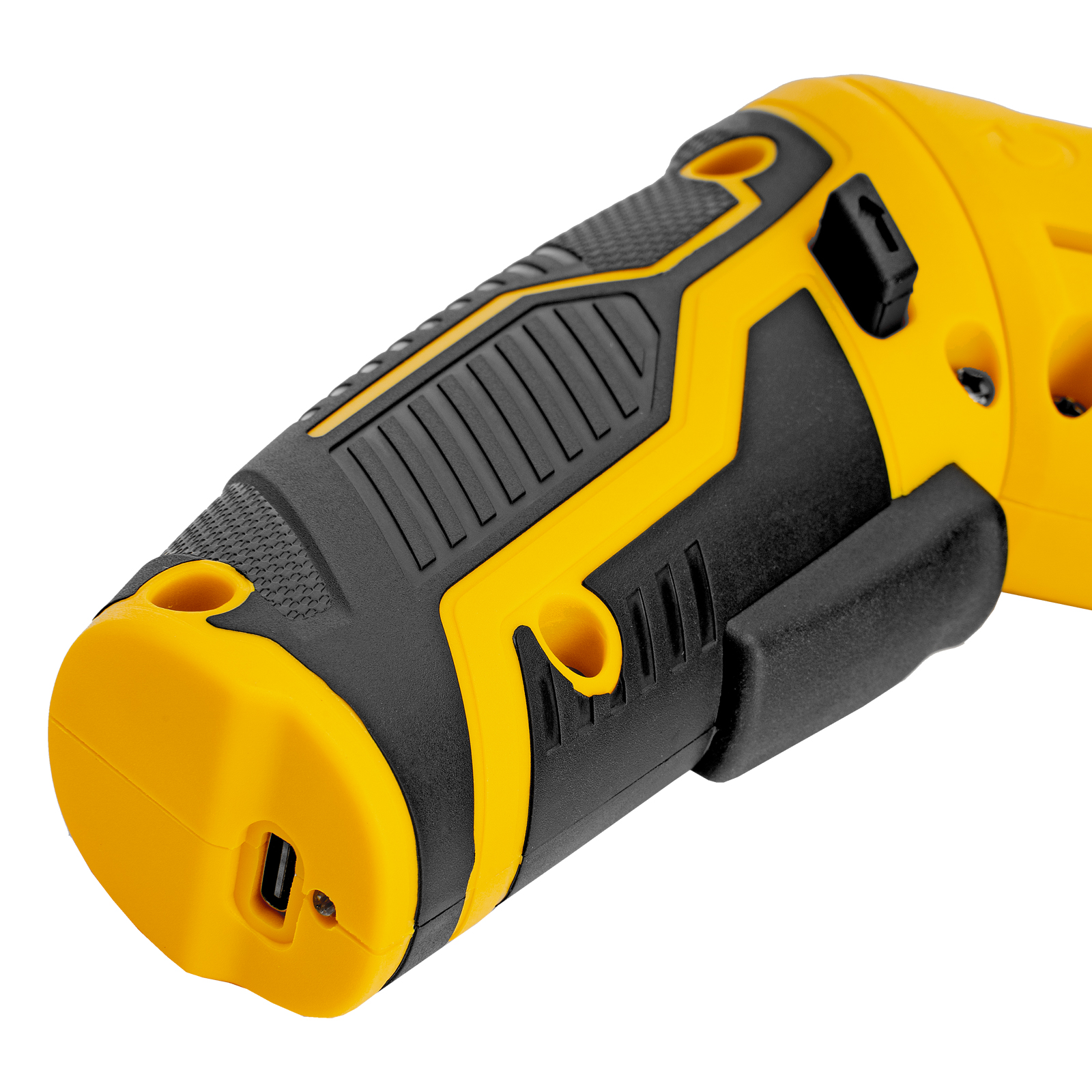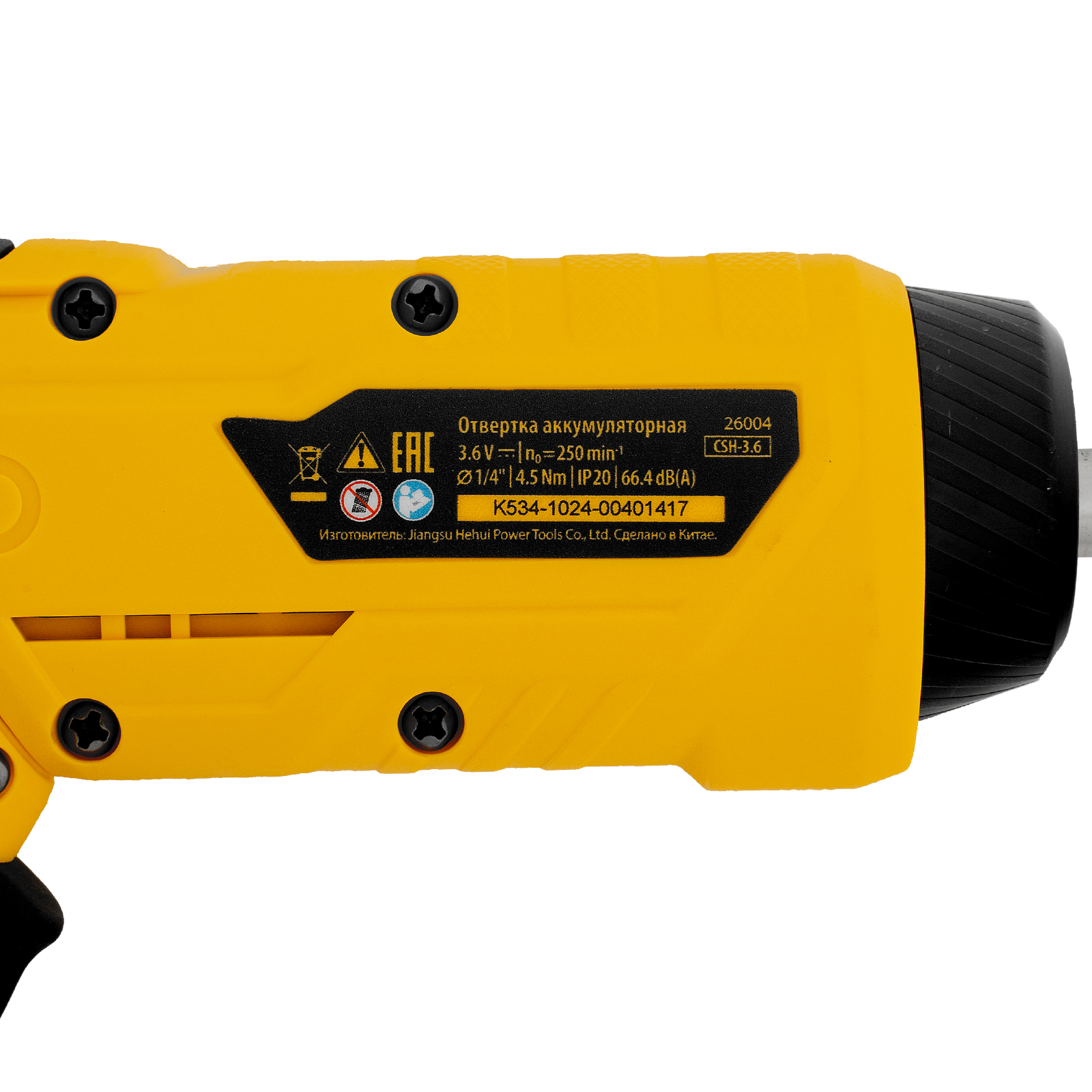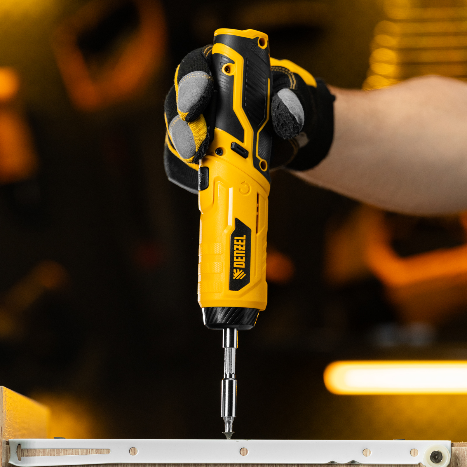 - Удобное хранение и транспортировка — аккумуляторная отвертка с аксессуарами упакована в пластиковый кейс.
